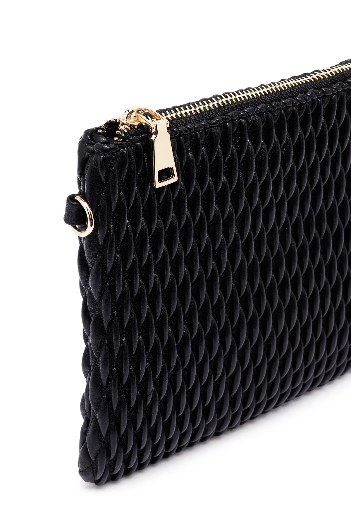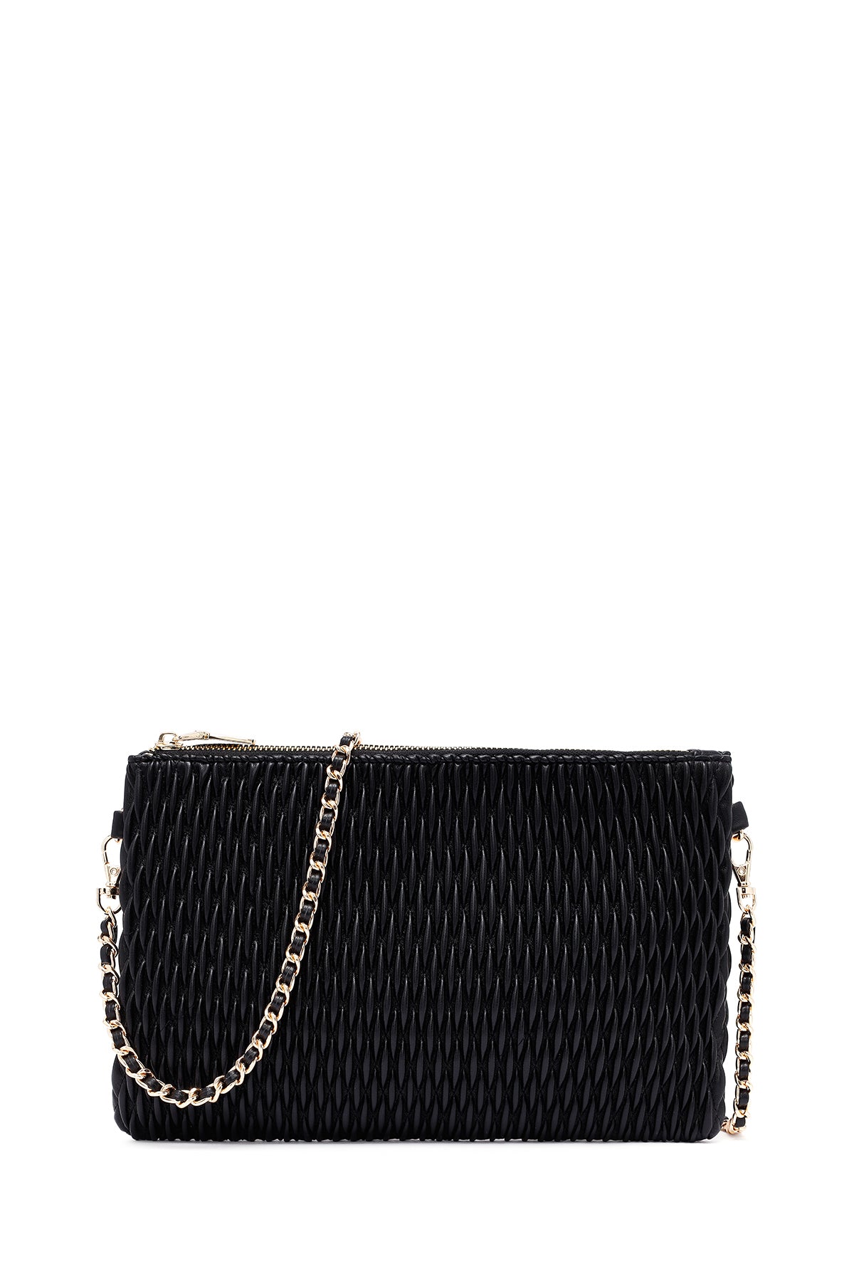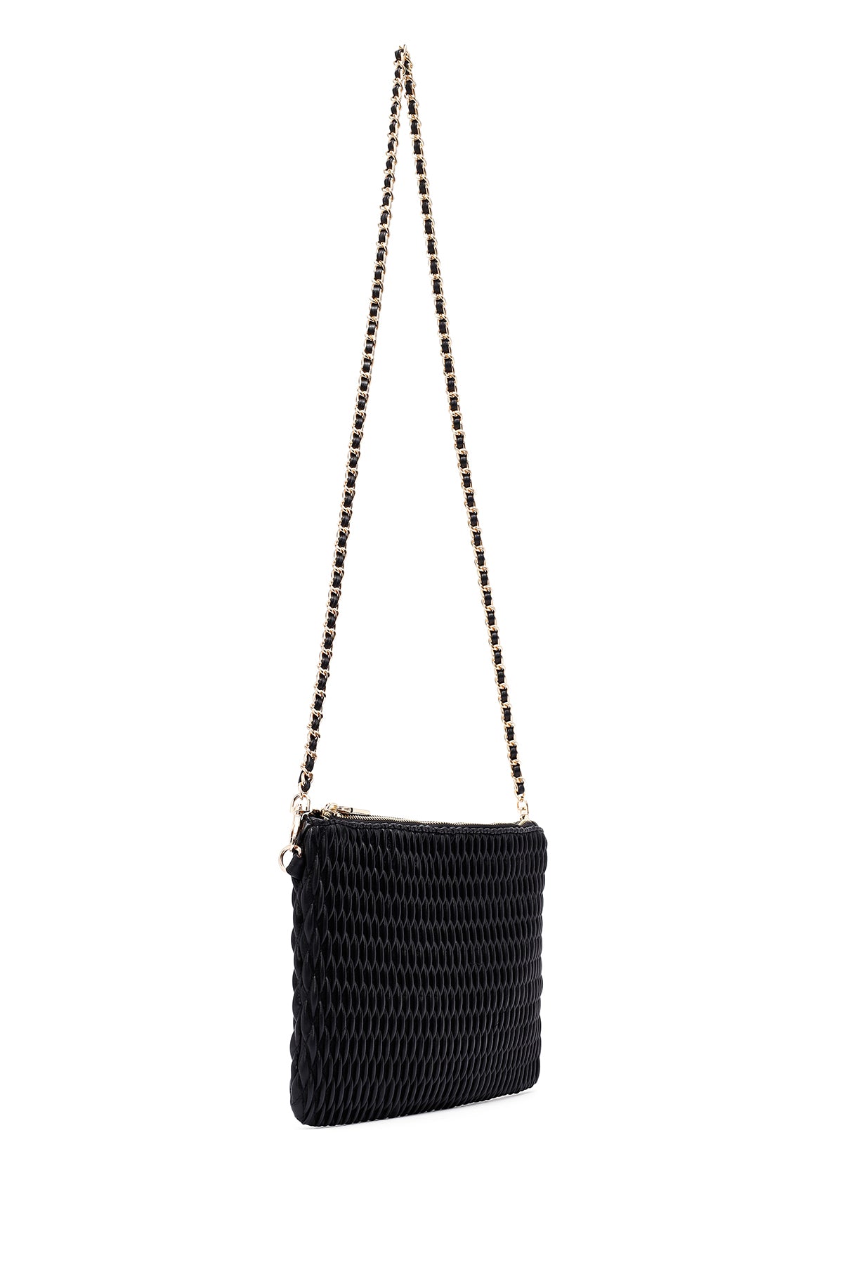 Woman Black Long Chain Strap Printed Clutch Bag