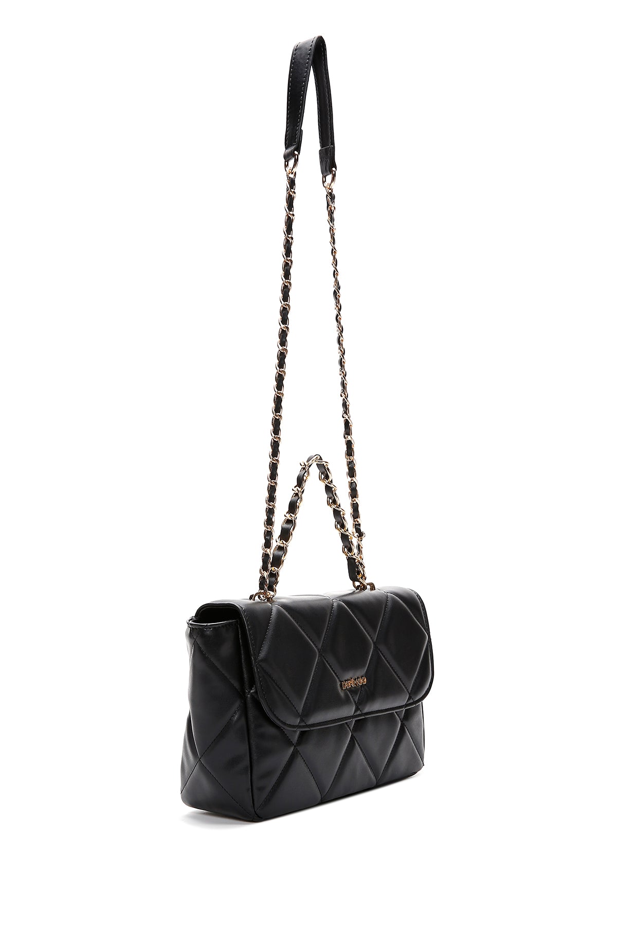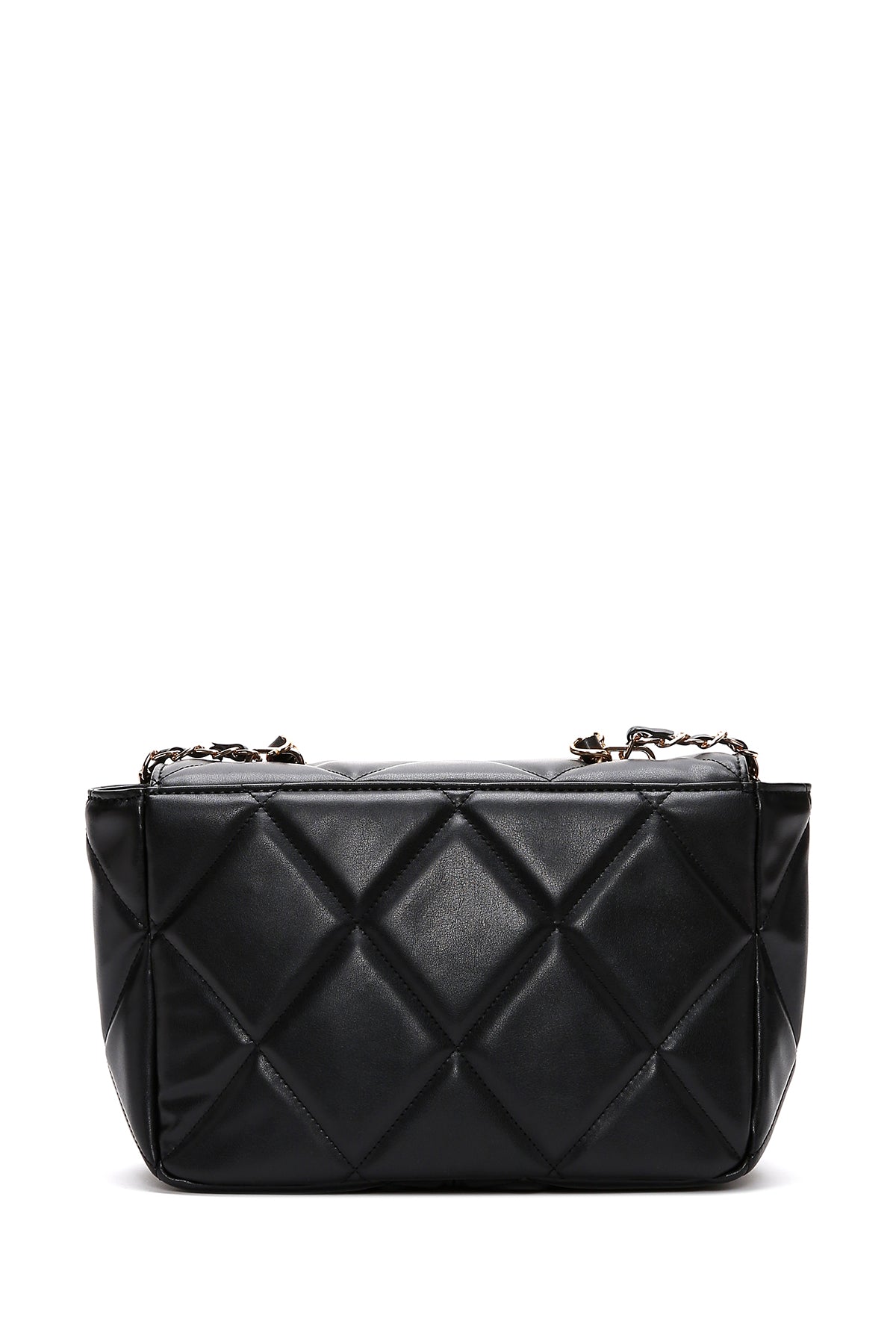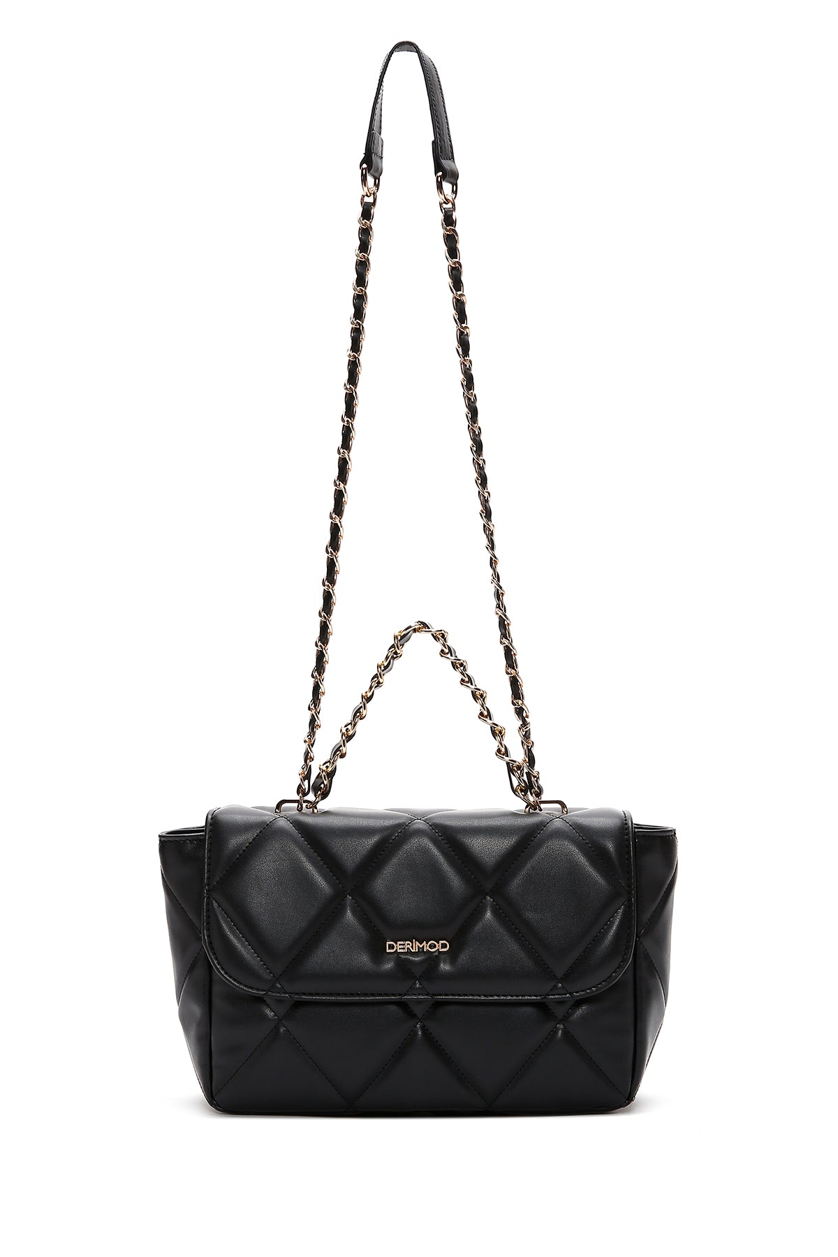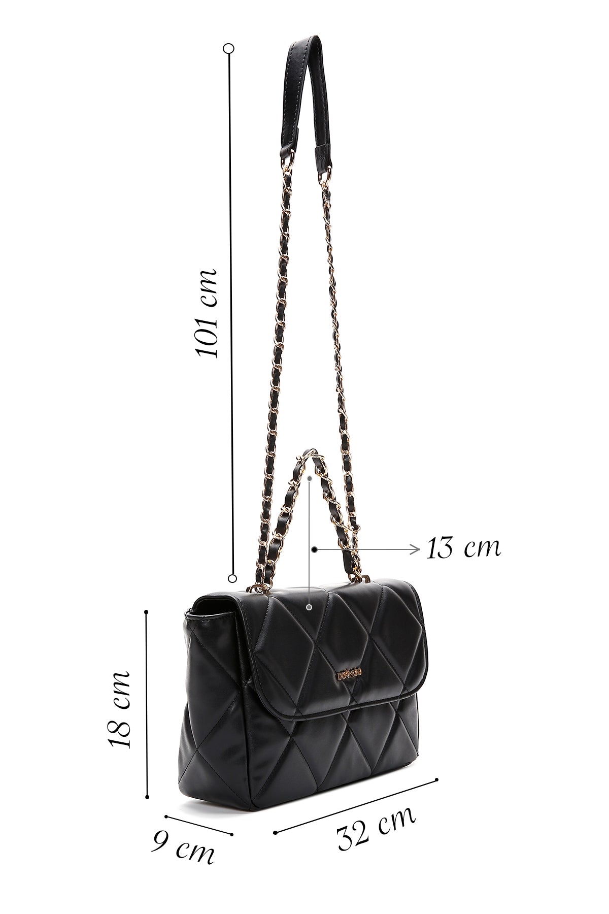 Women's Black Long Chain Strap Quilted Shoulder Bag