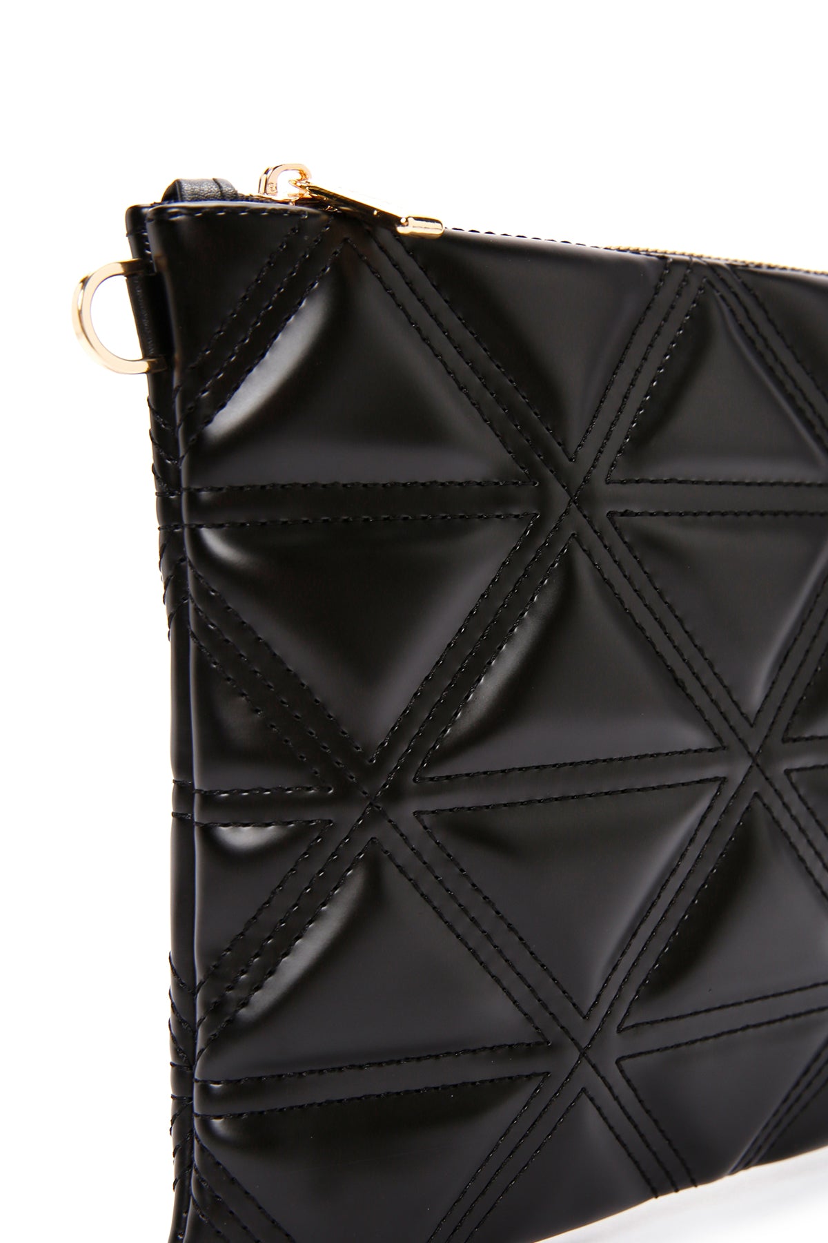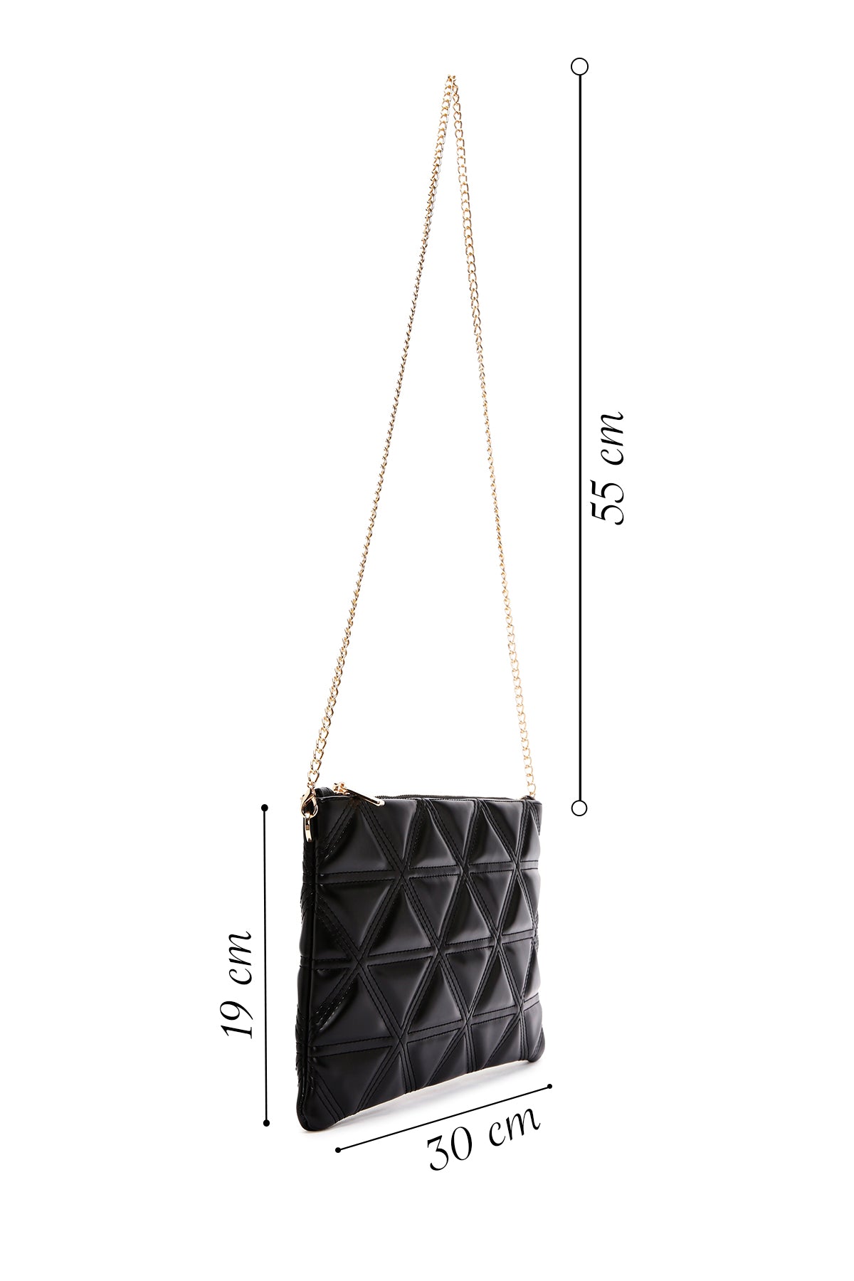 Women's Black Long Chain Strap Quilted Clutch Bag