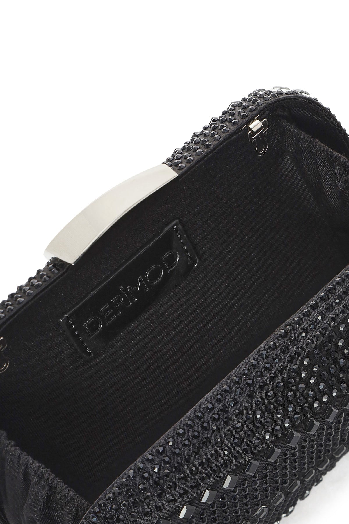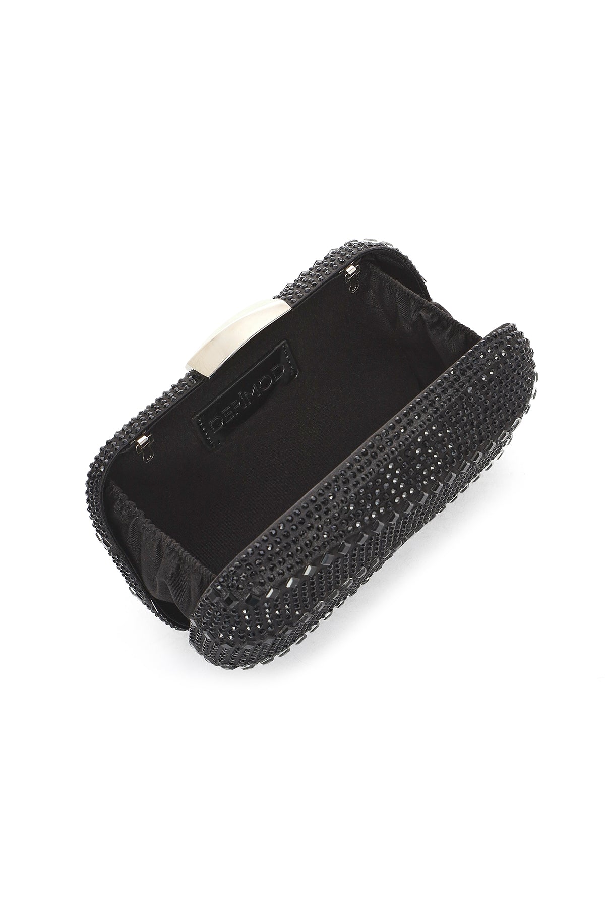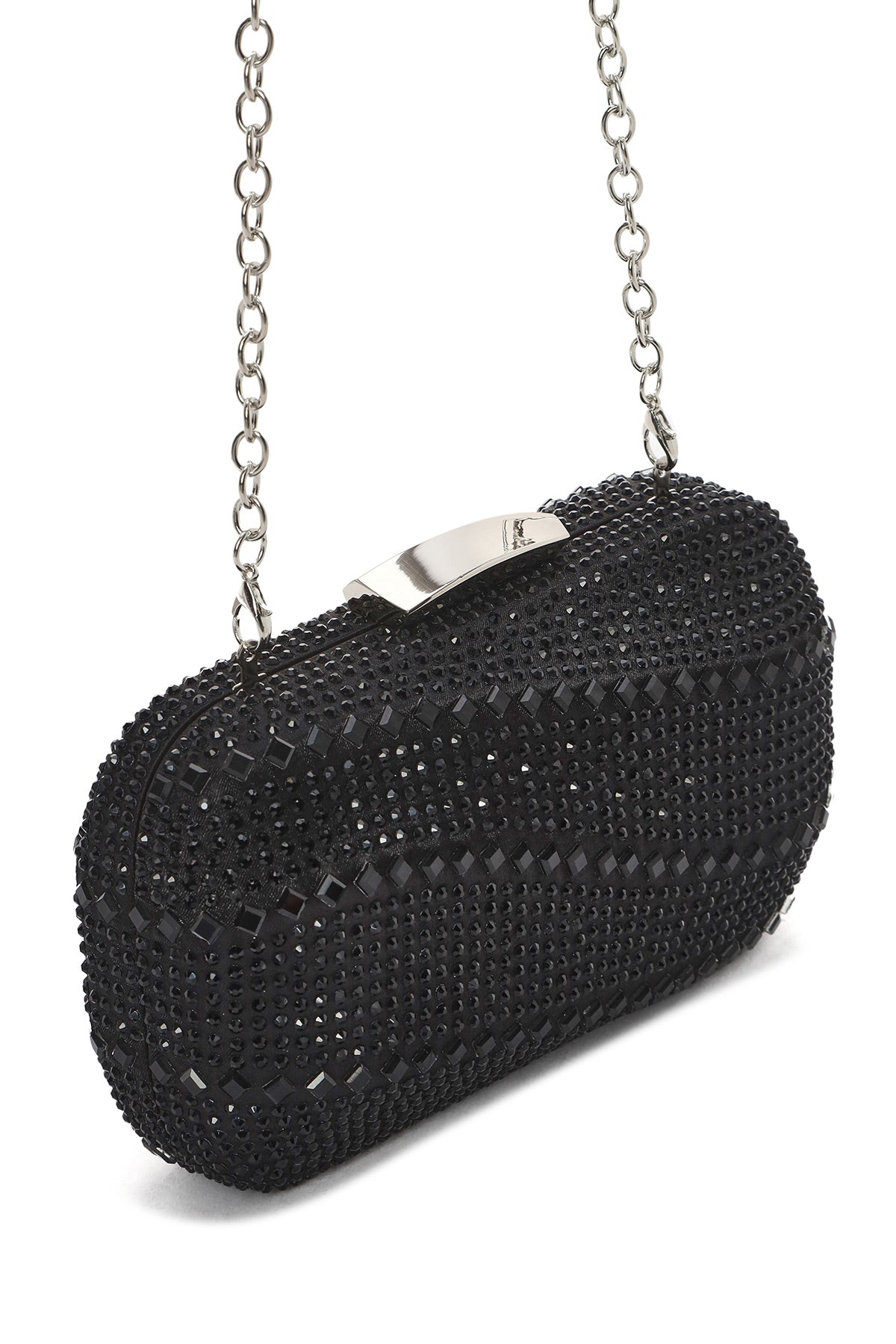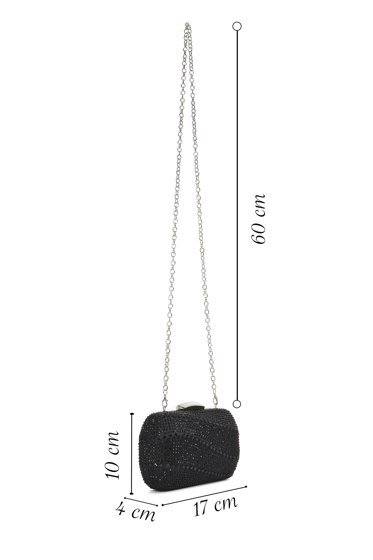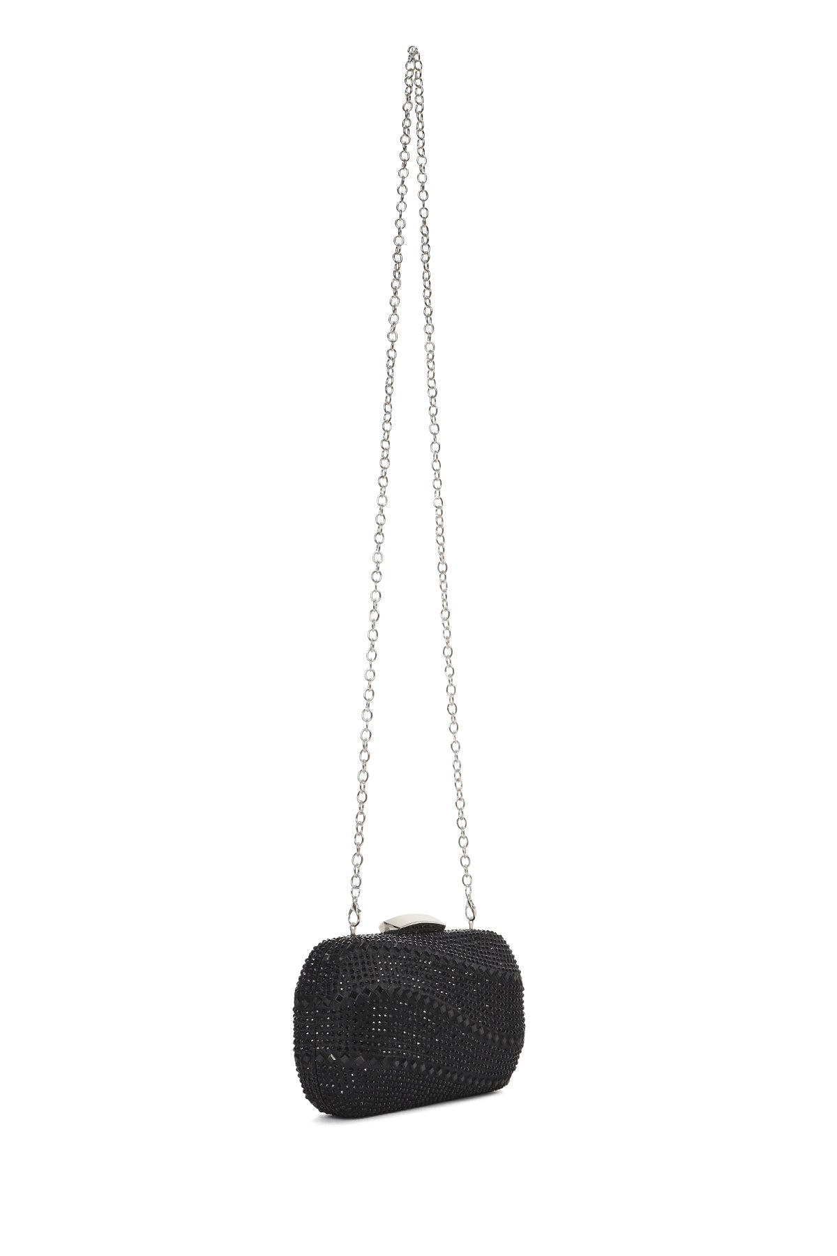 Women's Black Long Chain Strap Stone Mini Box Evening Bag