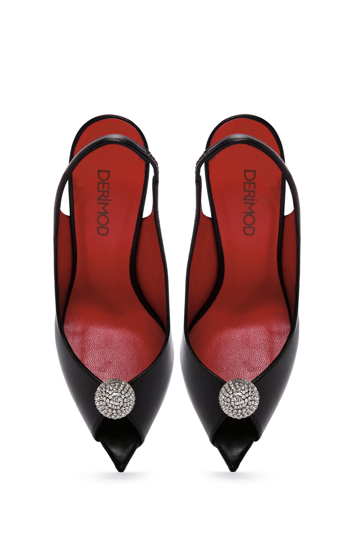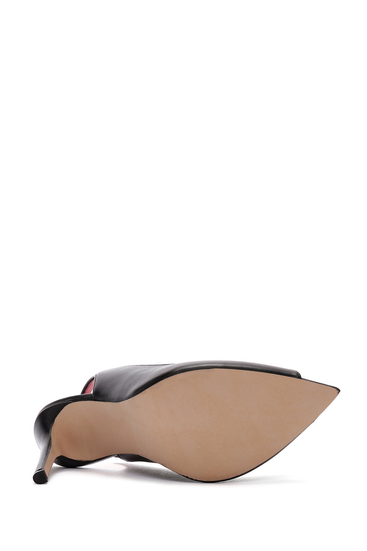 Women's Black High Thin Heels Leather Sandals with Accessory Detail