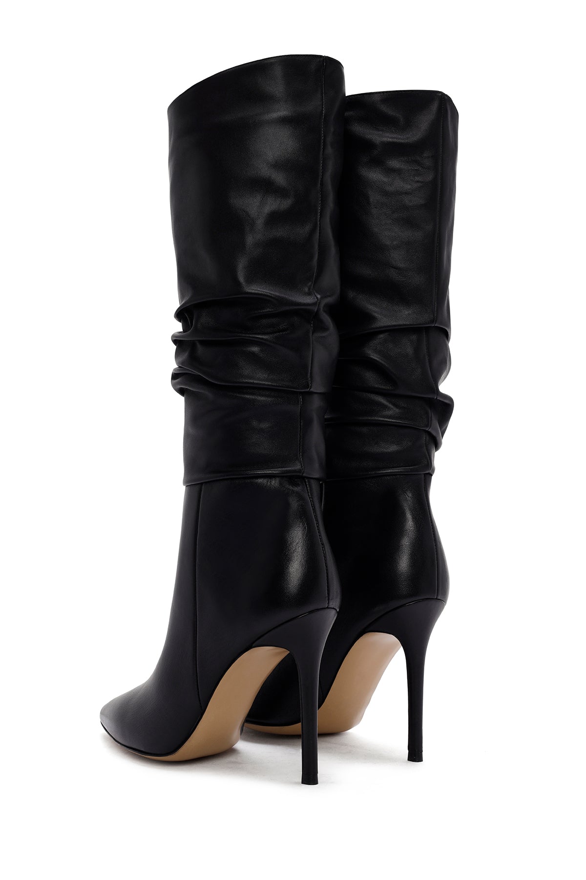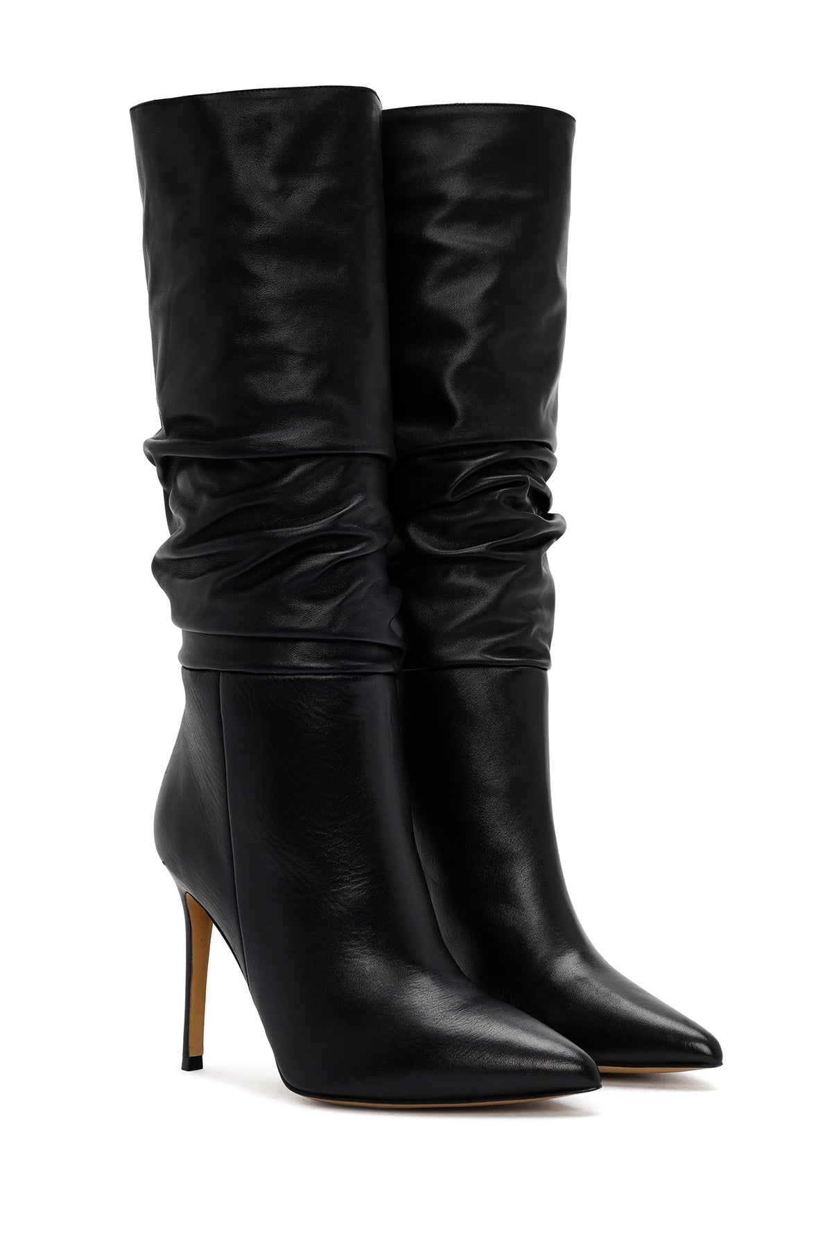 From Derimod's winter collection, the black boot model designed using screwed leather offers an elegant look with its 11 cm high slim heel. The model, which extends below the knee and features a smooth leather texture, presents a striking appearance and provides a stylish use with its textile inner lining. With its classic lines, the boot offers a wide range of use from special invitations to business life, from dinners to special occasions, and pairs perfectly with skirts and dresses. It can be preferred in autumn and winter seasons. Product code: 25WFD120518