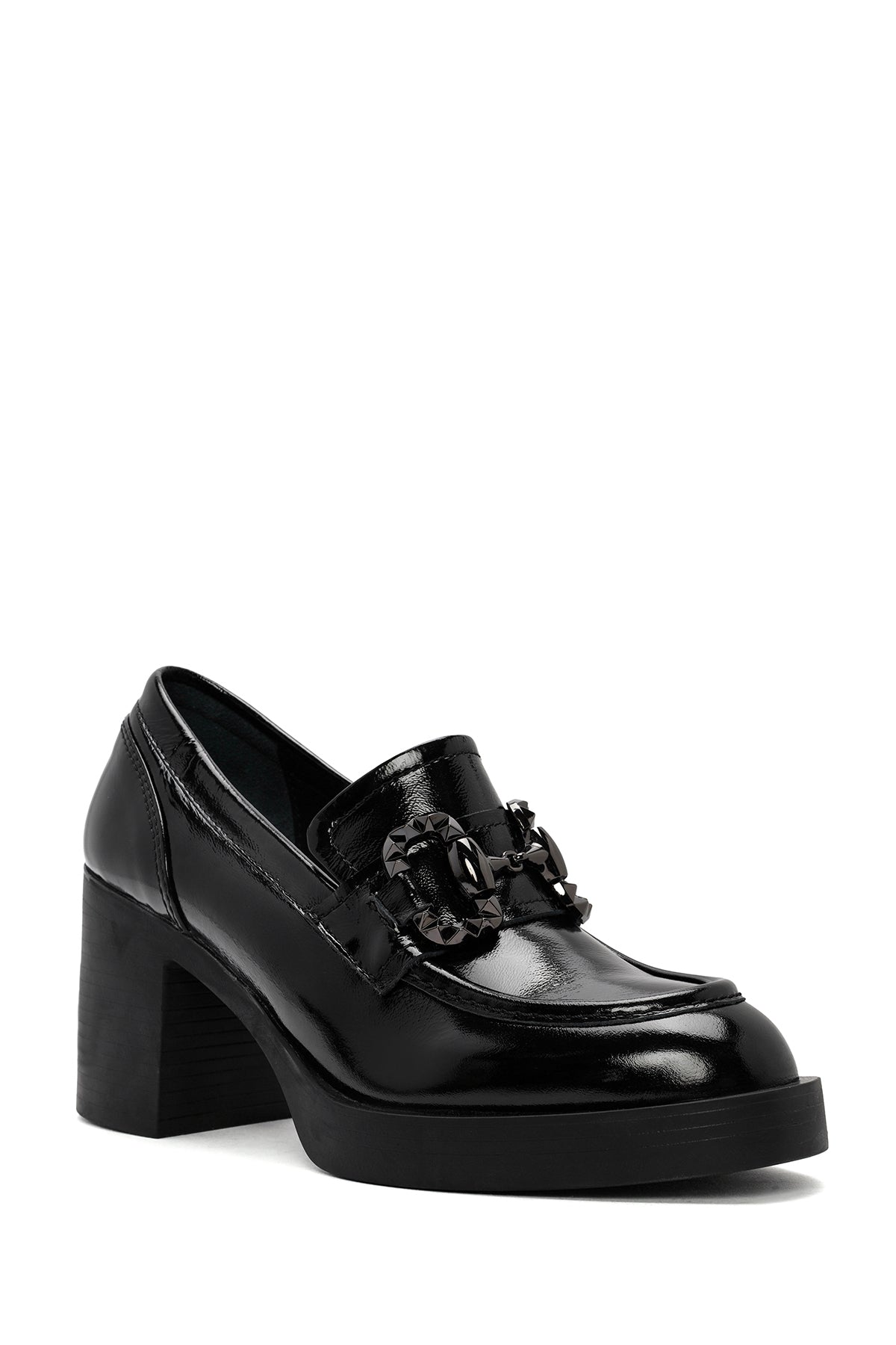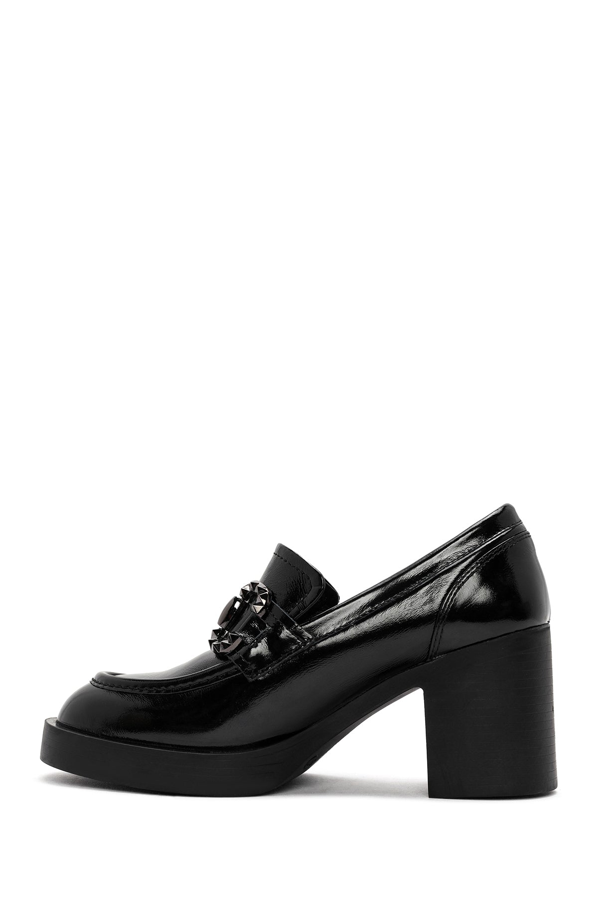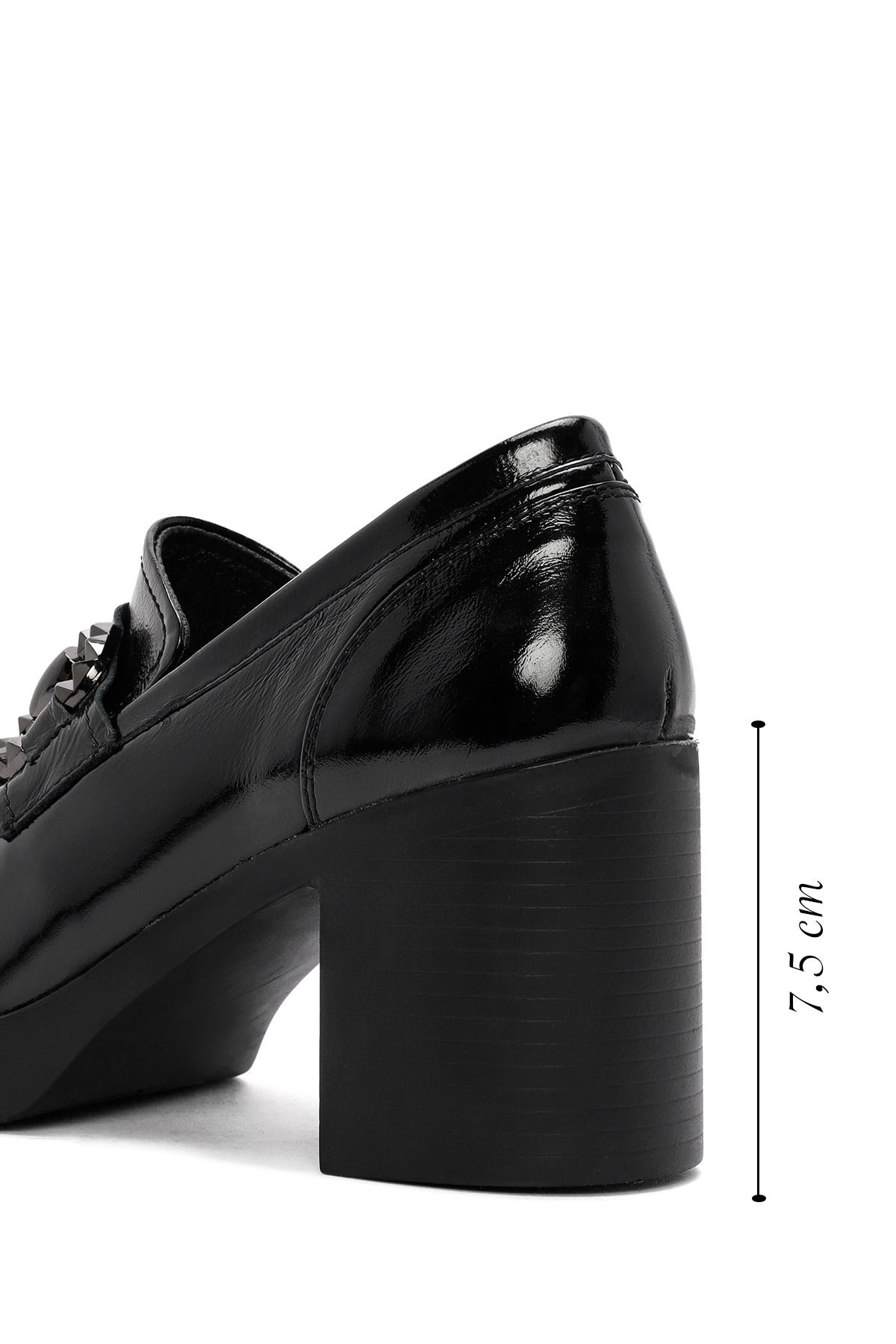 From Derimod's autumn collection, the black masculine loafer model made with wrinkled patent leather offers a modern look with its thick 7.5 cm high heel. Combining a classic masculine design with a high heel, the model provides quality use with its leather inner lining. The loafer, which stands out with its minimalist lines and shiny patent texture, offers a wide range of use from office outfits to elegant invitations, from daily wear to special moments. It can be preferred in autumn and winter seasons. Product code: 25AFD510116