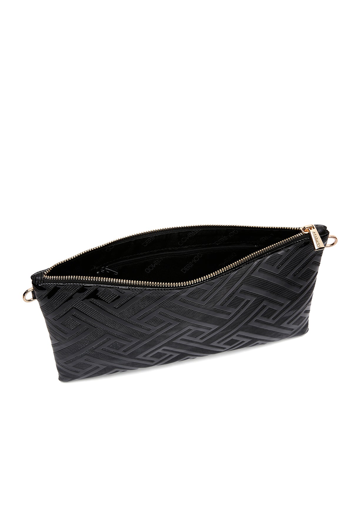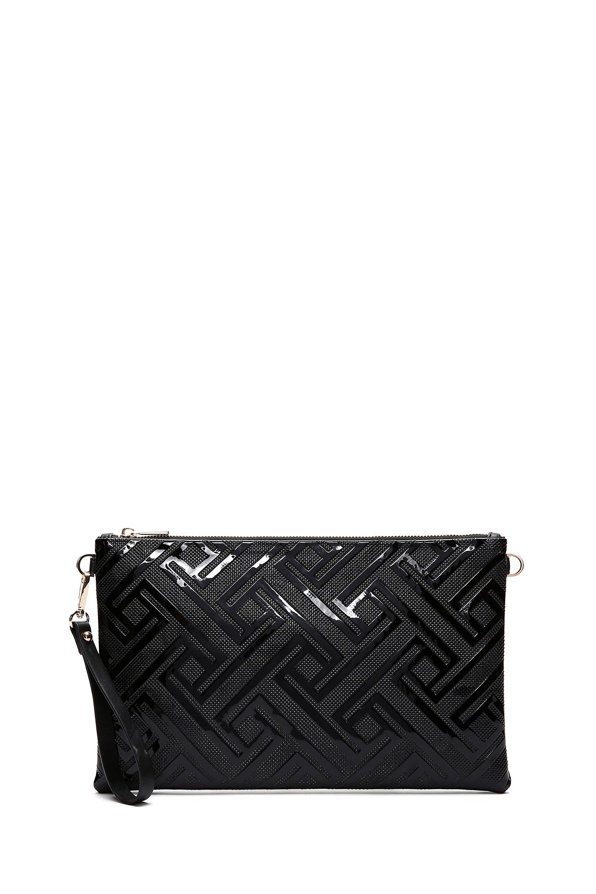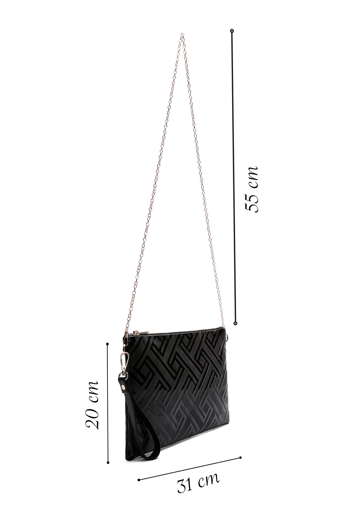 Women's Black Chain Strap Patterned Patent Leather Clutch Bag