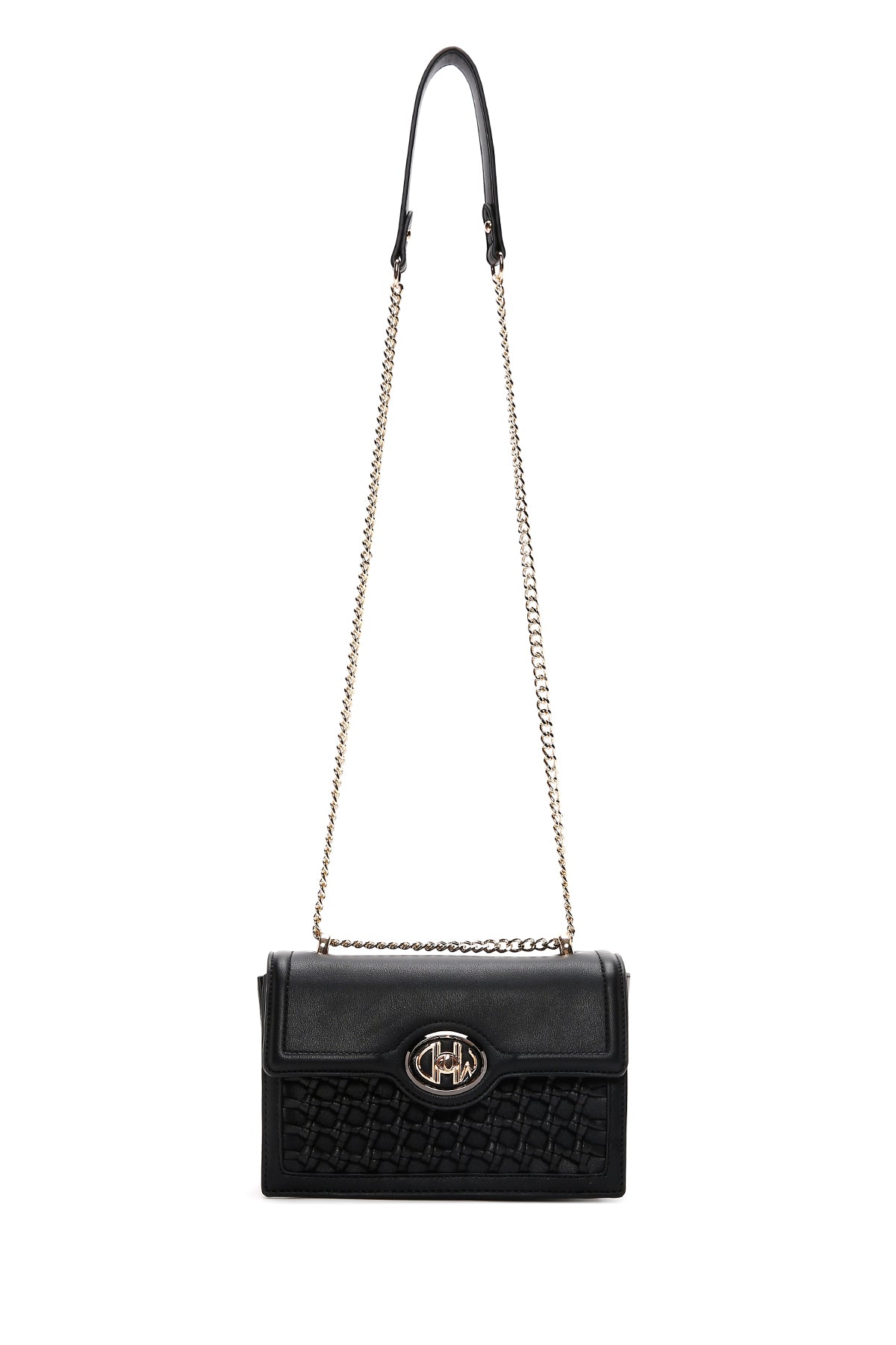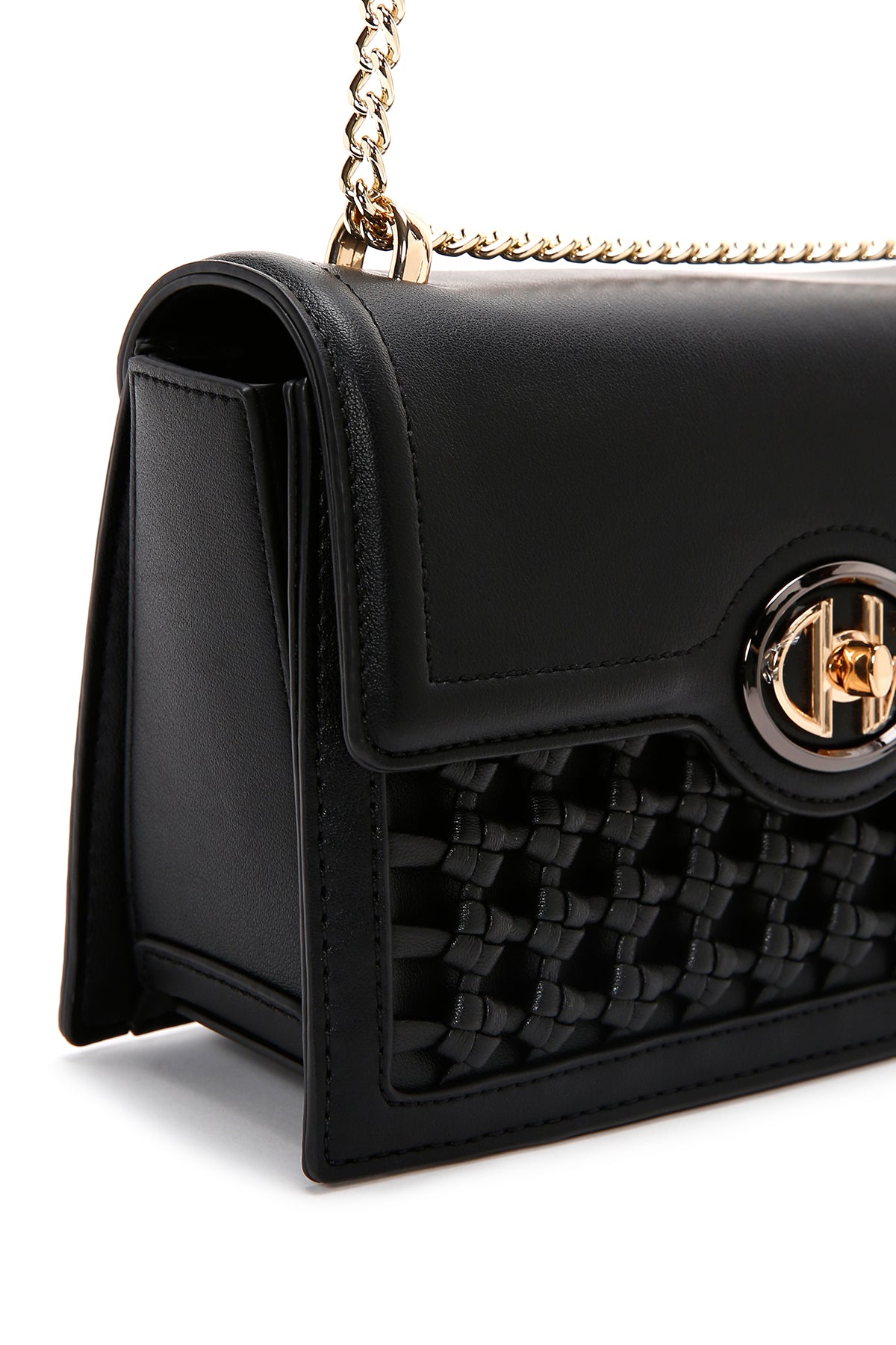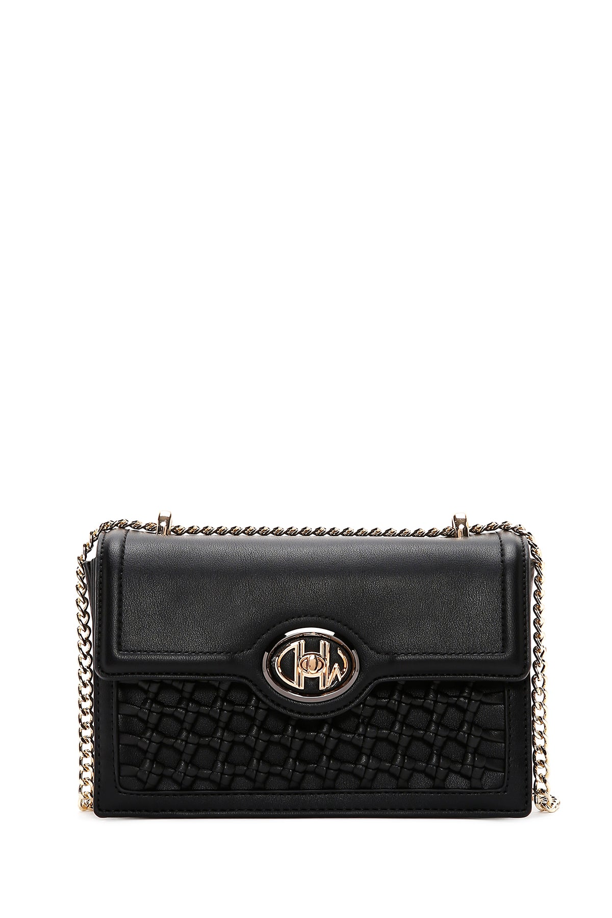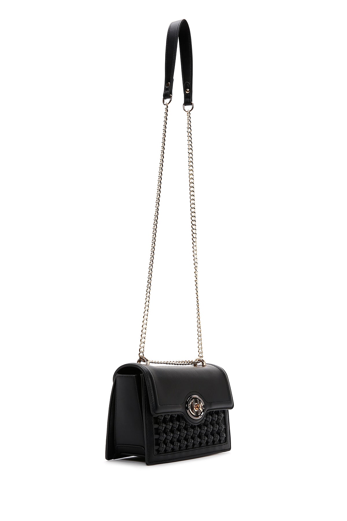 Woman Black Chain Strap Woven Crossbody Bag