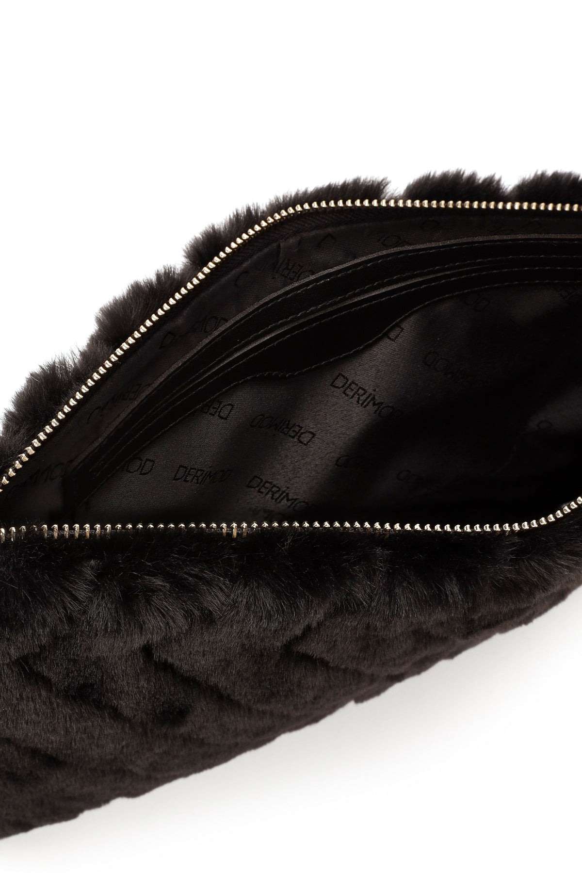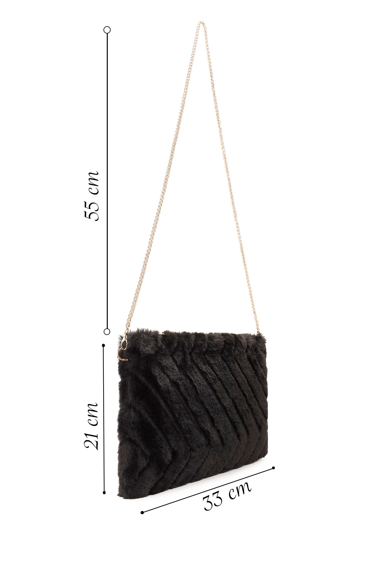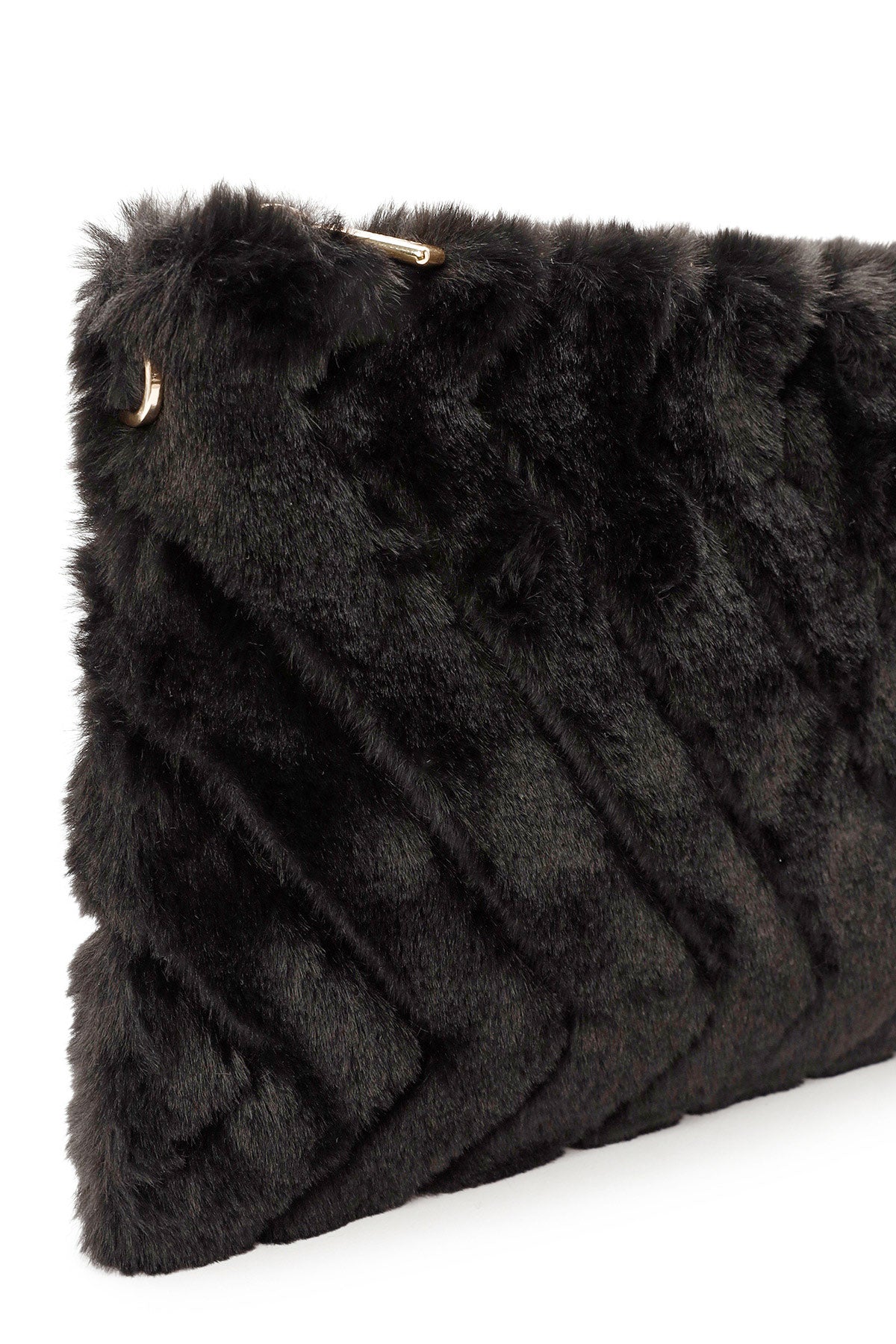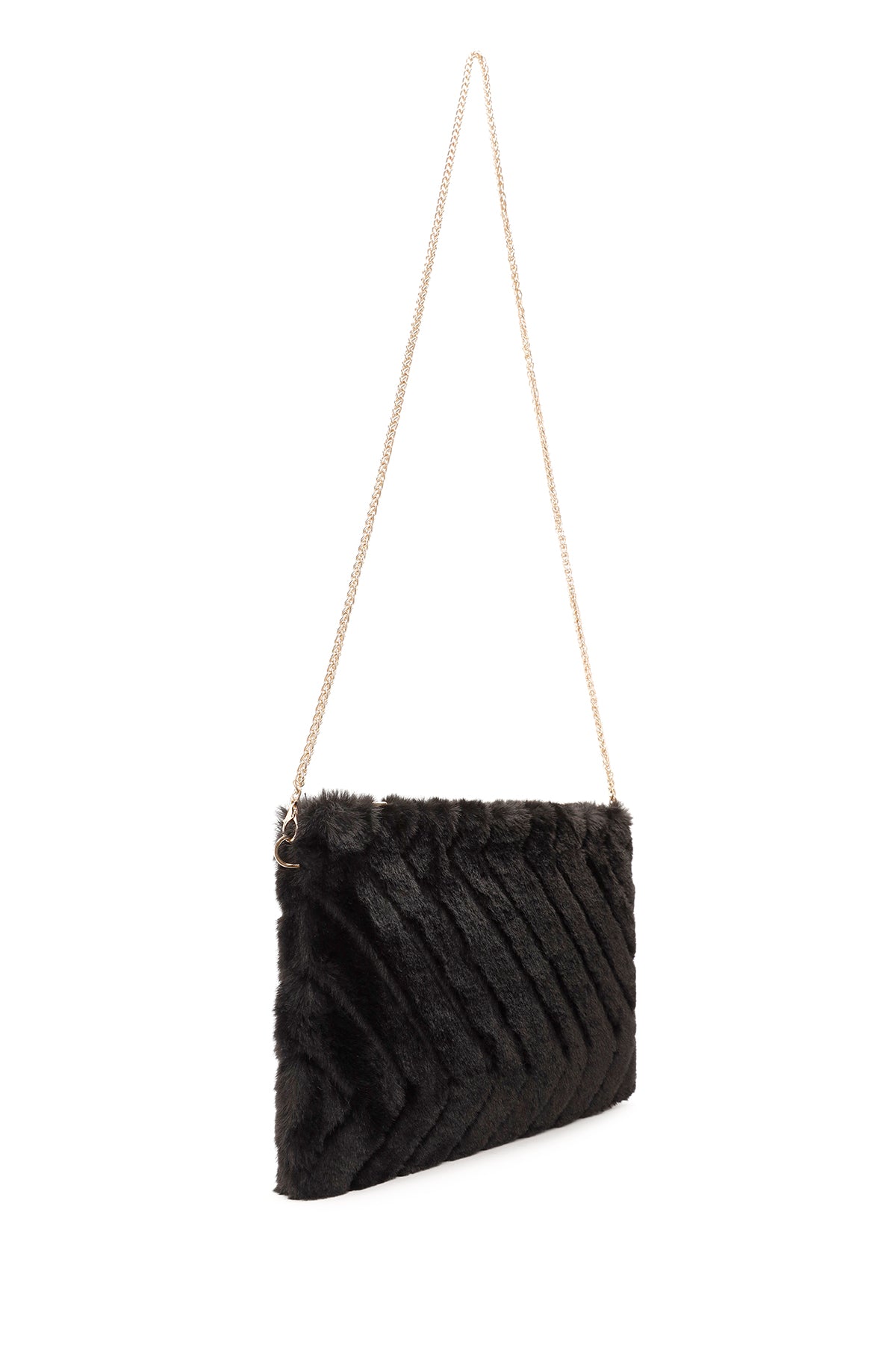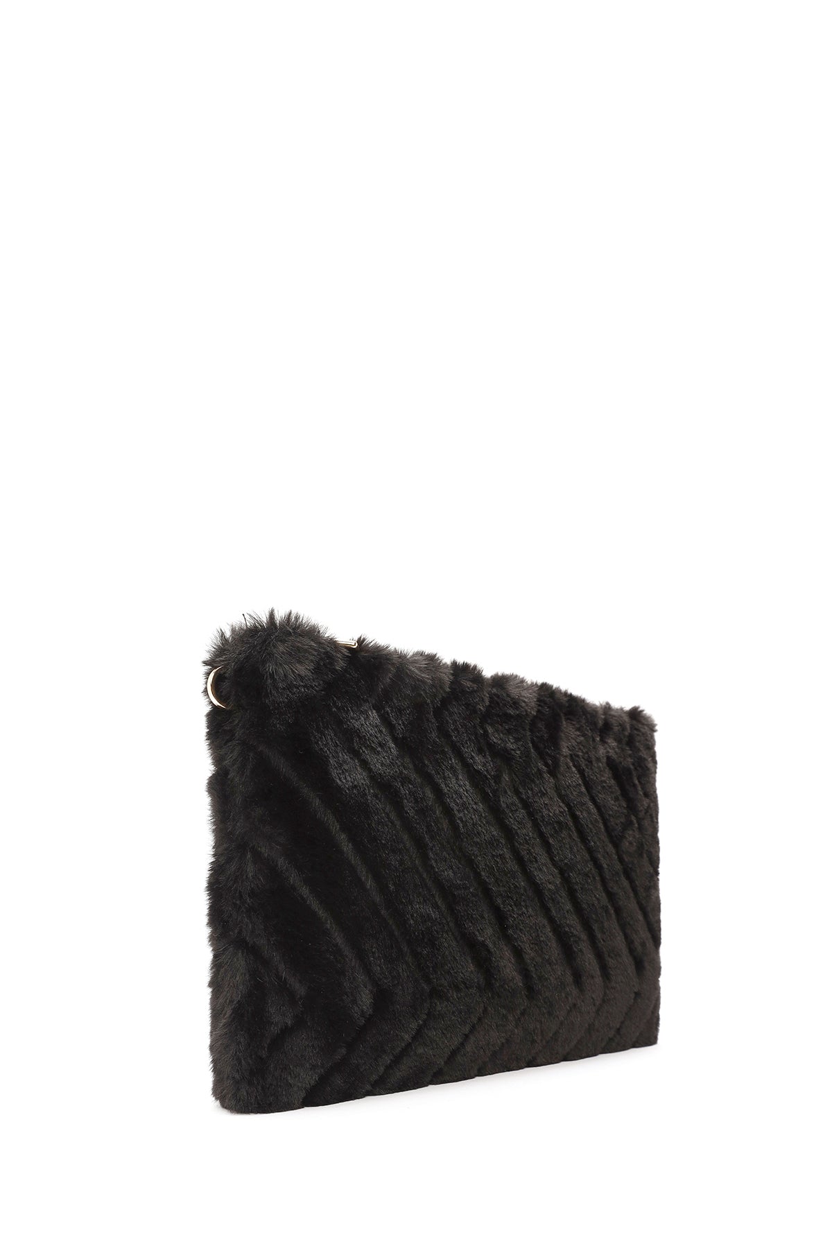 Women's Black Chain Strap Plush Clutch Bag