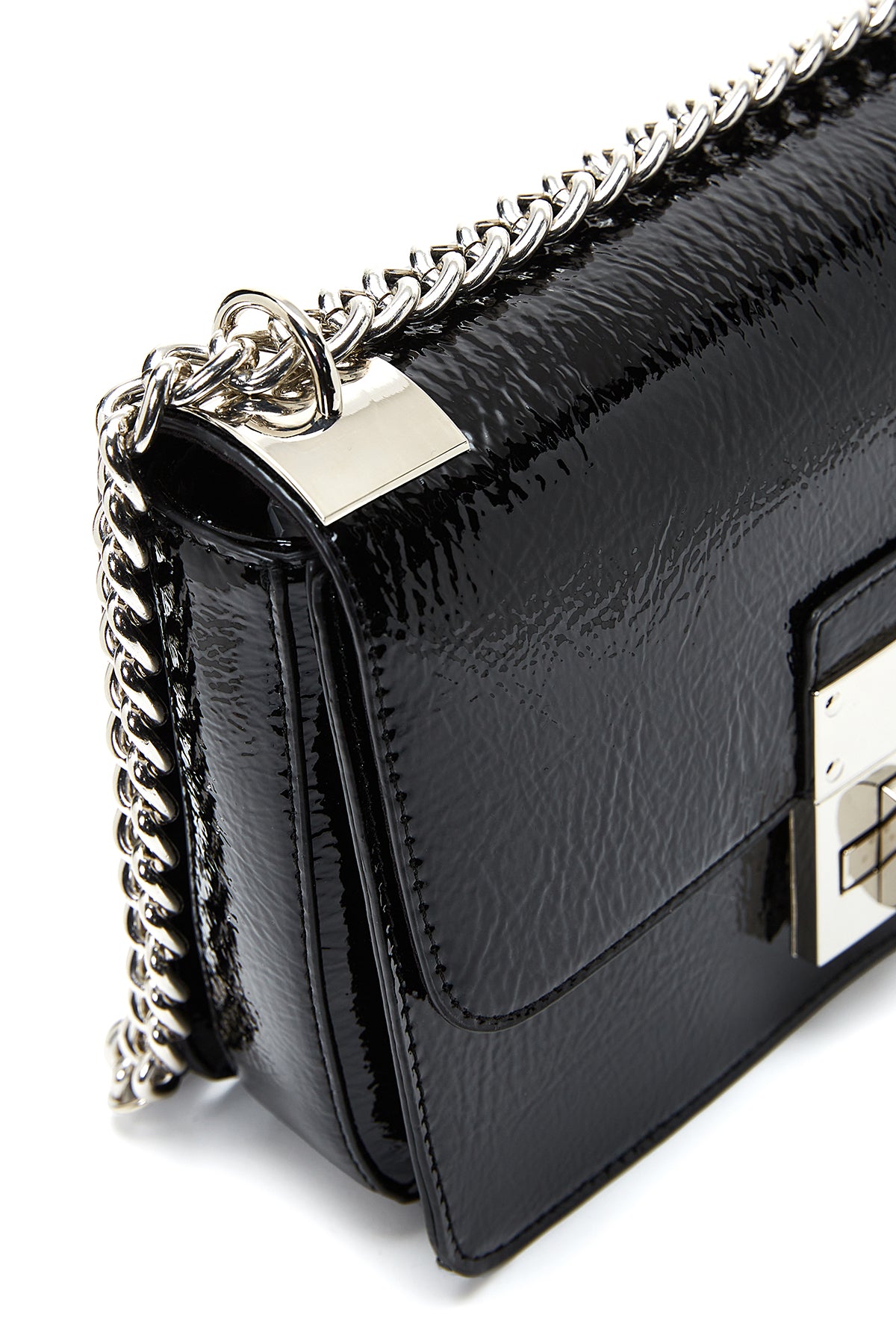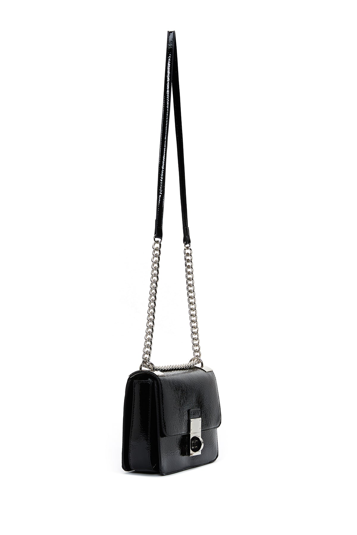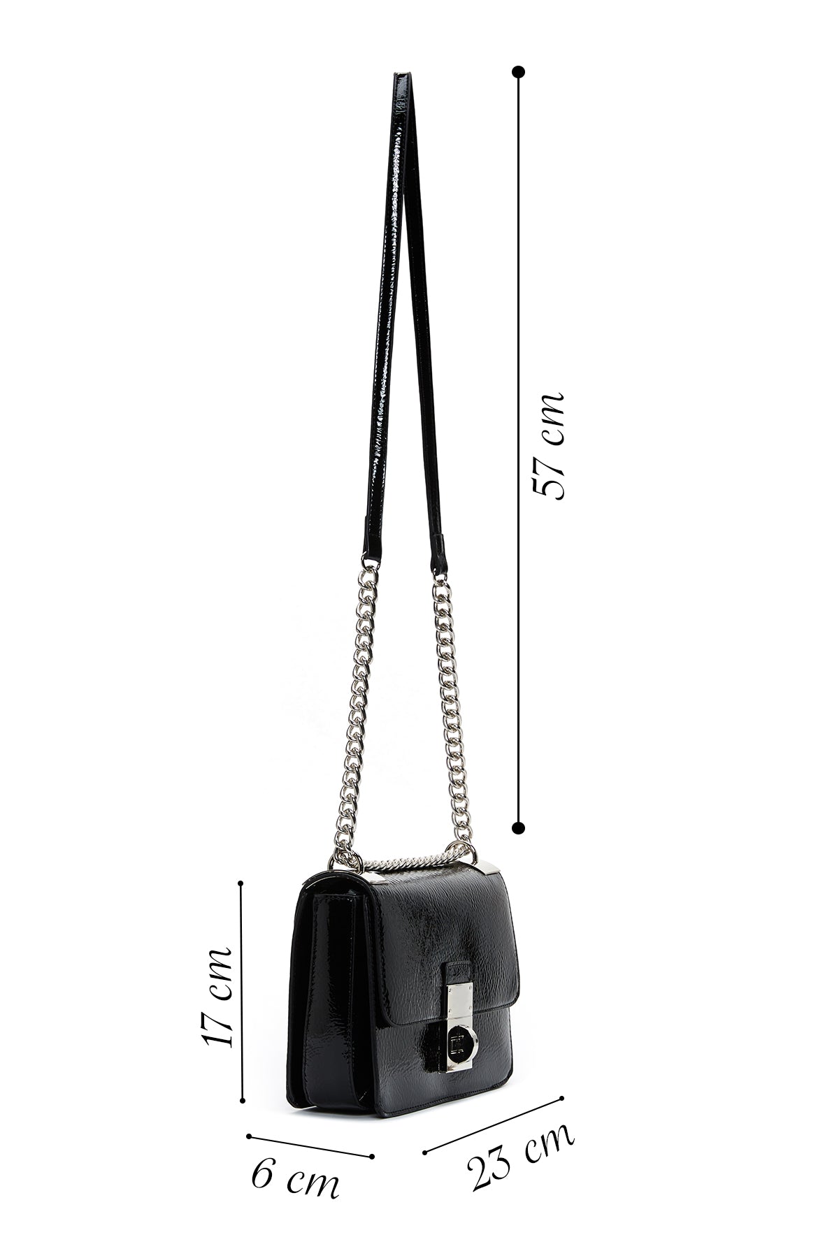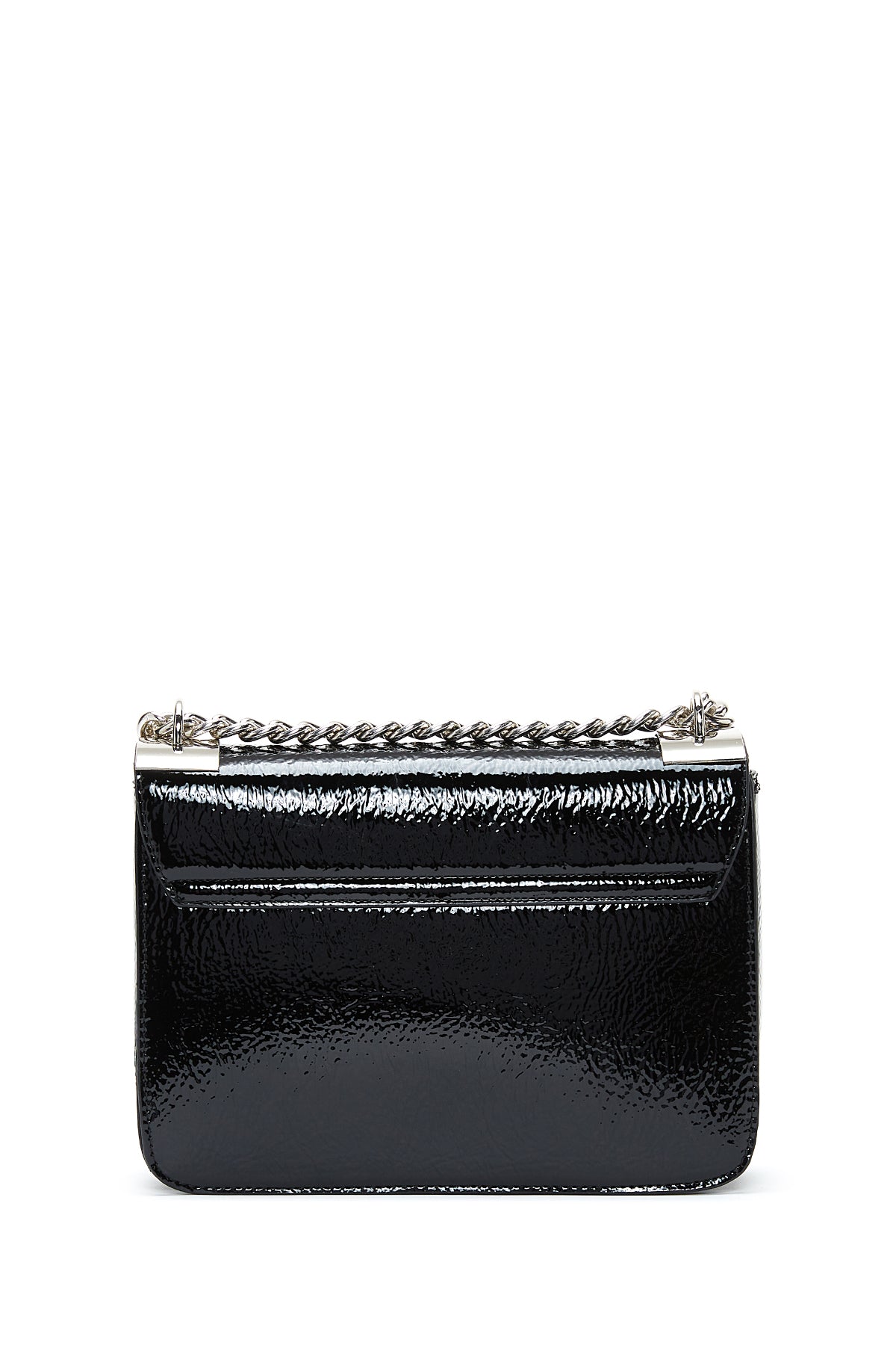 Women's Black Chain Strap Patent Leather Evening Crossbody Bag