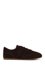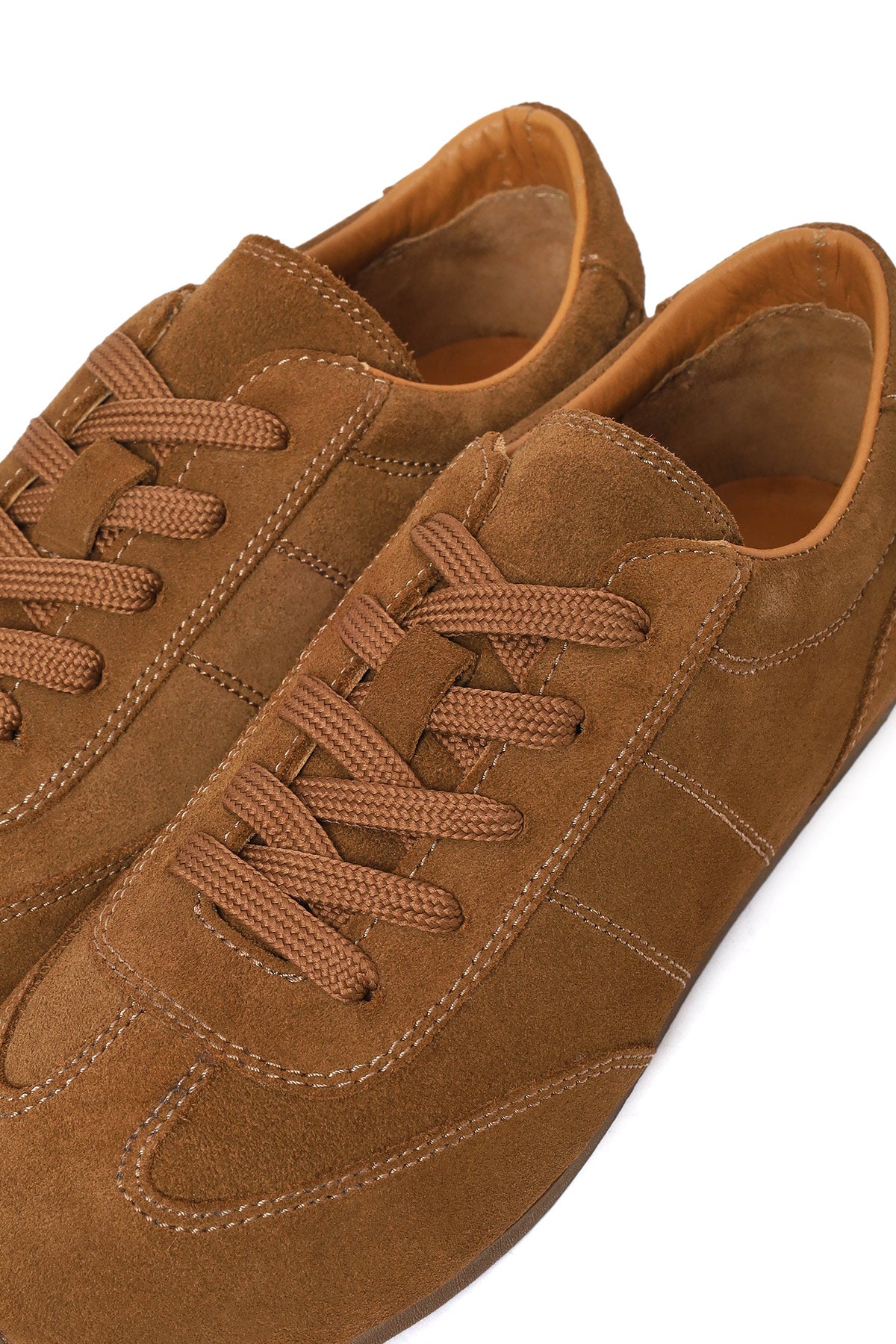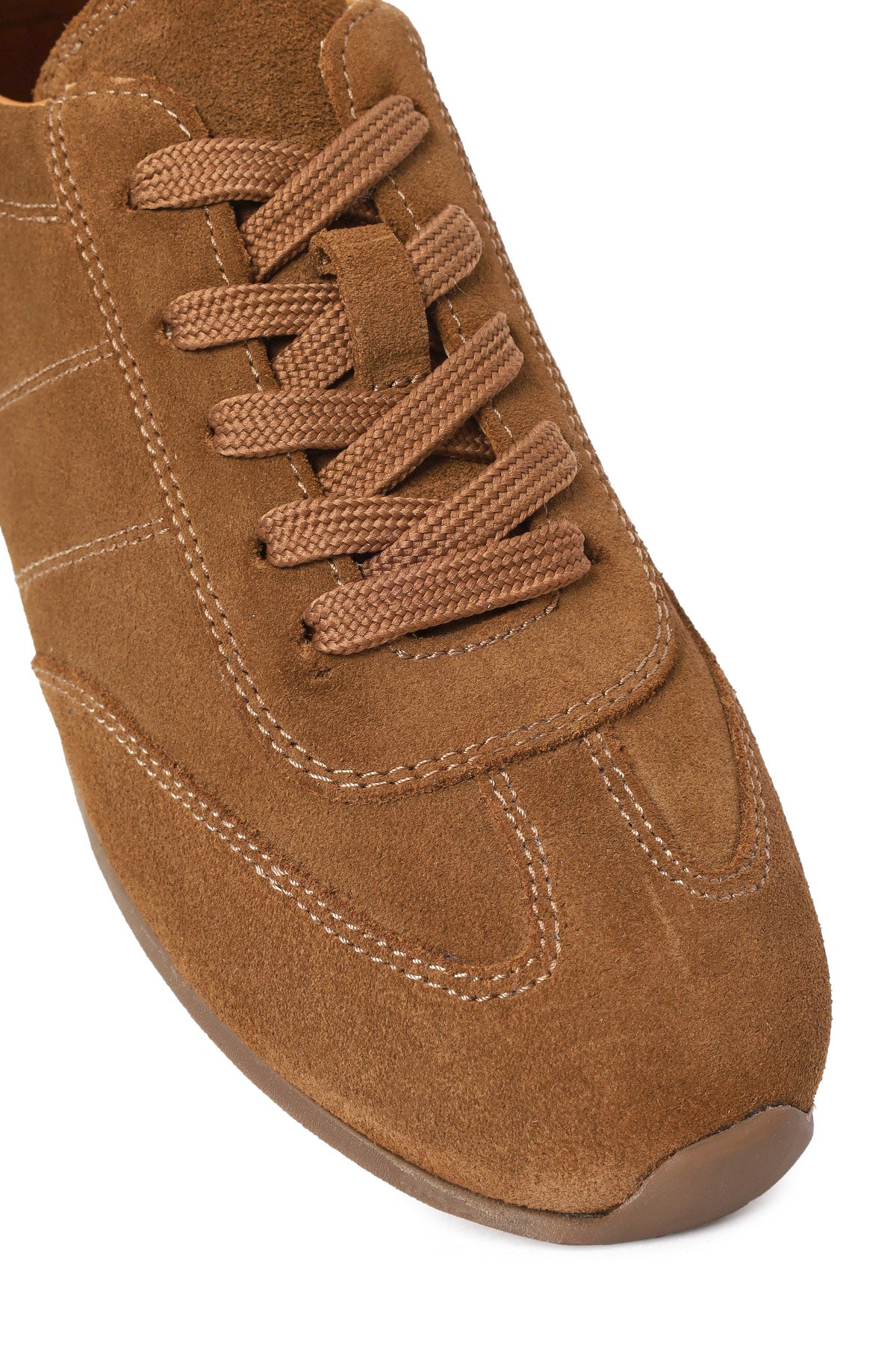 Woman Tan Lace-Up Suede Leather Sneakers