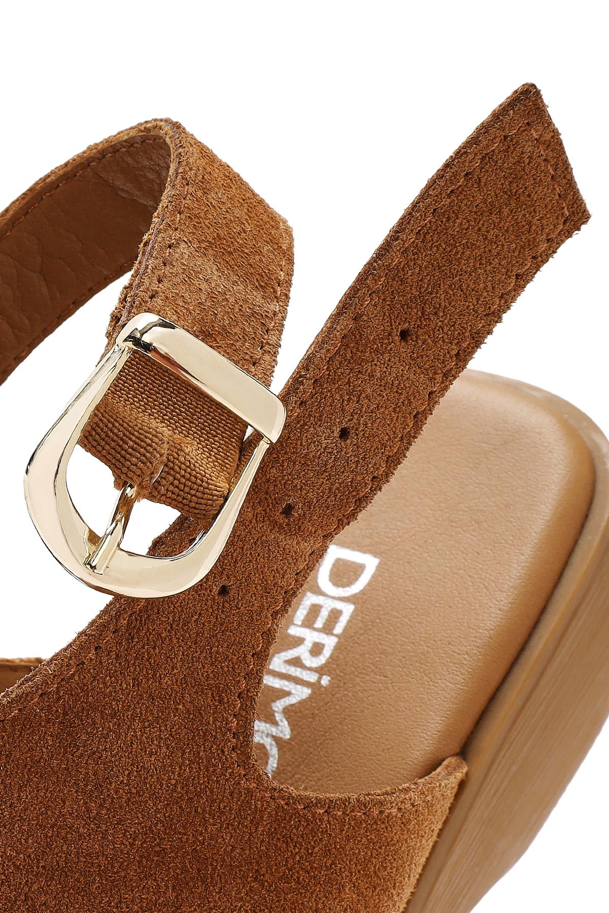 Derimod's elegance and style together Woman Tan Suede Wedge Heel with Ankle Buckle Leather Show off your style with sandals. Product code: 25SFD153210 29