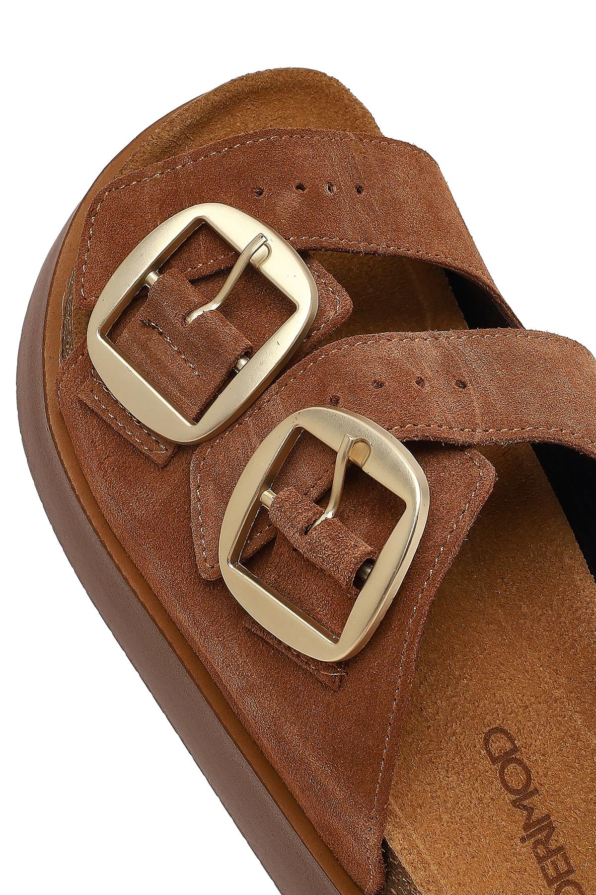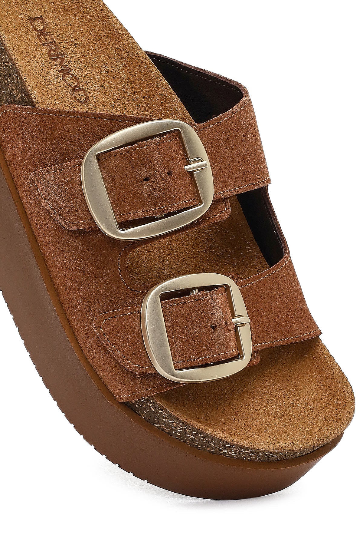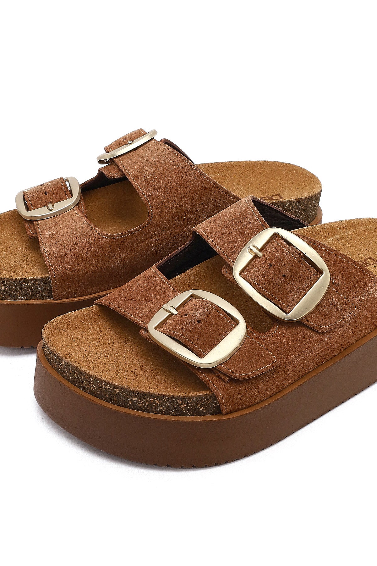 Express your style with the Women's Tan Double Buckle Thick Sole Suede Leather Slippers that combine Derimod's Elegance and Sophistication. Product code: 25SFD132810 29