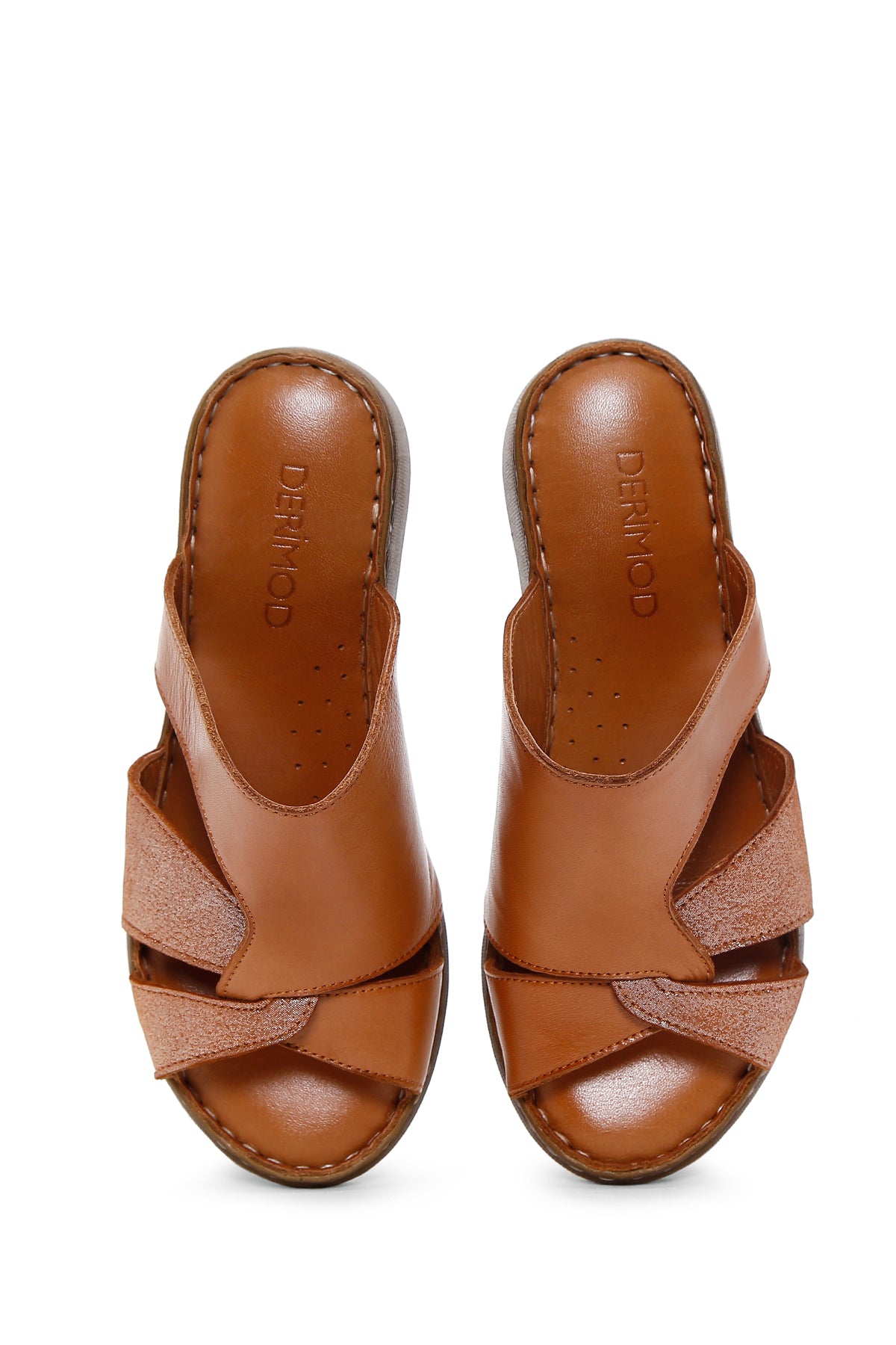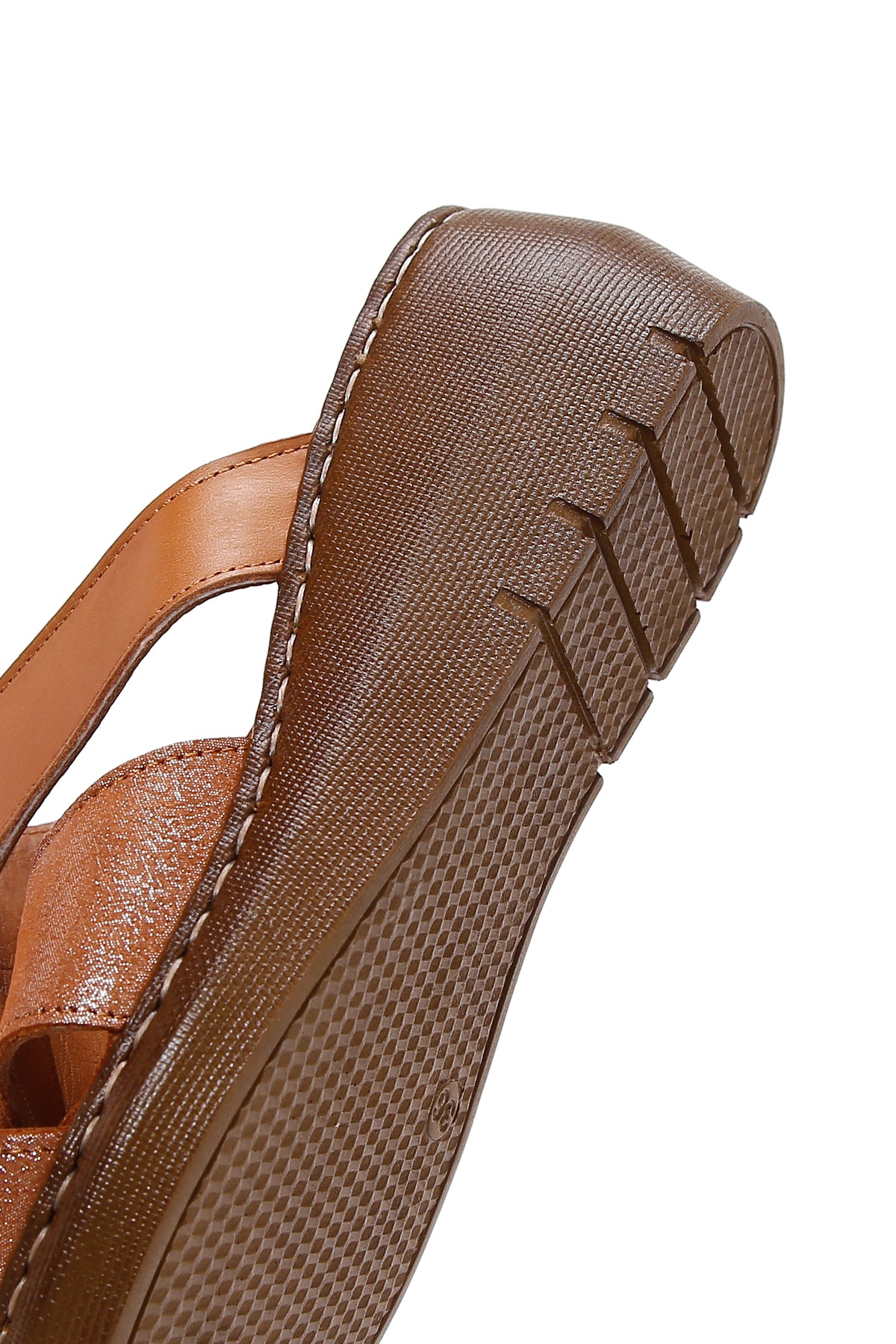 Kadın Taba Dolgu Topuklu Deri Comfort Terlik
