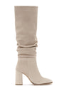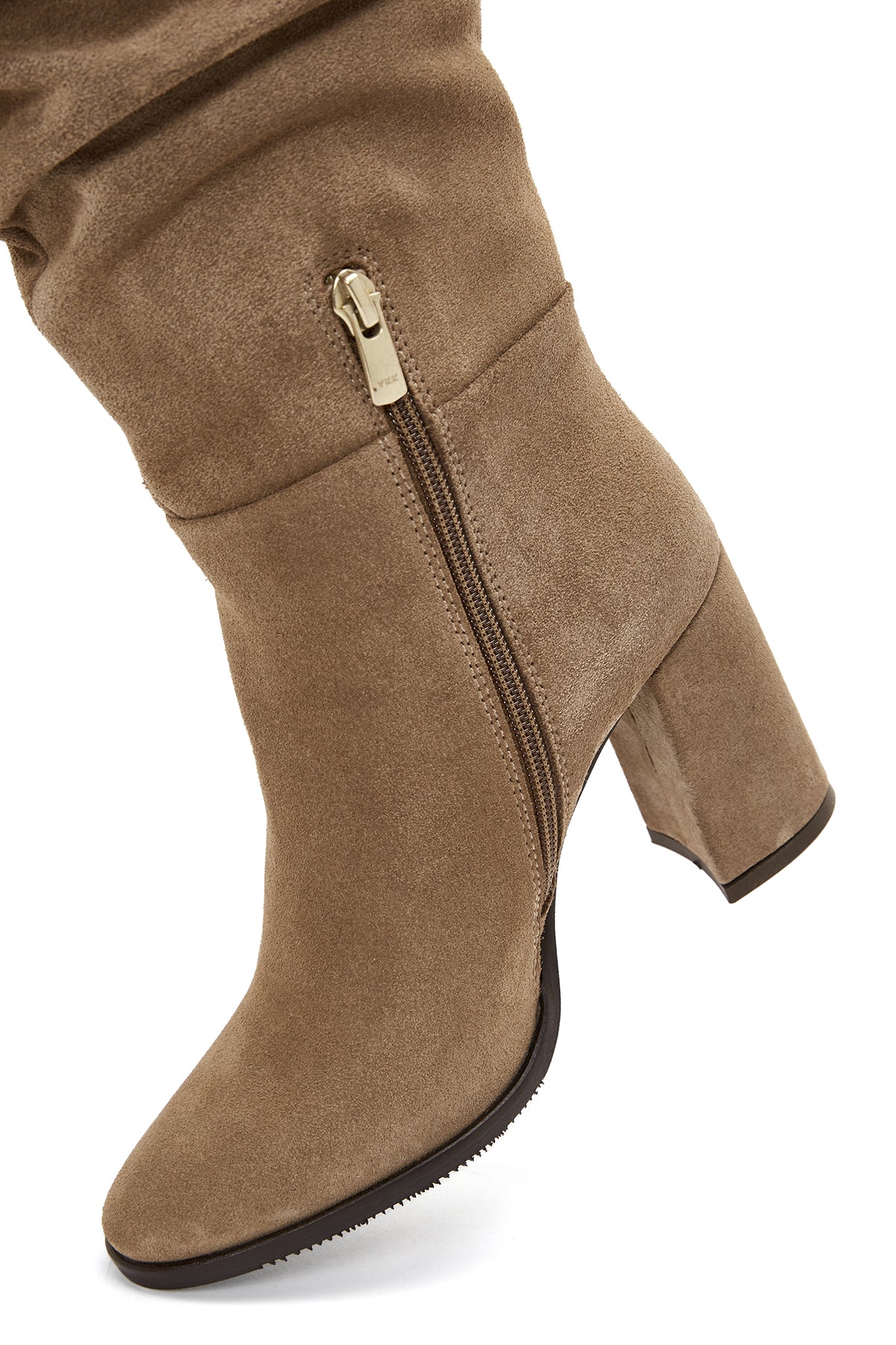 From Derimod's winter collection, the tan-colored boot model designed using suede leather offers a stylish look with its 9 cm high thick heel. The model, which hugs the leg with its 45 cm length and 36 cm calf width, keeps warm thanks to its leather inner lining. The boot, which provides easy wear with its side zipper structure, offers a wide range of use from dresses to skirts, from pants to tights. It can be preferred for daily use to special invitations in autumn and winter seasons. Product code: 25WFD281110