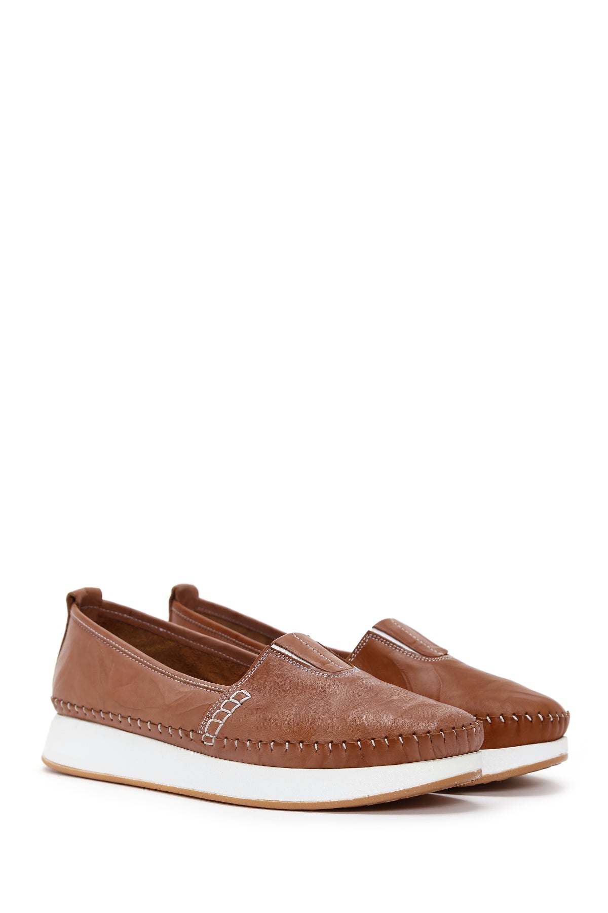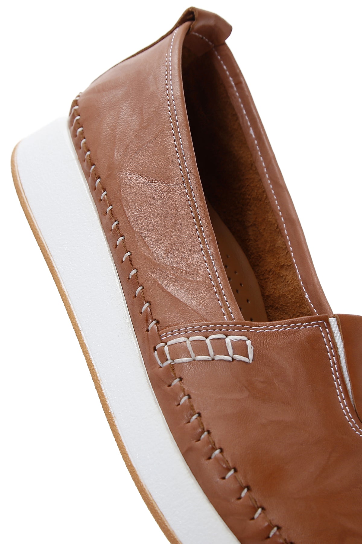 Women's Tan Thick Soled Leather Comfort Loafer