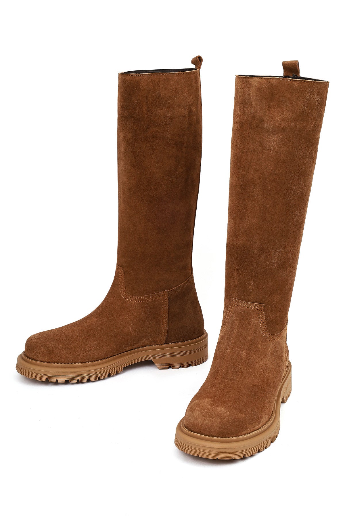 Kadın Taba Kalın Tabanlı Süet Deri Çizme