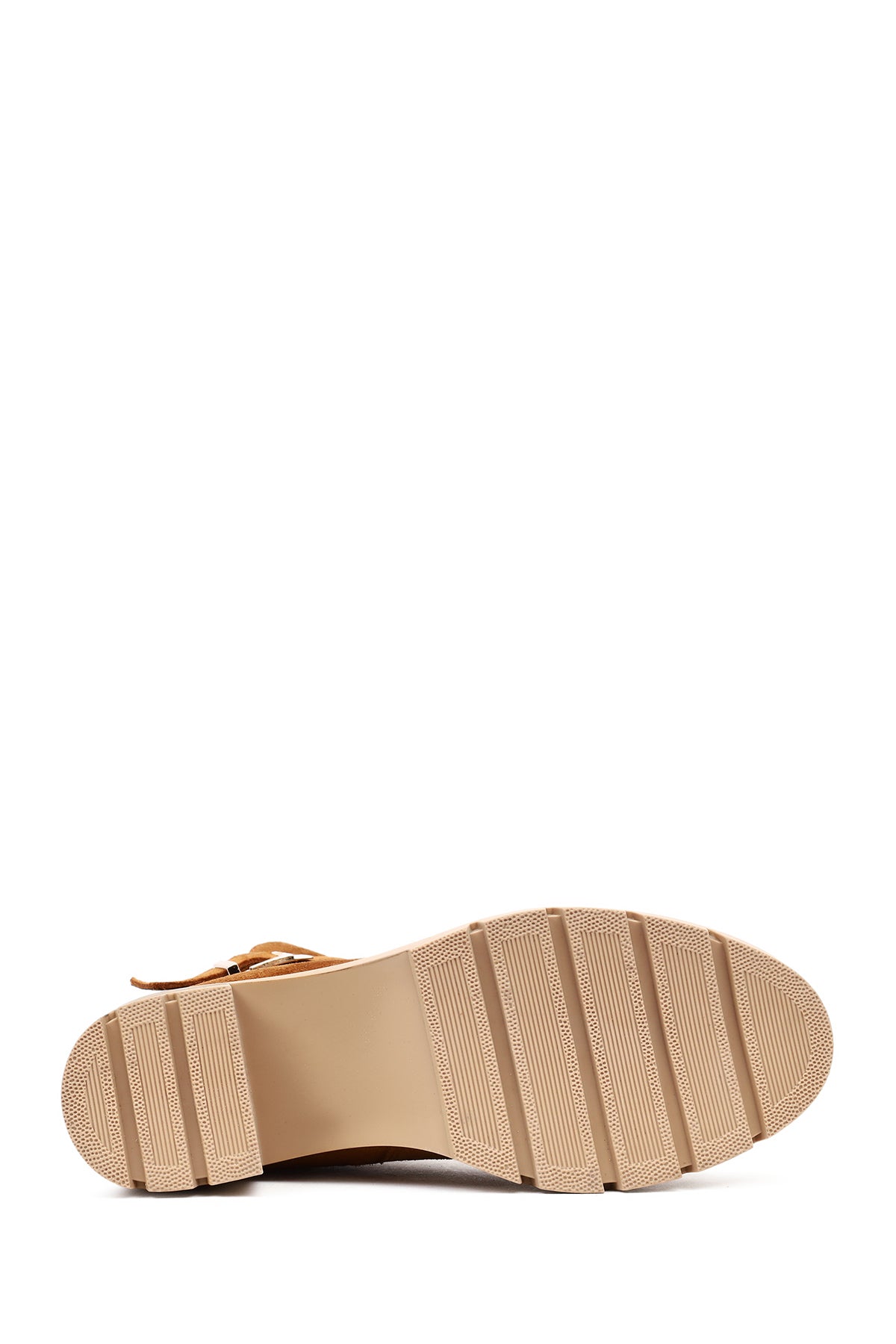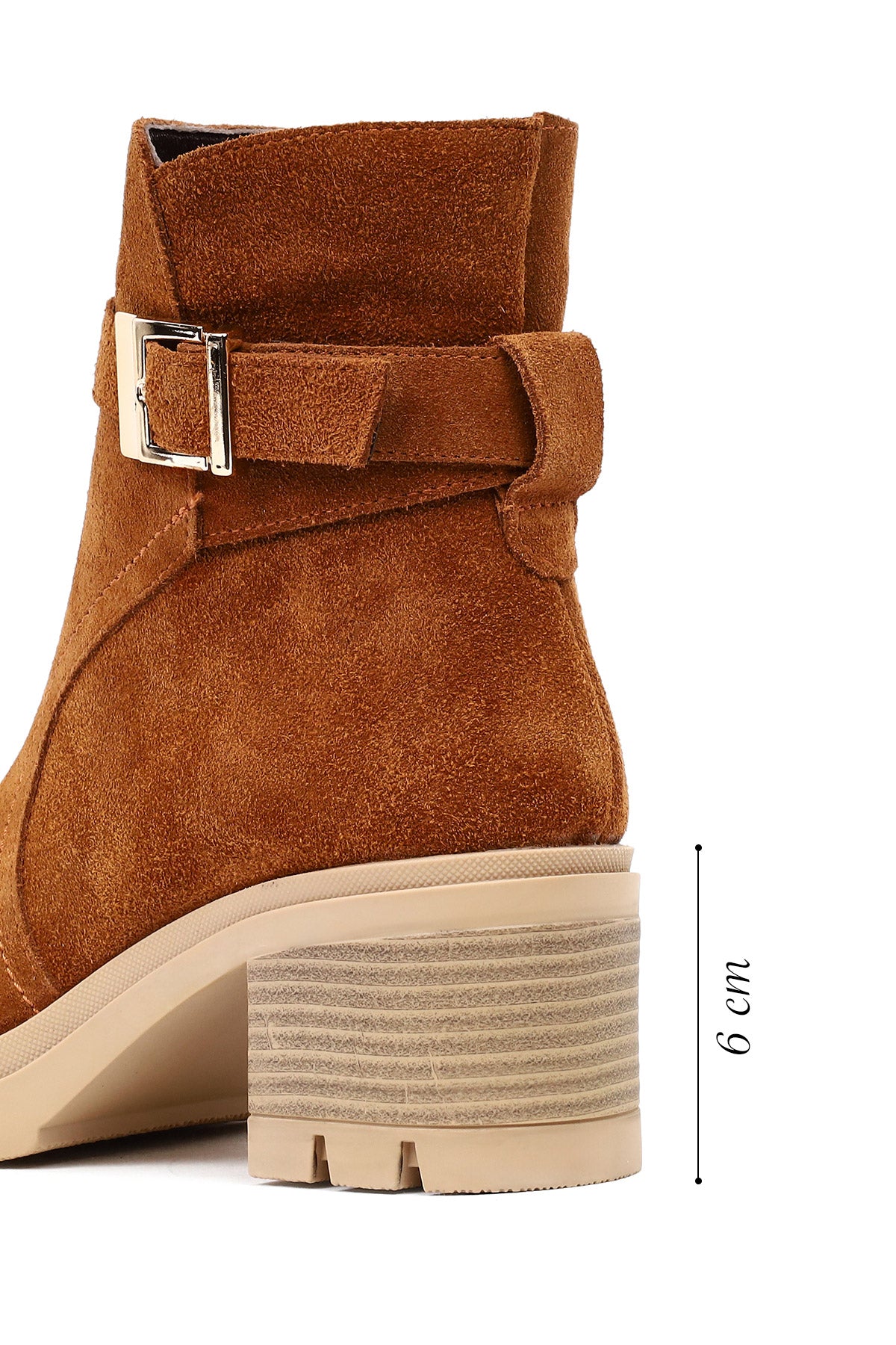 Women's Tan Thick Heeled Zippered Suede Leather Boot