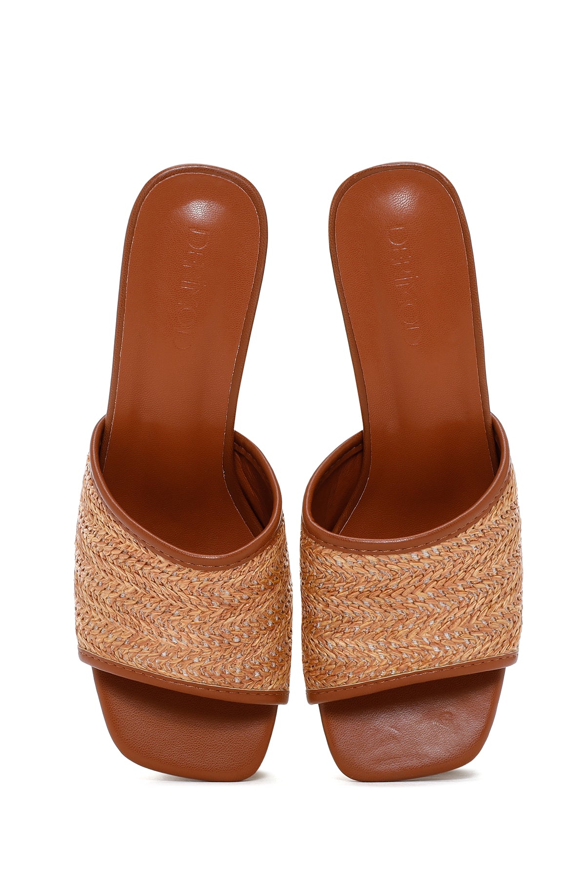 Women's Brown Thick Heeled Straw Slippers