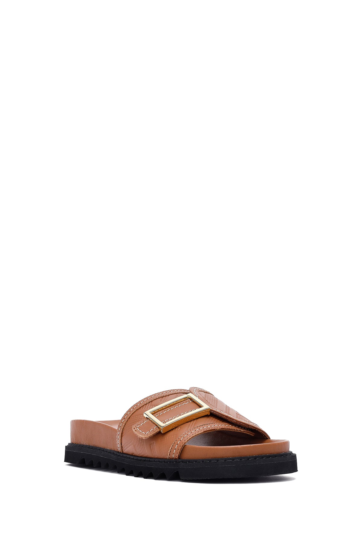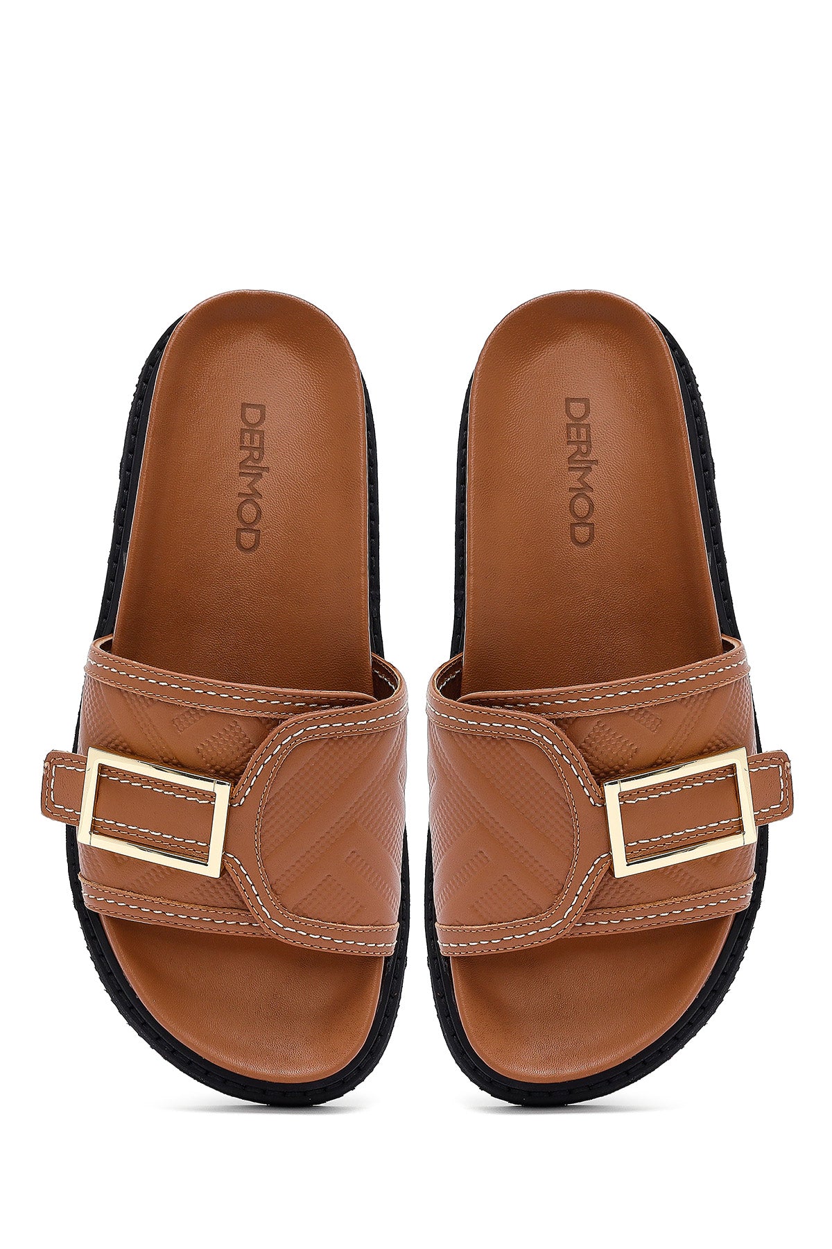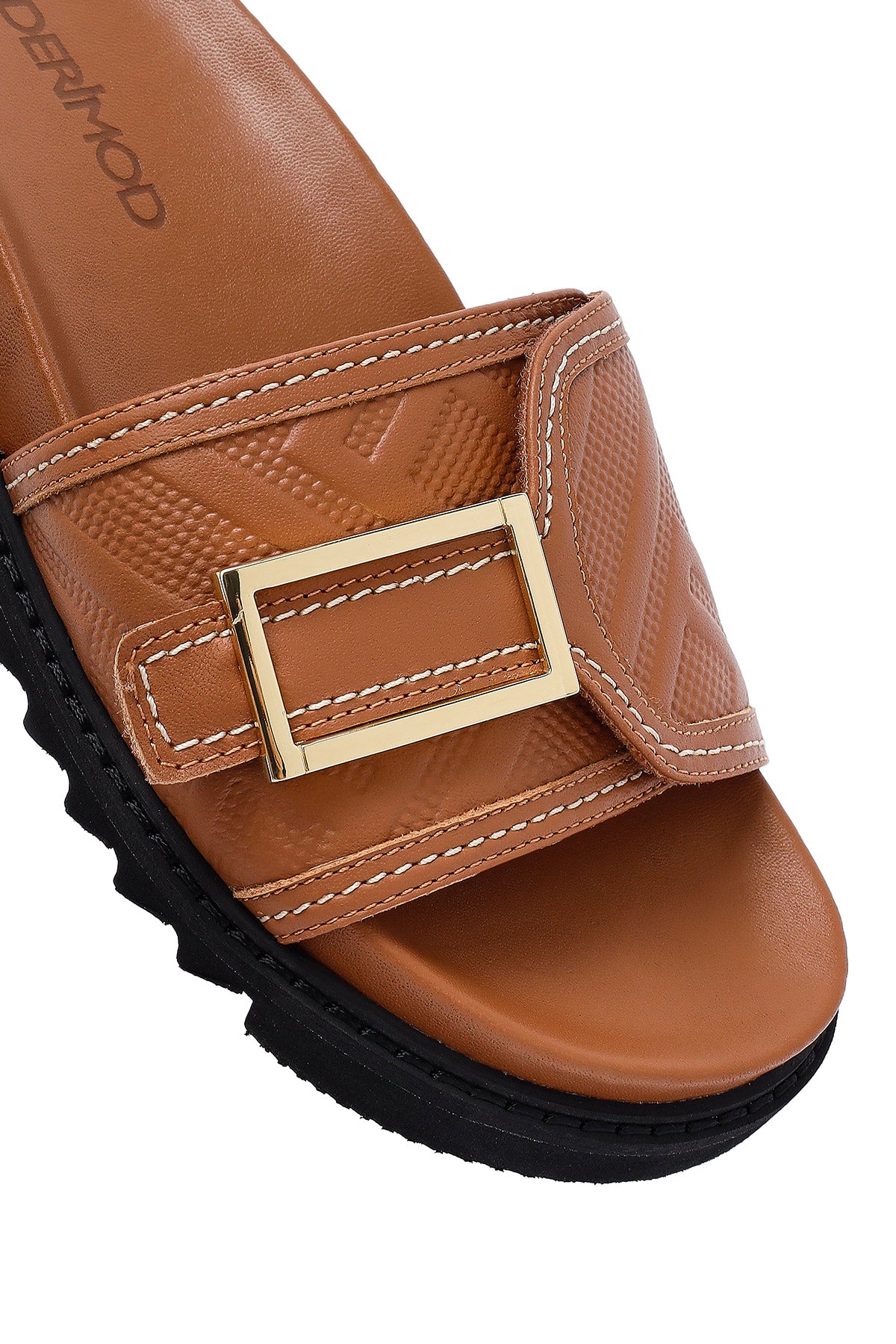 Derimod's elegance and style together Woman Tan Buckle Leather Show off your style with slippers. Product code: 25SFD230218 29