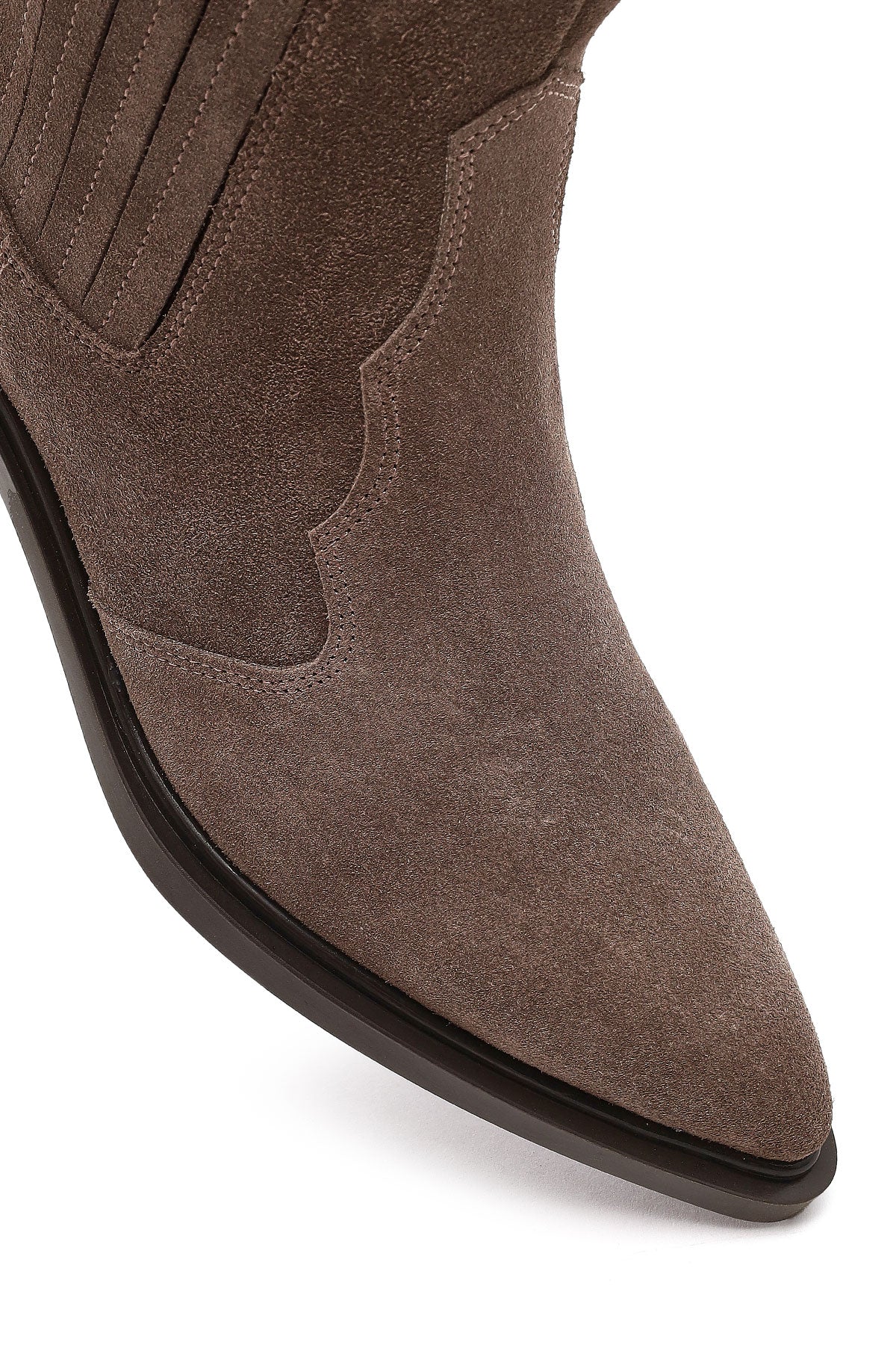 Combine style and elegance with the Women's Vizon Thick Short Heel Suede Leather Chelsea Cowboy Boot by Derimod. Product code: 25WFD182710 S5