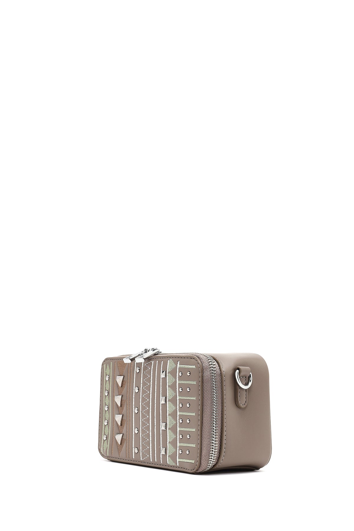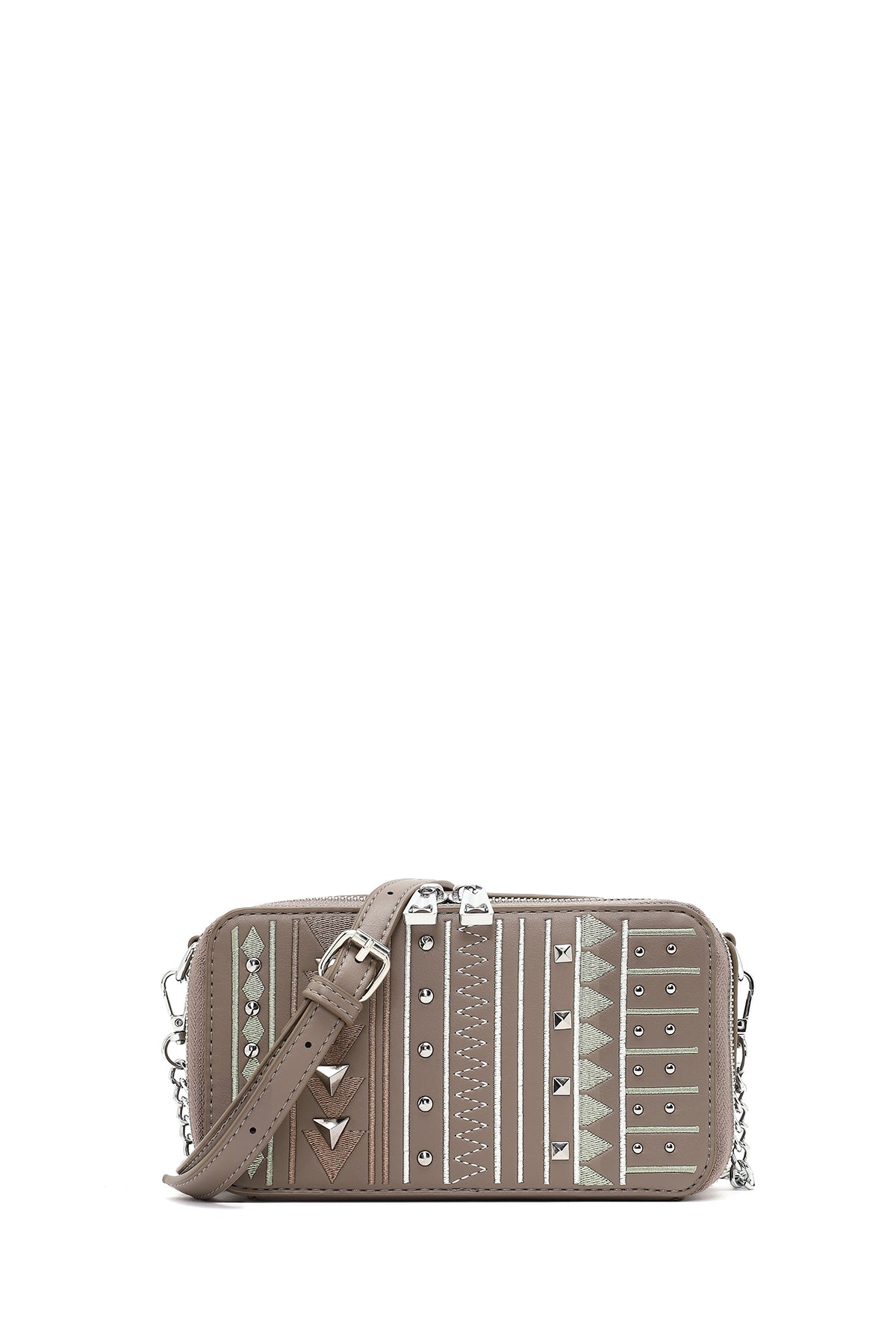 Women's Taupe Long Strapped Printed Crossbody Bag