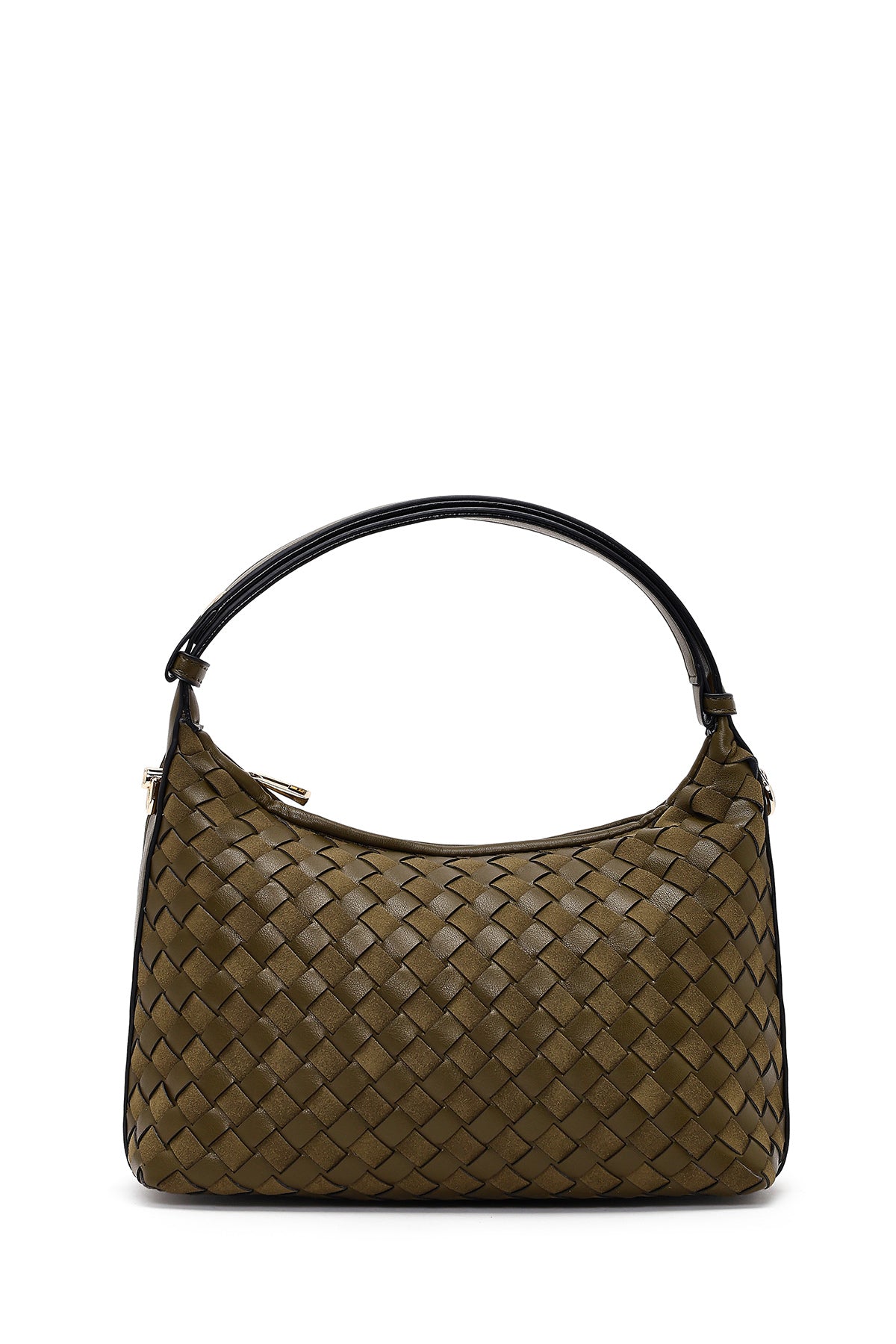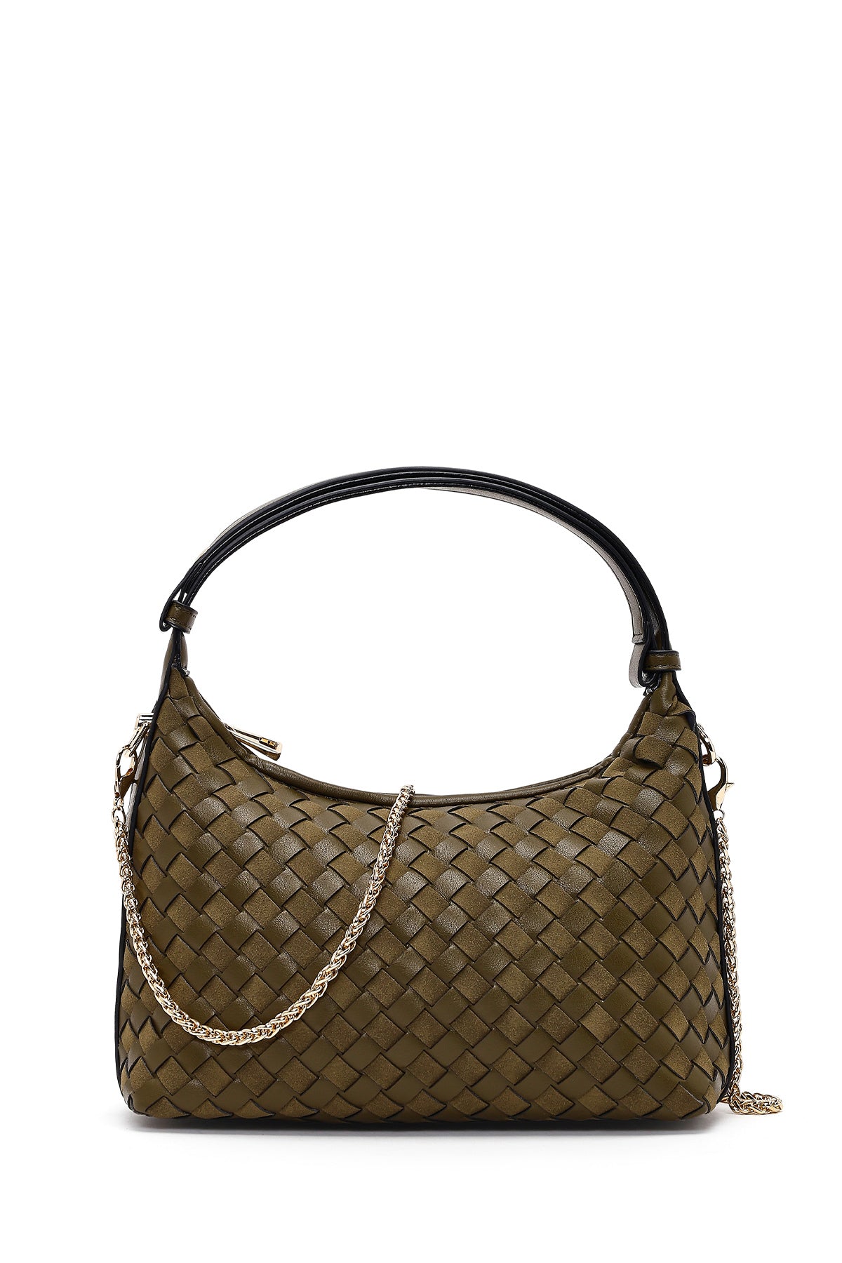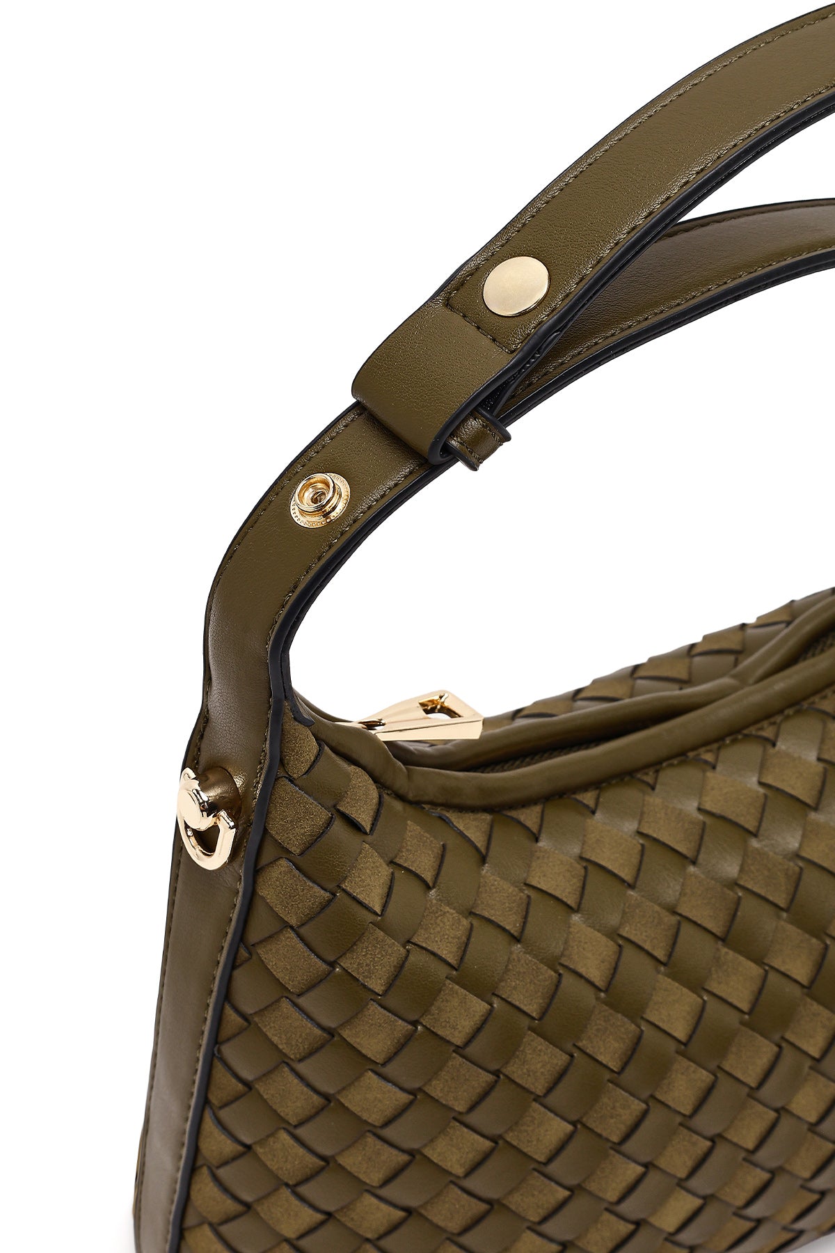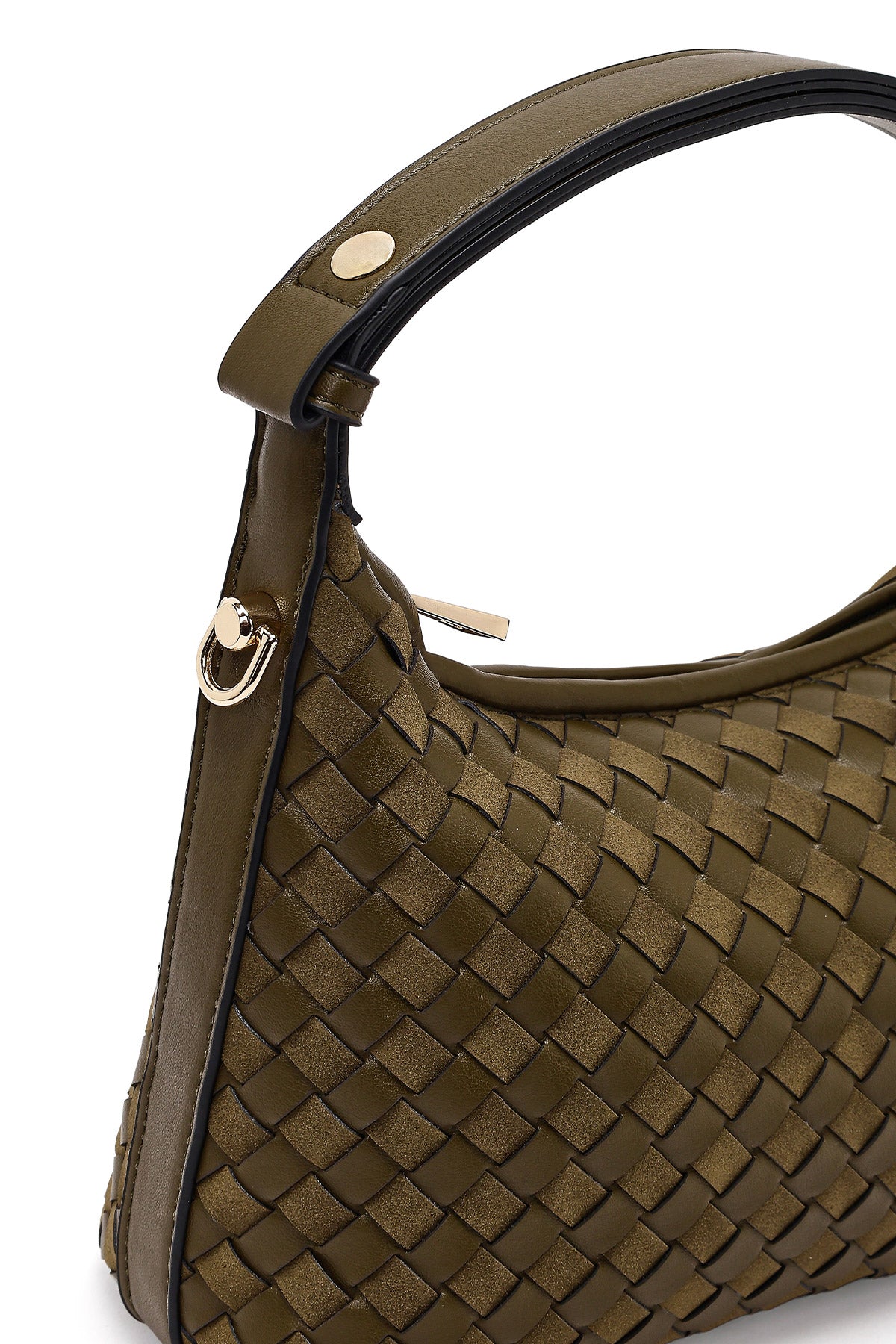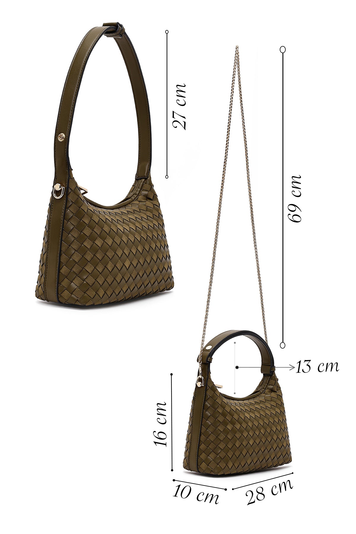 Woman Green Long Strapped Braided Mini Shoulder Bag