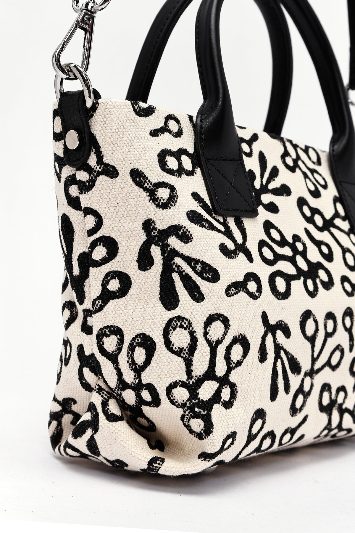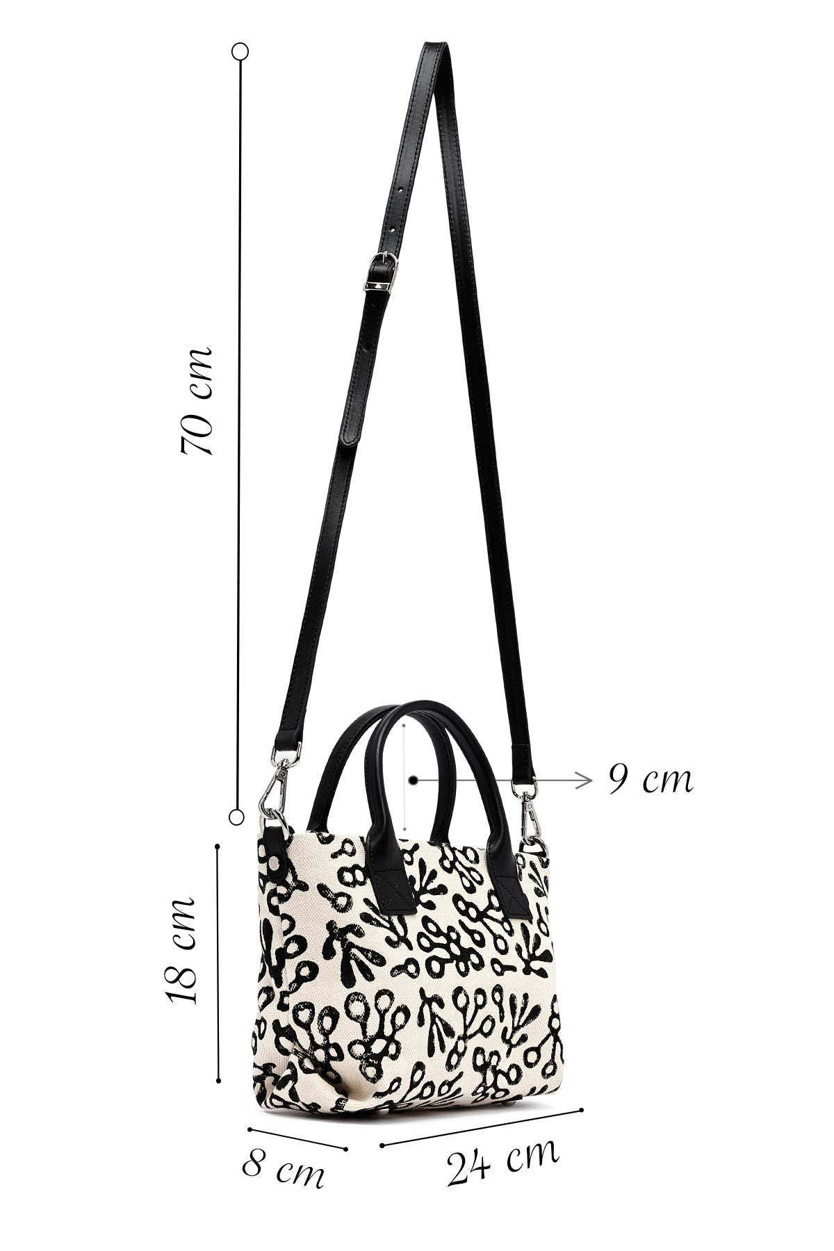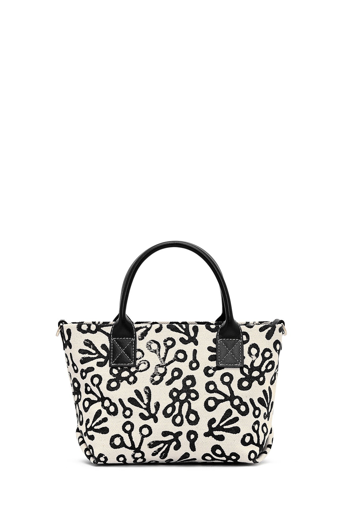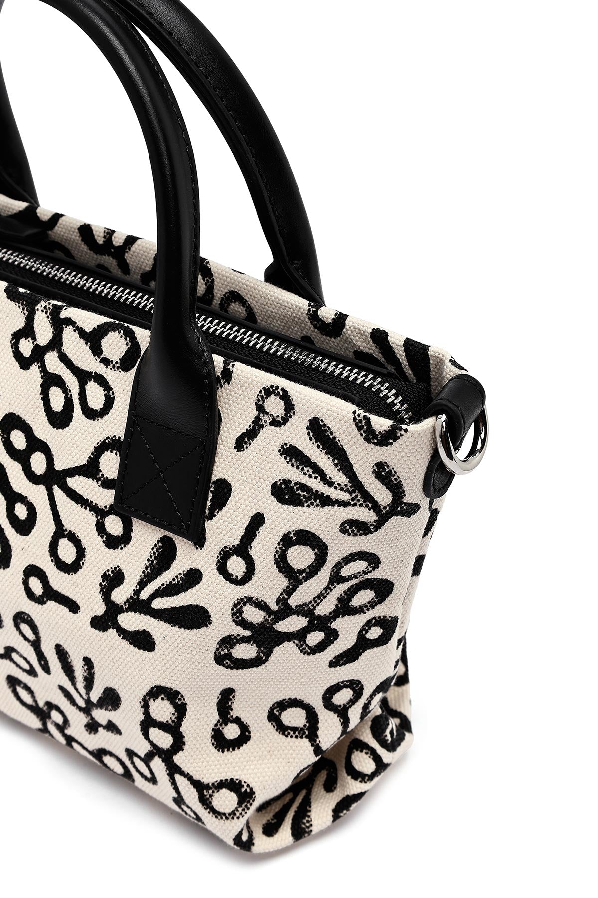 Kastamonu Stone Print Women's Black Long Strap Patterned Fabric Mini Handbag