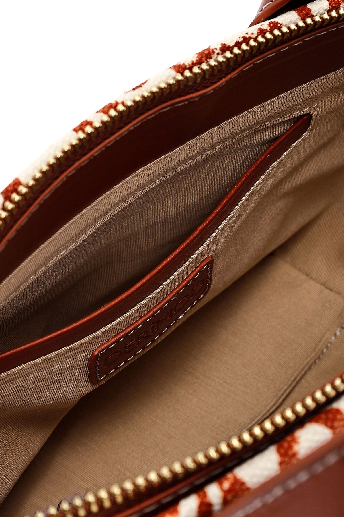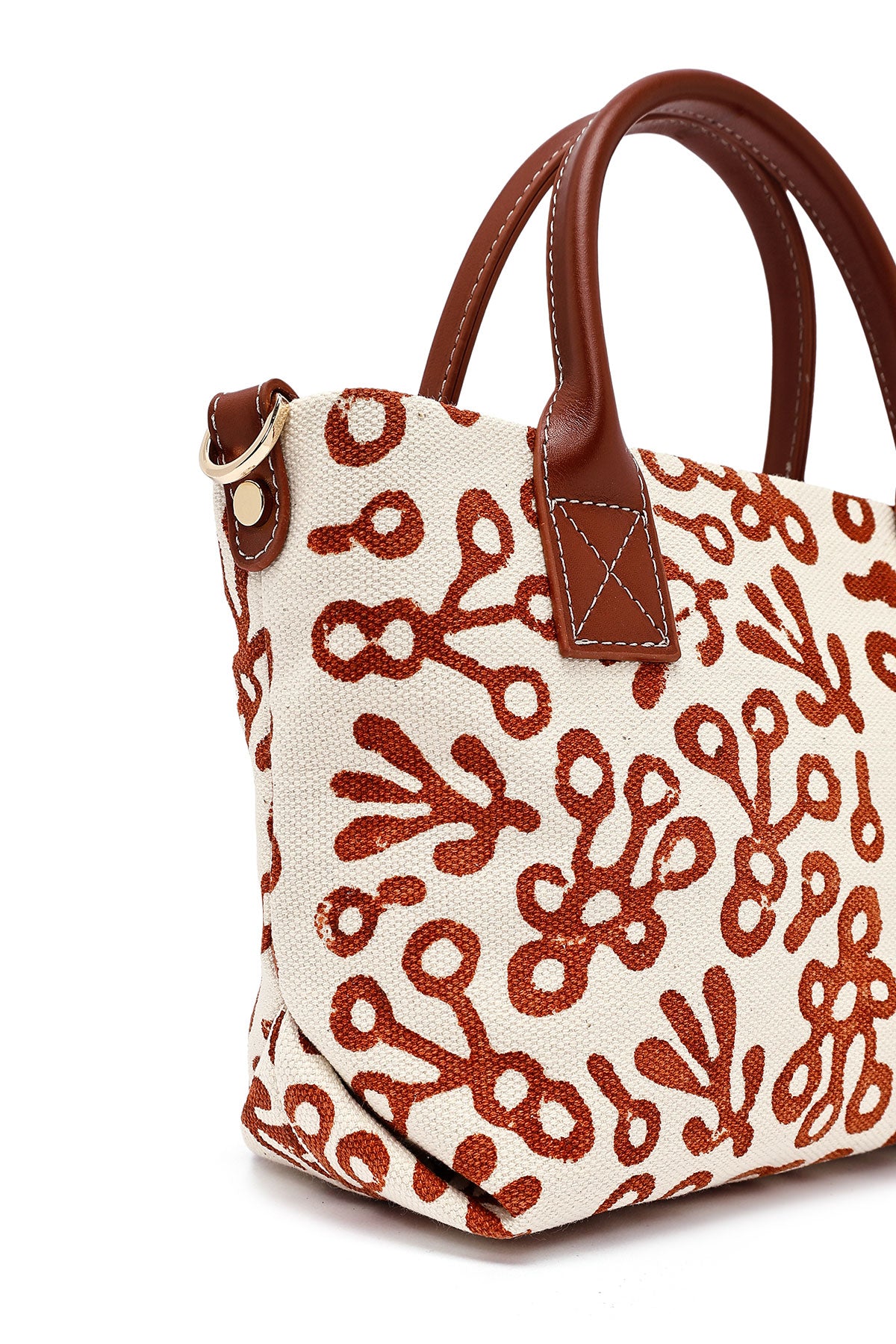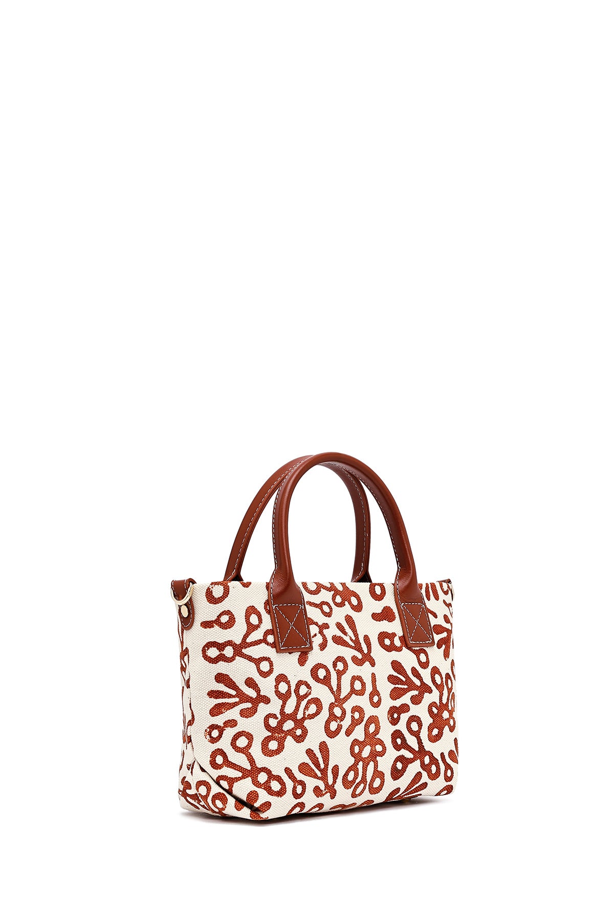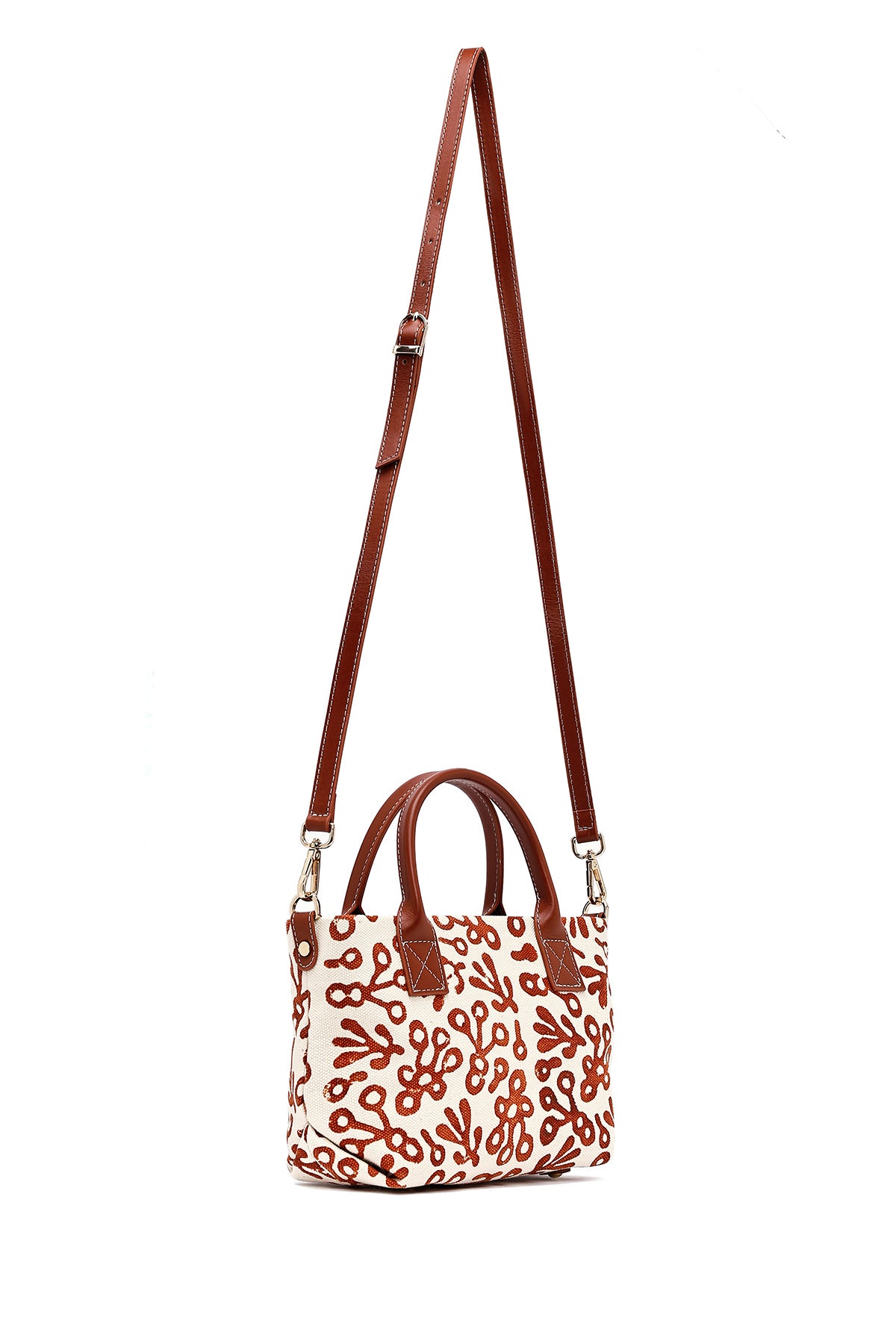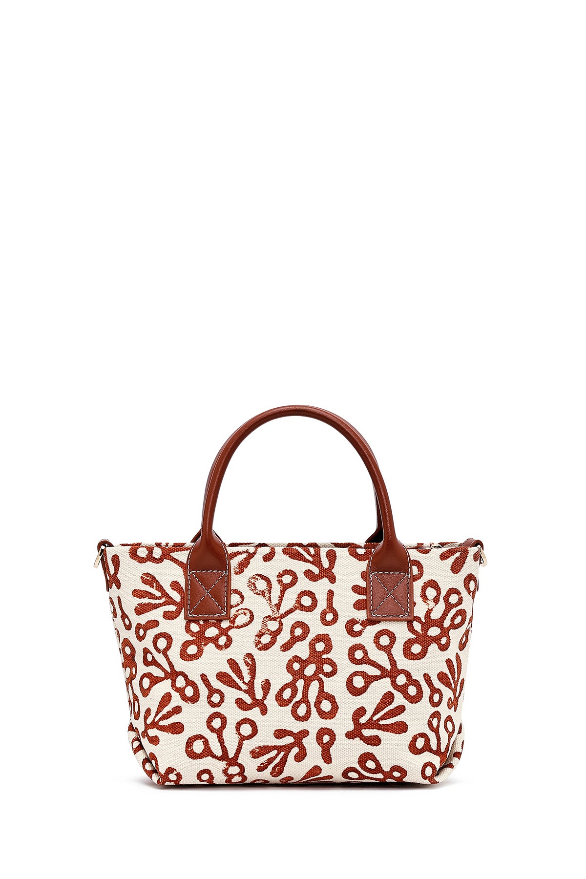 Kastamonu Stone Print Women's Brown Long Strap Patterned Fabric Mini Handbag
