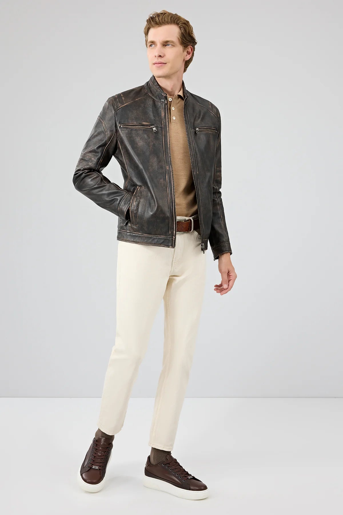 It is a fit, it is recommended to choose one size larger. Show off your style with Derimod's Kobe Men's Brown Leather Jacket, which offers elegance and style together. Product code: 24WGF6546R4 39