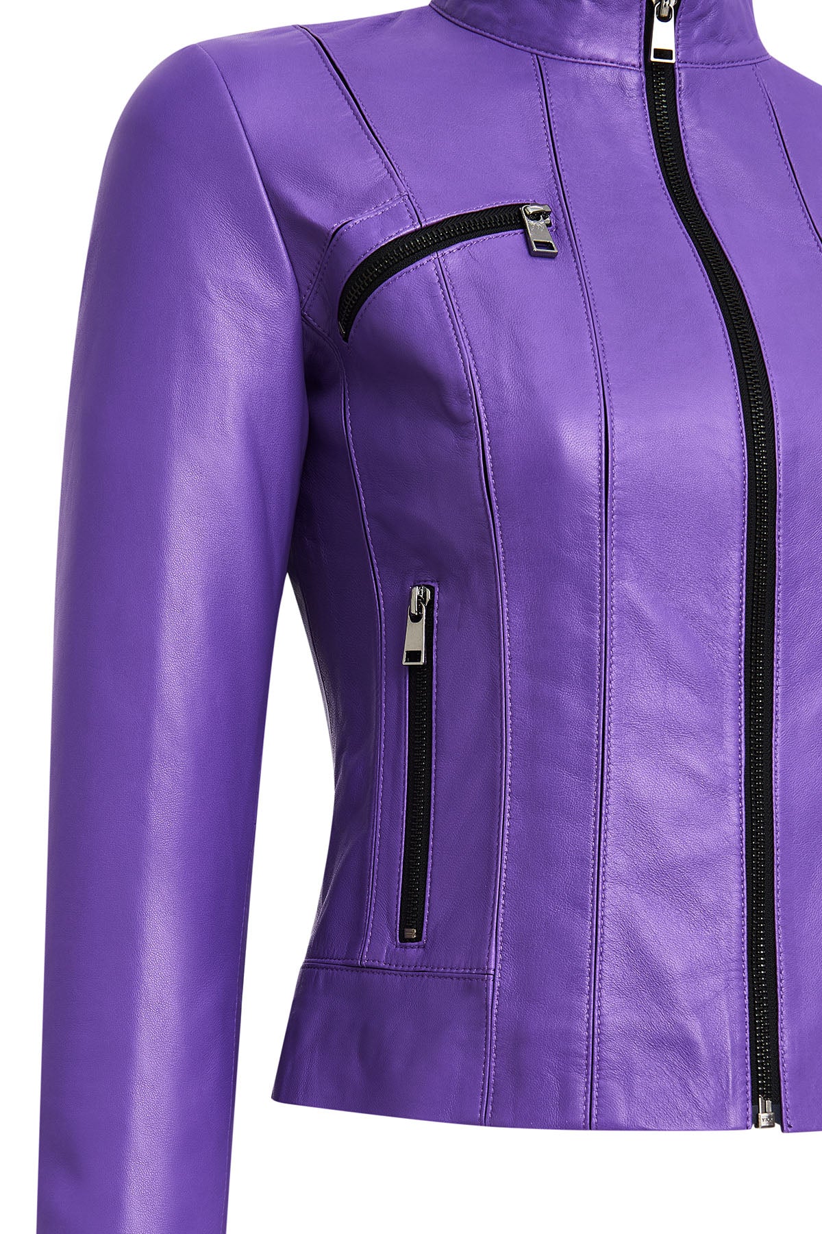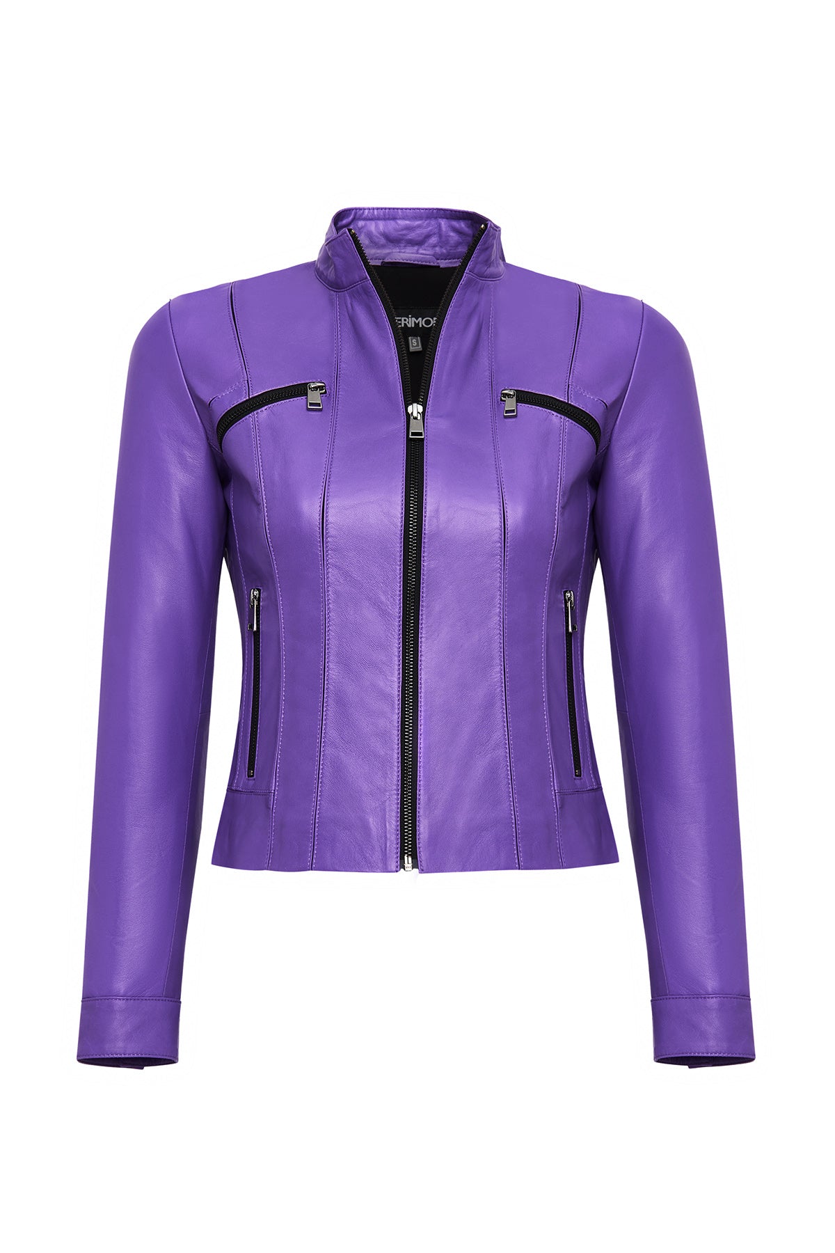 DerimodLinda, who offers elegance and style together Woman Purple Short Leather Show off your style with this jacket. Product code: 25SGD5200FH H8
