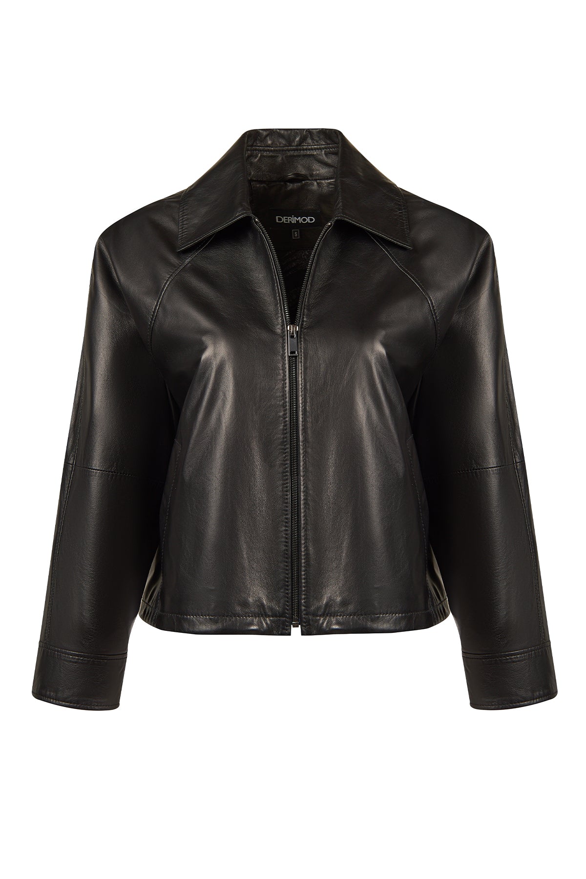Miami Woman Black Oversize Short Leather Jacket