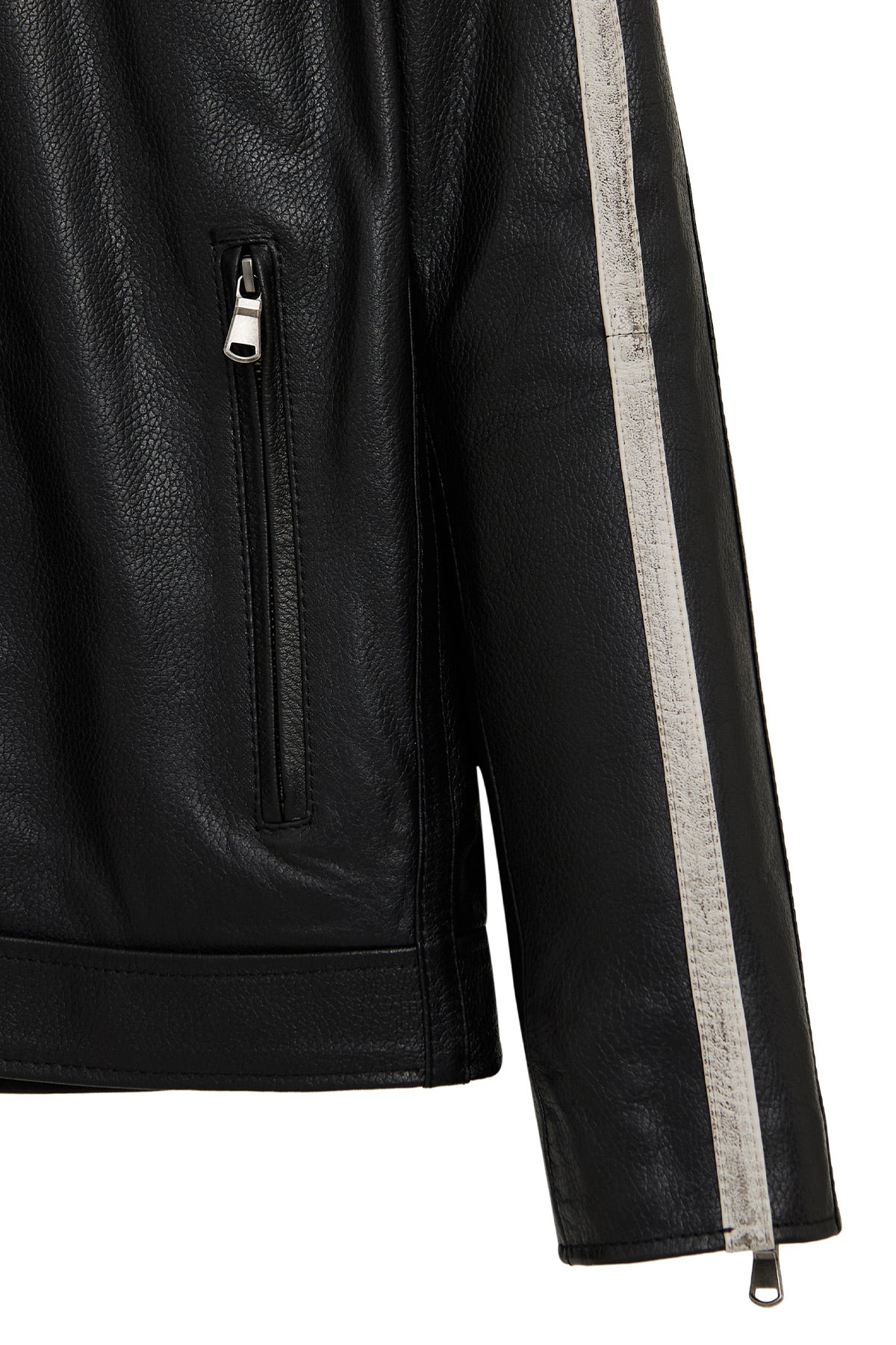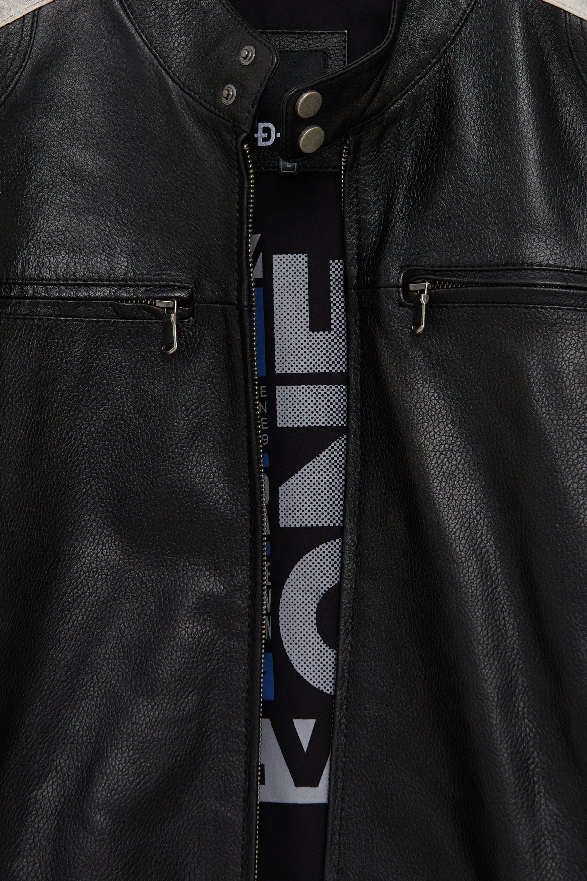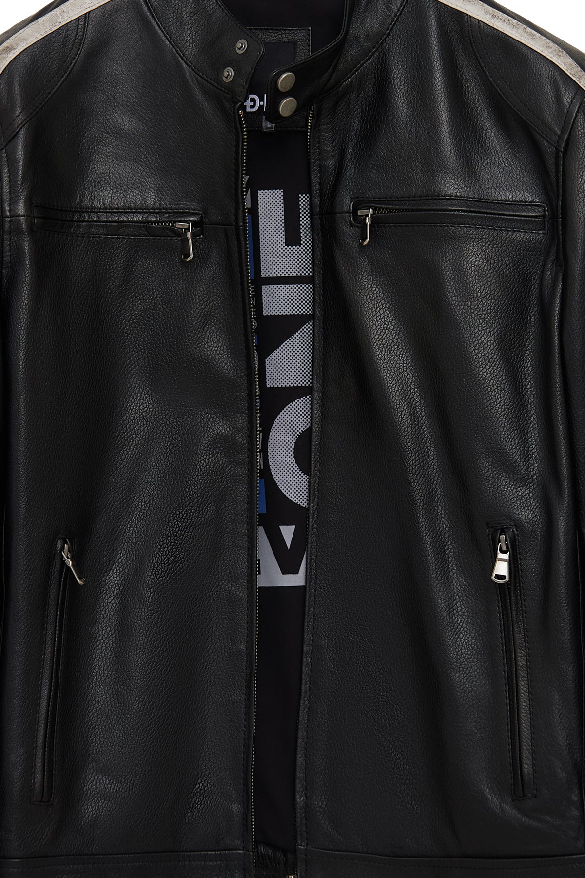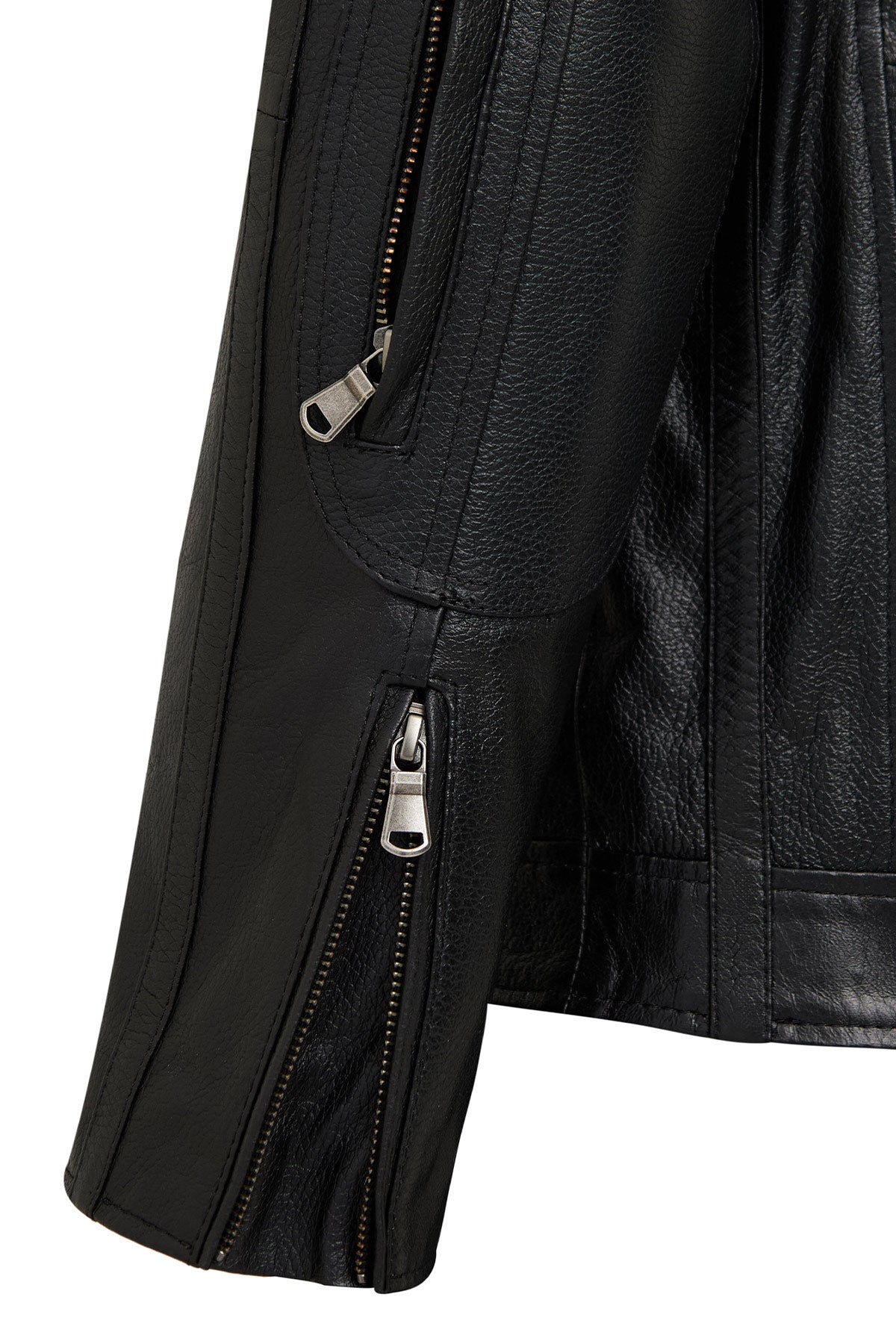 Middleton Men's Black Slim-Fit Short Leather Jacket is an impressive garment designed as an indispensable piece of modern men's style. Thanks to its genuine leather material, it offers years of use, while its black color perfectly matches every season and outfit. The stand collar design gives the jacket a sporty and contemporary character, while the zip closure system provides practical use and a modern look. The slim-fit cut perfectly hugs the body contours, creating an elegant silhouette without restricting freedom of movement. With four outer pockets and two inner pockets, functionality is kept at the maximum level, and the short length is designed in line with the dynamic style of today's men's fashion. The contrast-colored stripe details on the sleeves add a sporty and striking air to the jacket, while the textile inner lining provides comfort and breathability. This leather jacket, which can be easily preferred in casual and smart-casual combinations, blends motorcycle jacket aesthetics with modern lines, becoming one of the most valuable pieces in your wardrobe. Product code: 25WGF6583CY