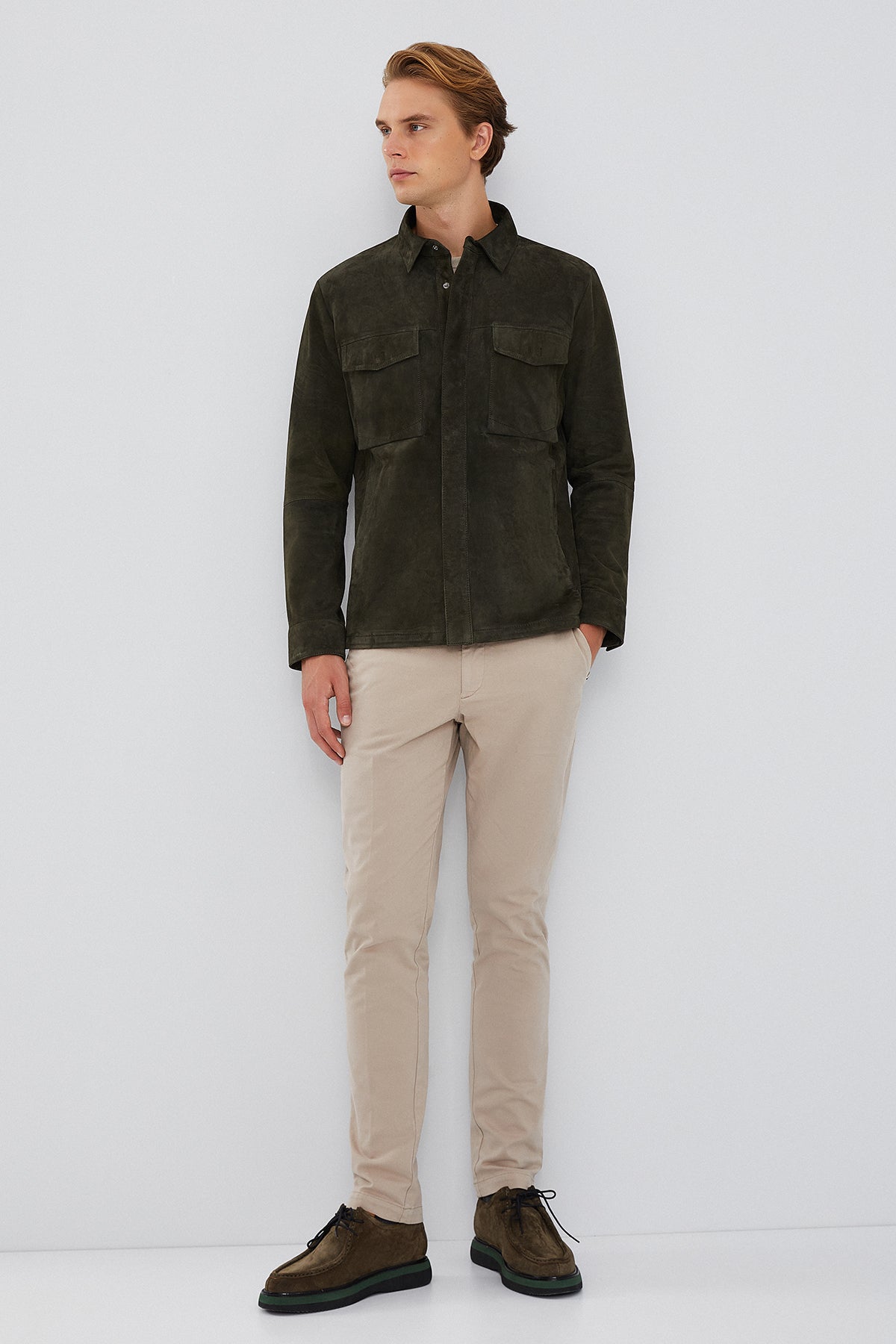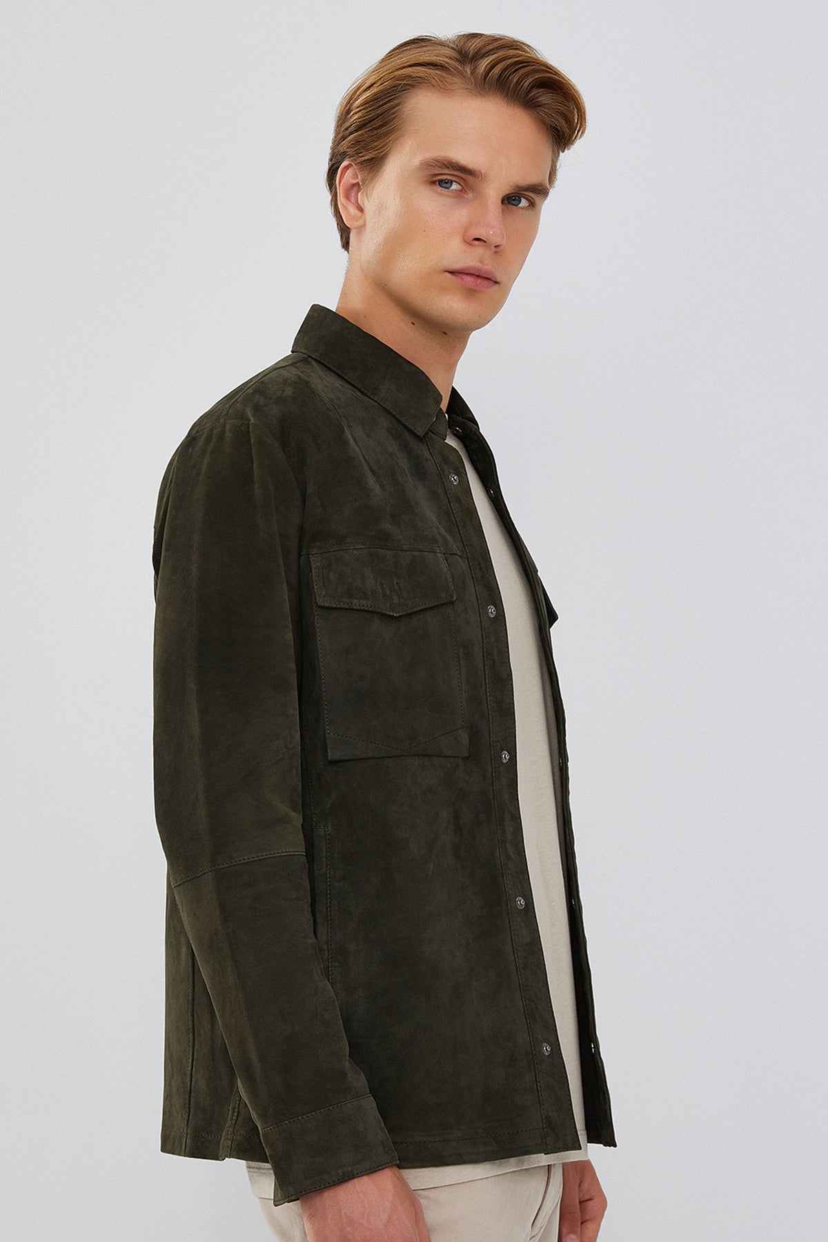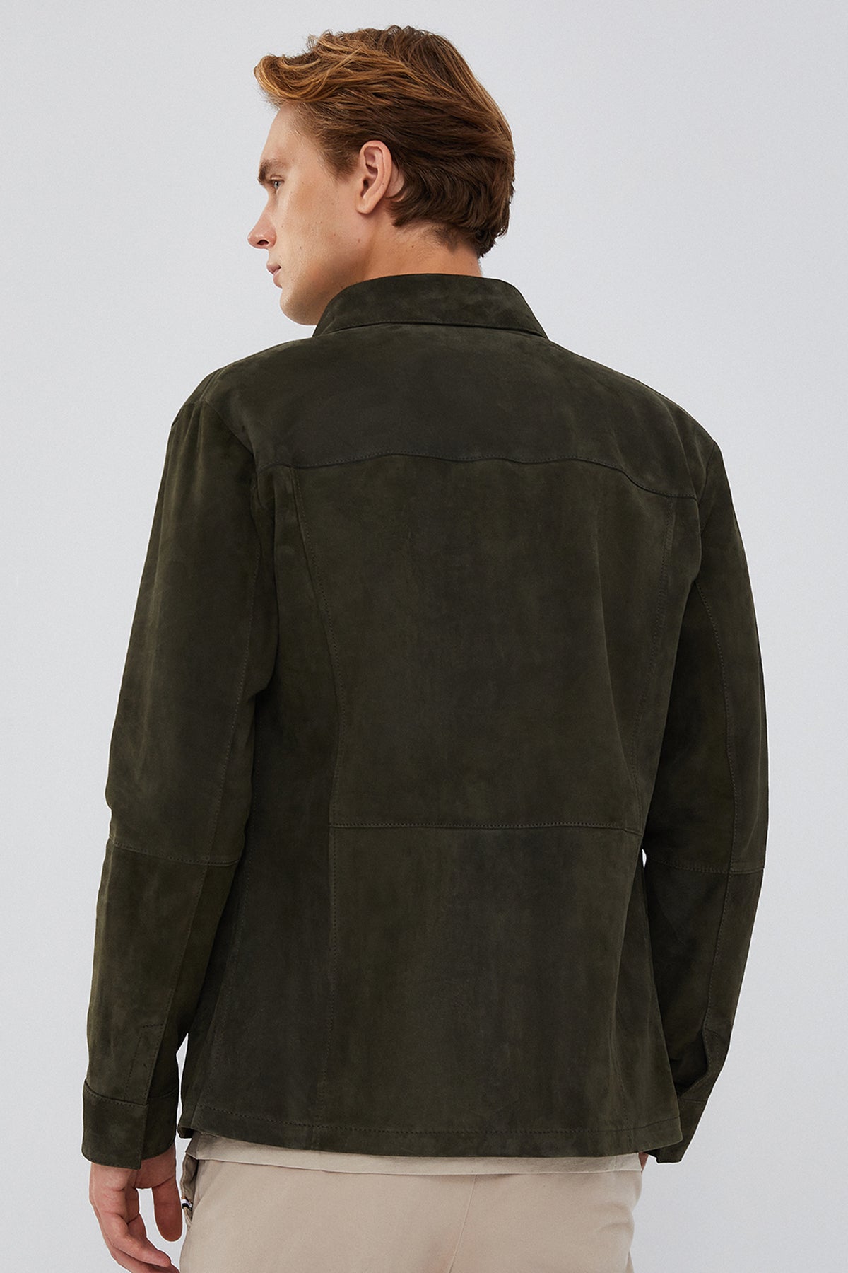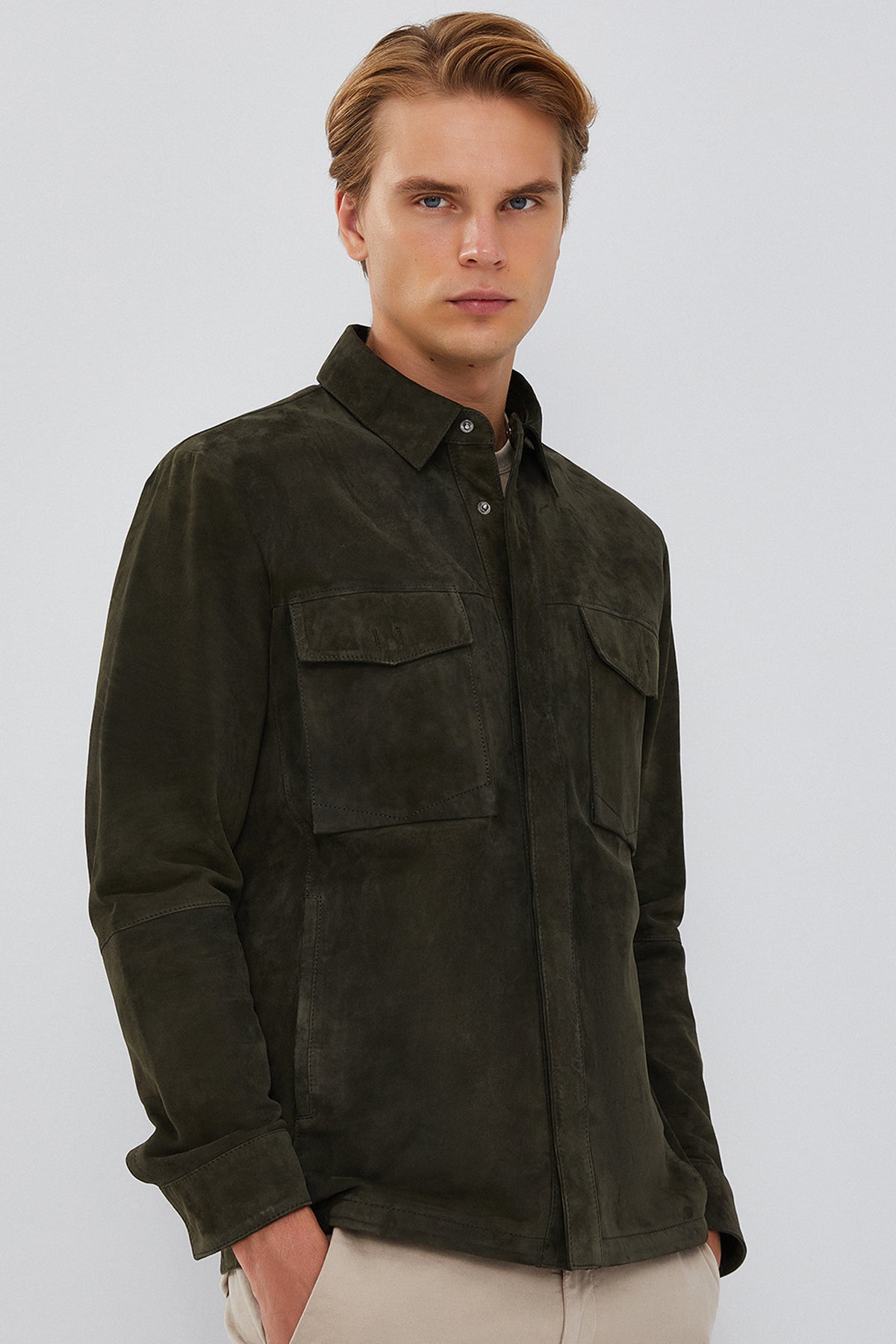Navas Men's Green Shirt Style Suede Leather Jacket