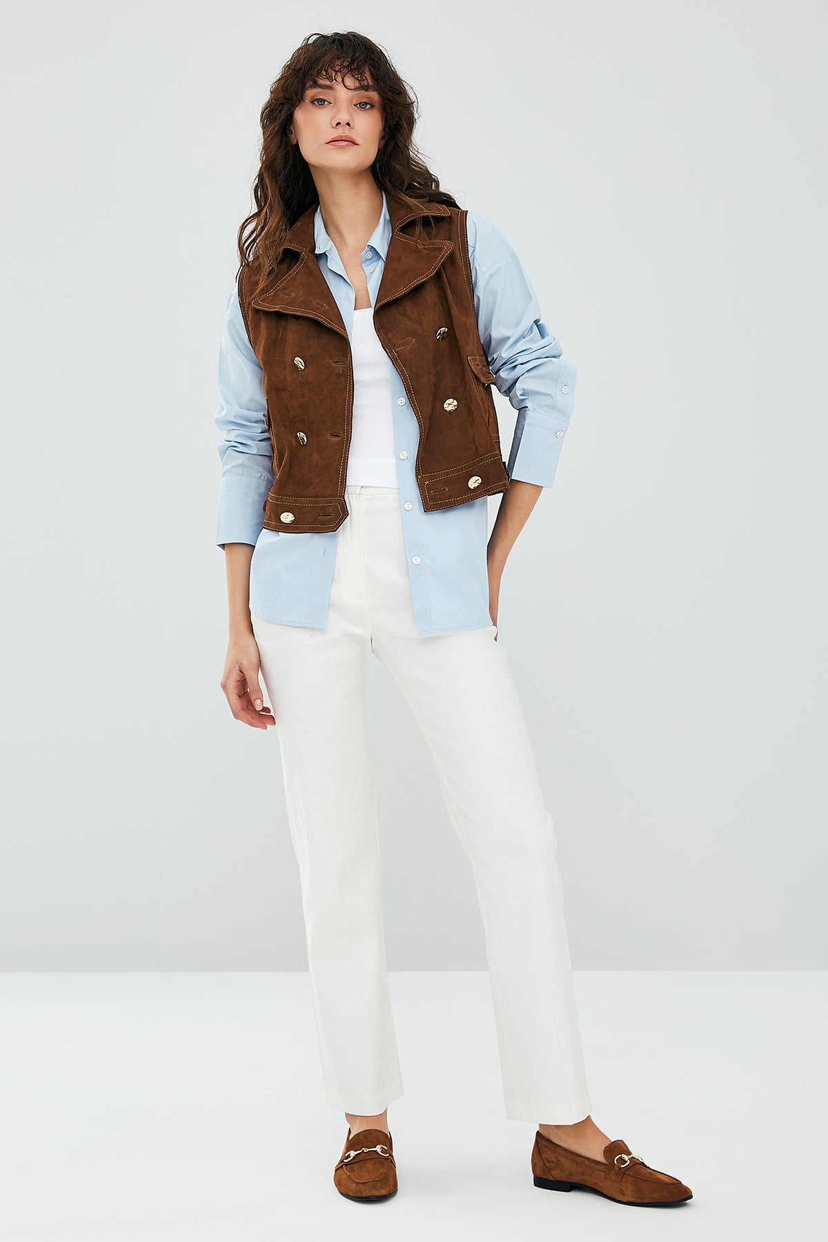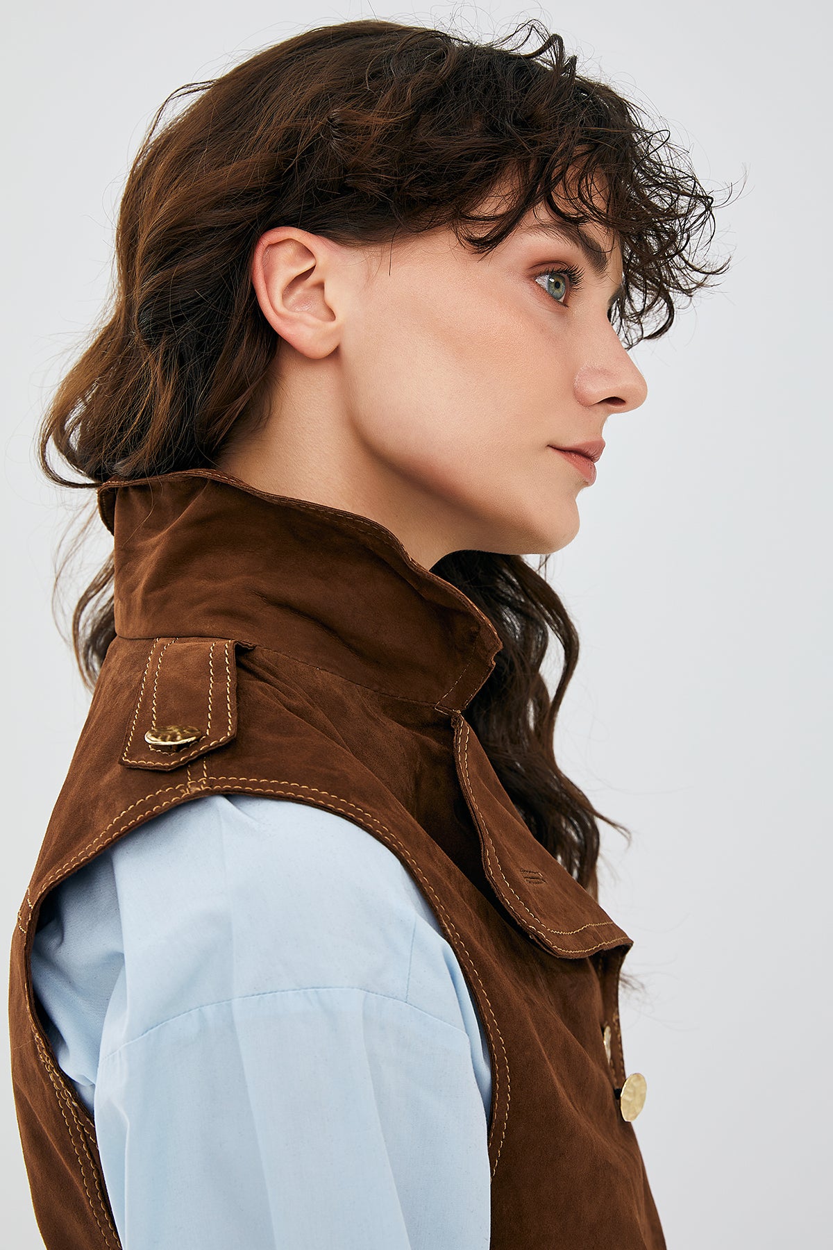 Show off your style with Derimod's Rio Women's Brown Suede Leather Vest, which offers elegance and elegance together. Product code: 23SGD508410 BR