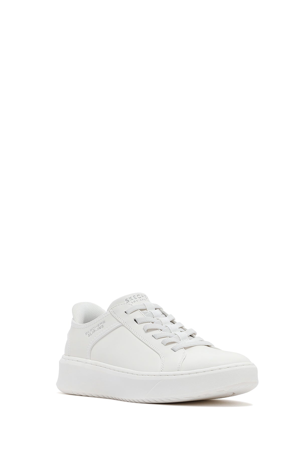 Skechers Men's White Court Break Lace-Up Chunky Sole Leather Sneakers
