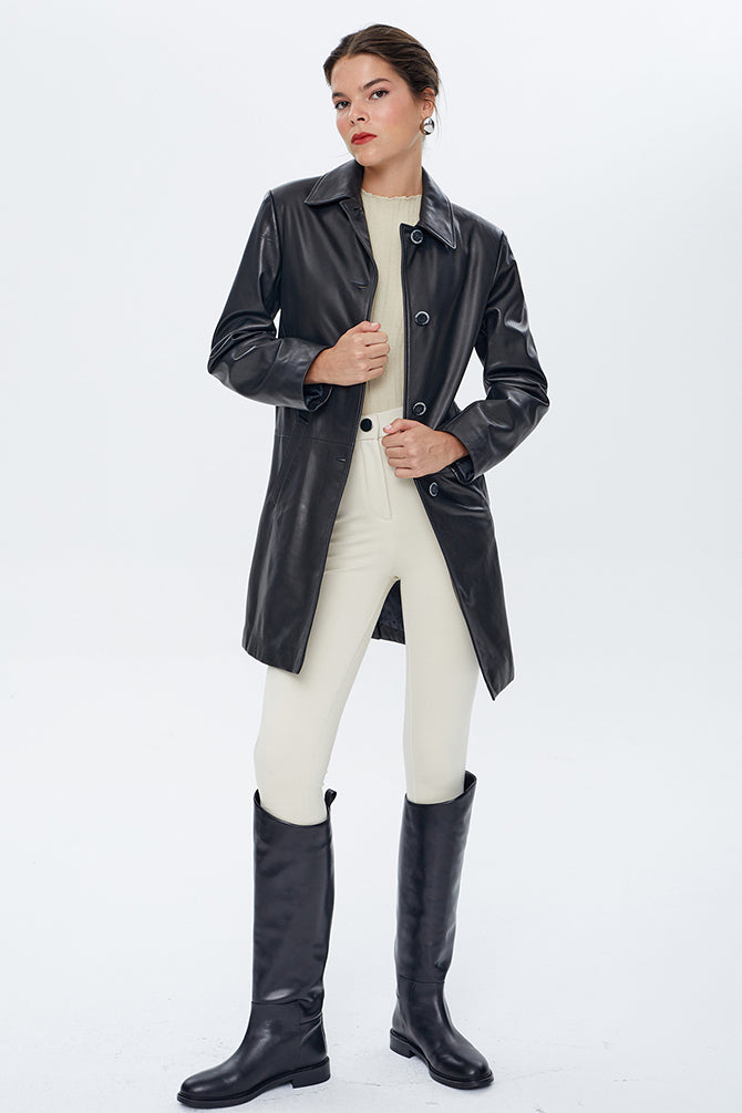 Show off your style with Derimod's Sophia Women's Black Long Leather Jacket, which offers elegance and elegance together. Product code: 21WGD5953U7 11