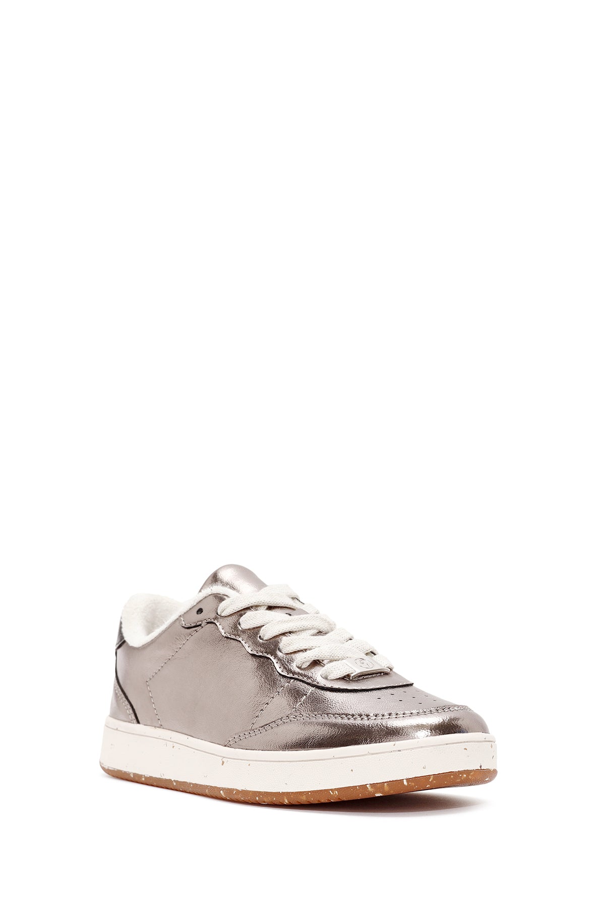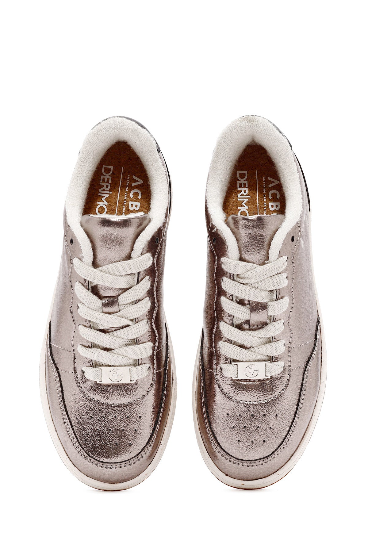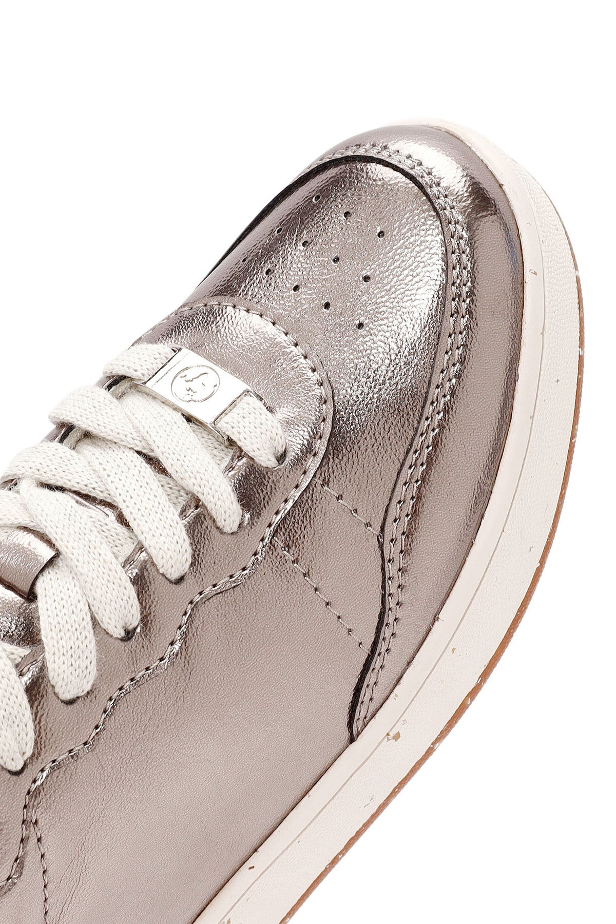 ACBC x Derimod işbirliğinin modern tasarımı olan bronz metalik sneaker, günlük şıklığı sürdürülebilir detaylarla buluşturuyor. 4,5 cm yüksekliğindeki beyaz tabanı ve meşe ağacı mantarı iç astarı ile konforlu bir kullanım sunarken, metalik bronz yüzeyi ile göz alıcı bir görünüm vadediyor. Klasik bağcık sistemi ayarlanabilir bir uyum sağlarken, kış koleksiyonunun bu şık parçası, casual kombinlerden smart casual görünümlere kadar geniş bir kullanım alanı sunuyor. Jean ve spor kıyafetlerle mükemmel uyum sağlayan model, sonbahar ve ilkbahar aylarında şehir yaşamının dinamik temposuna eşlik ediyor. Ürün kodu: 24WFD435232
