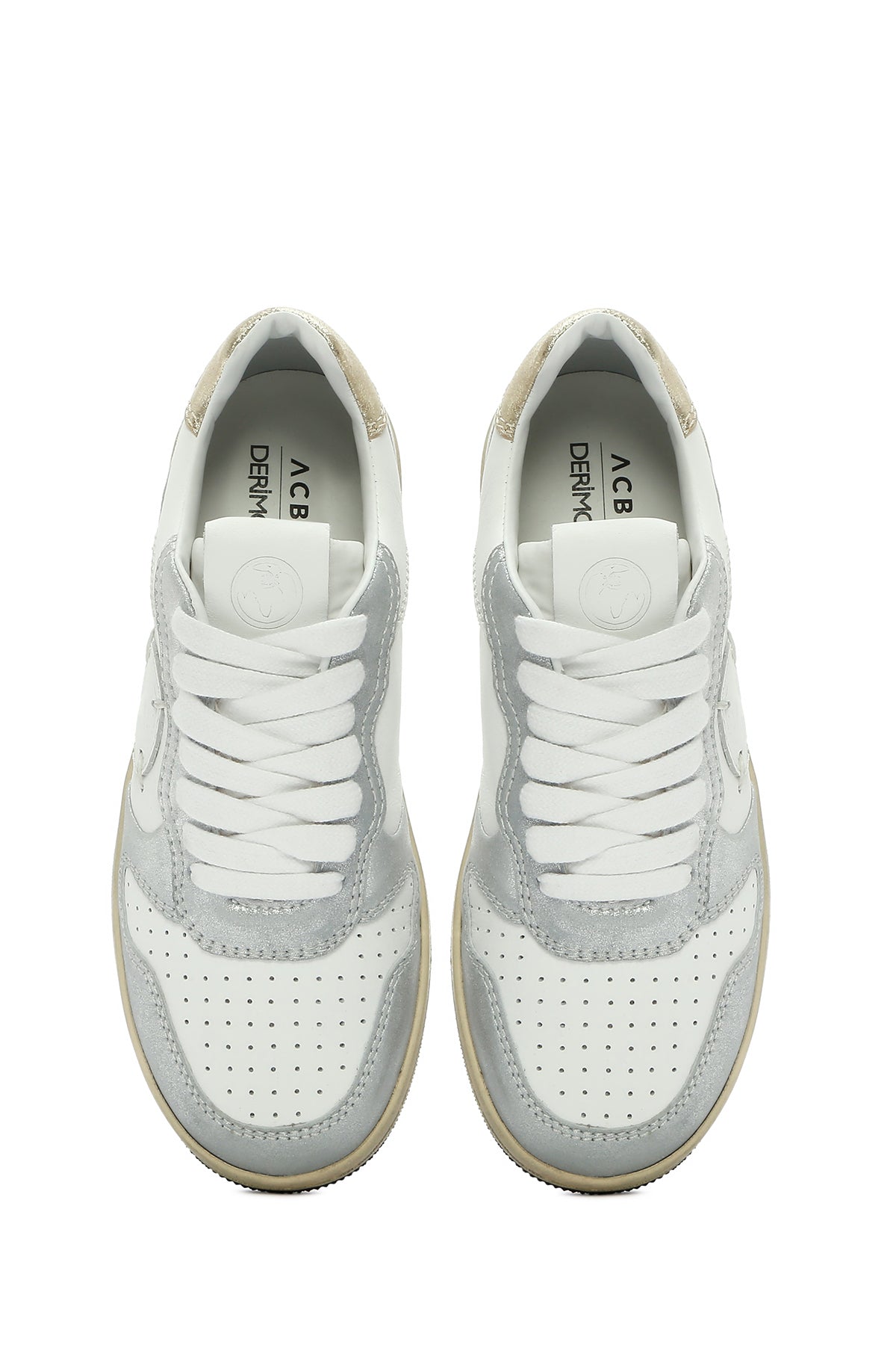 Derimod’un Zarifliği ve Şıklığı bir arada sunan ACBC x DERİMOD Kadın Gümüş Bağcıklı Simli Deri Sneaker ile tarzınızı konuşturun. Ürünün kodu: 25SFD4354SM GR