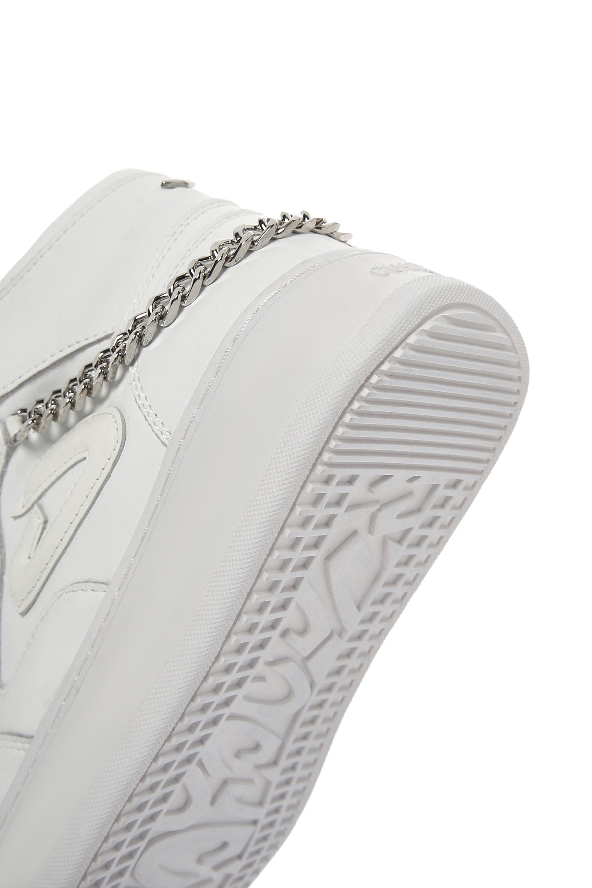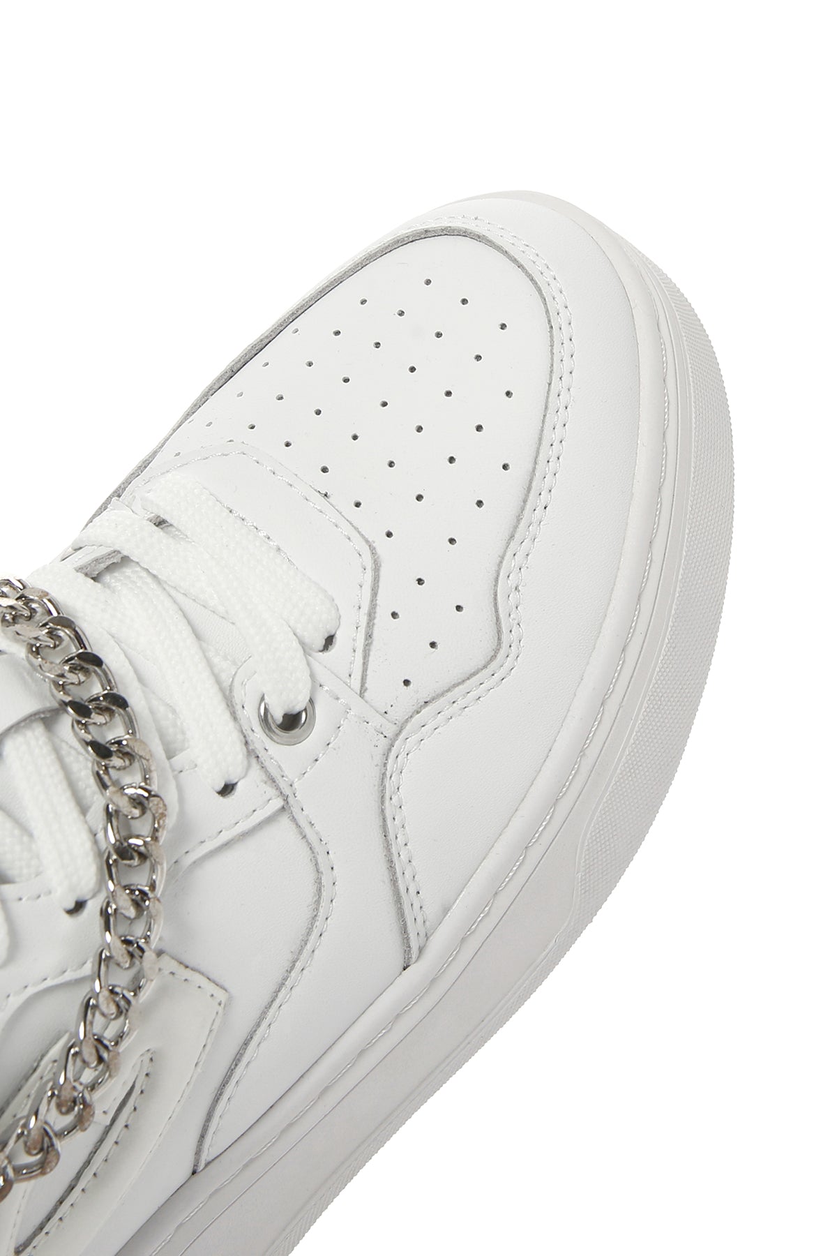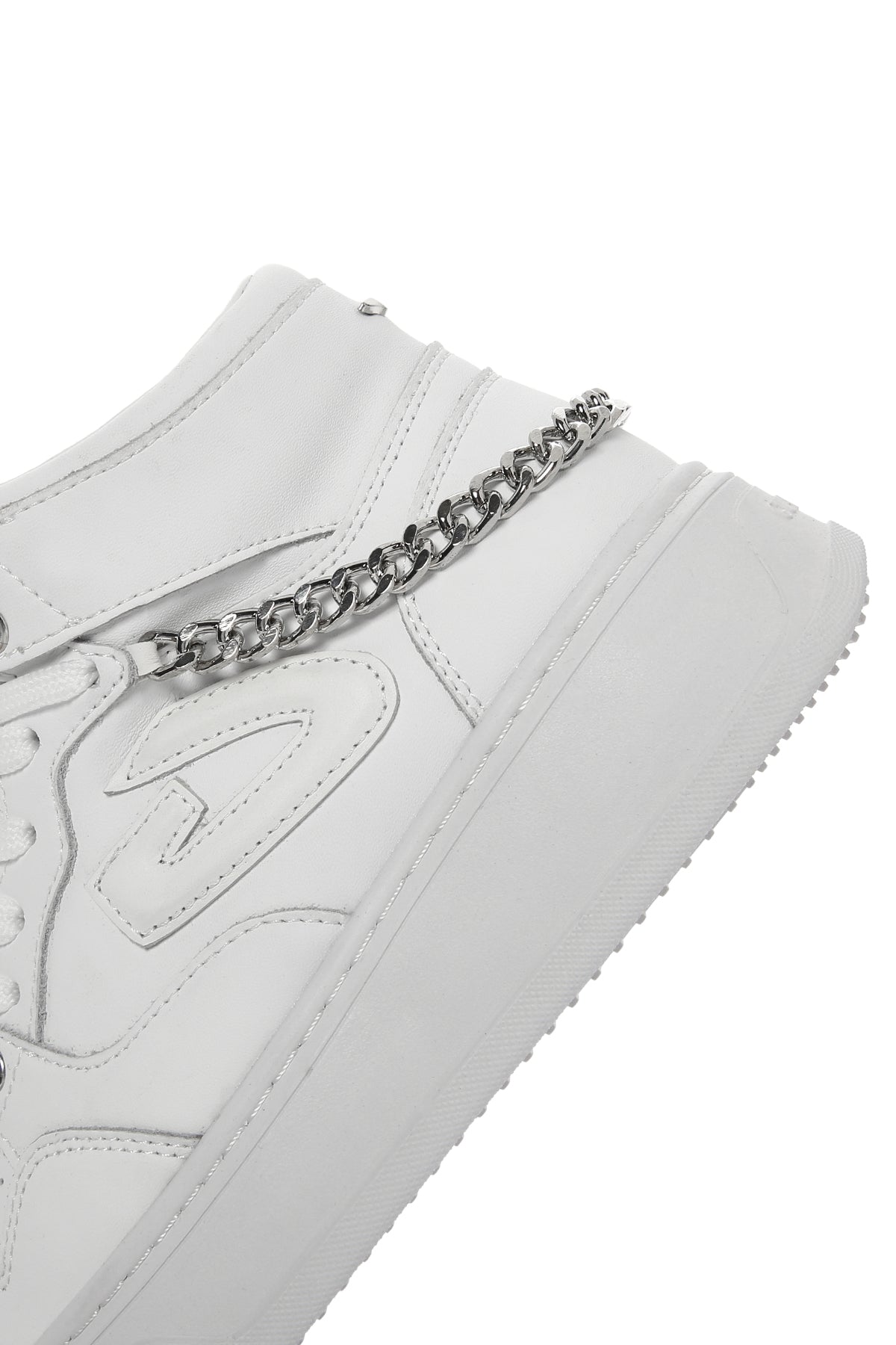 Alberto Guardiani'nin kış koleksiyonundan, gerçek deri ile üretilen beyaz sneaker modeli, 4 cm yüksekliğindeki kalın tabanı ile günlük kullanıma uygun bir tasarım sunuyor. Bilek kısmındaki gümüş zincir detayı ile lüks bir görünüm sergileyen model, tekstil iç astarı sayesinde ayağınızı rahat ettiriyor. Bağcıklı yapısı ile ayağa tam oturan sneaker, jean'lerden spor takımlara, günlük elbiselerden casual kombinlere kadar geniş bir kullanım alanı sunuyor. Sonbahar ve kış mevsimlerinde günün her saatinde kullanılabilir. Ürün kodu: G03G100010