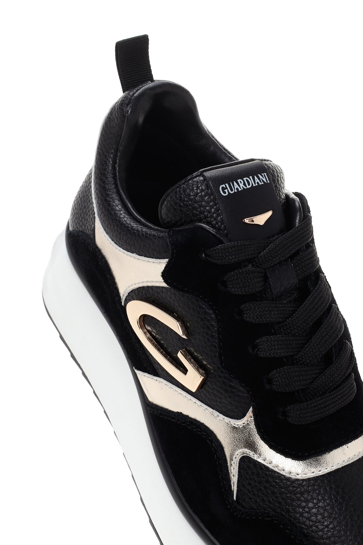 Derimod’un Zarif ve Şıklığı bir arada sunan Alberto Guardiani Kadın Siyah Altın Louise Kalın Tabanlı Deri Sneaker ile tarzınızı konuşturun. Ürünün kodu: G03G100009 9A