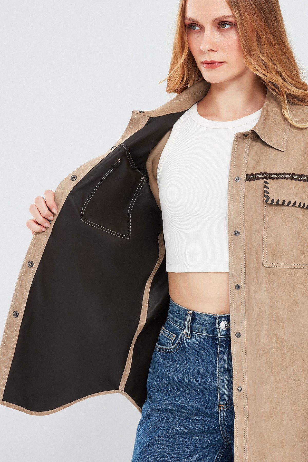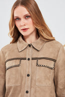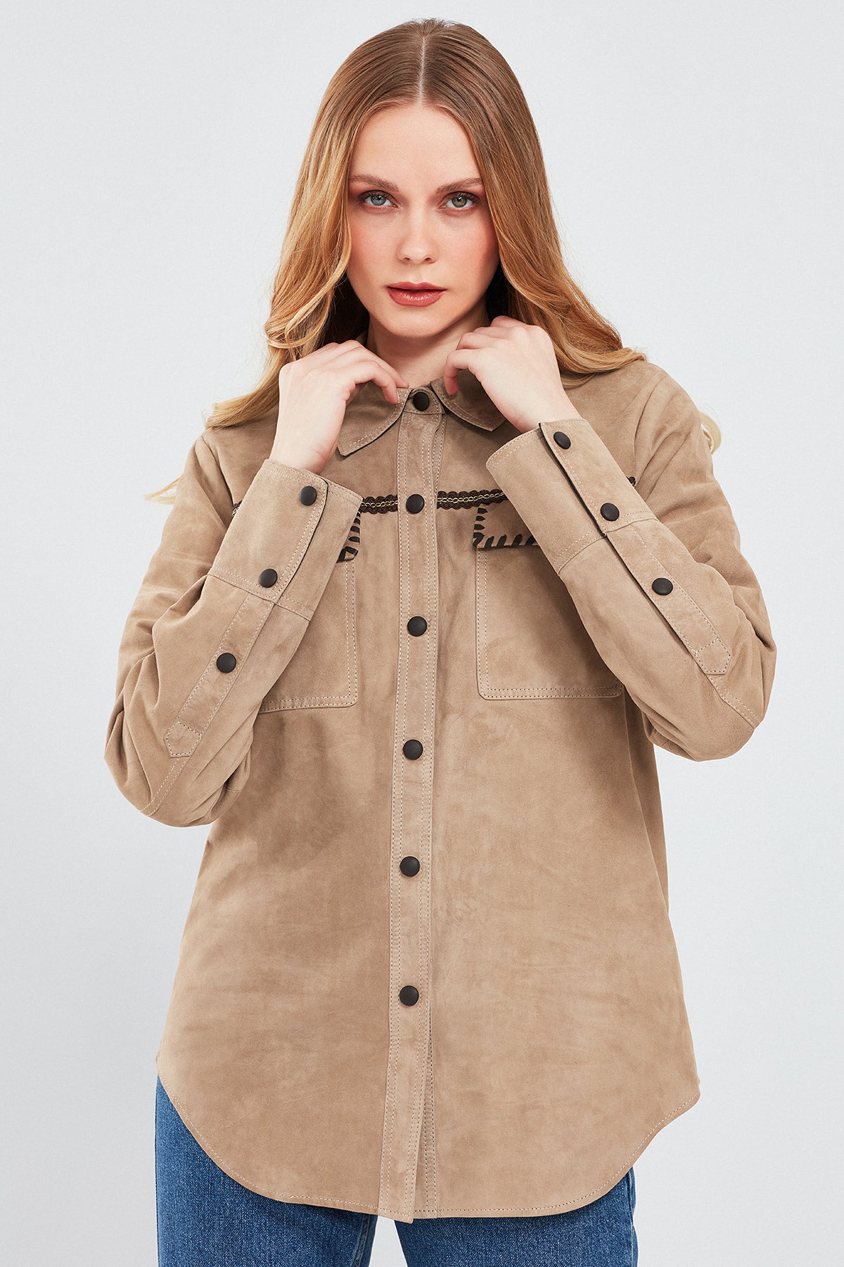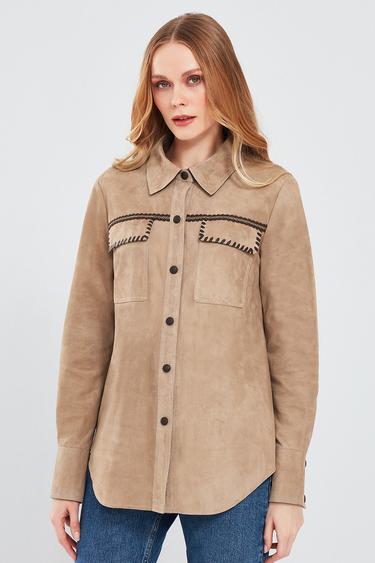 Derimod'un Amalfi Kadın Bej Gömlek Tarzı Süet Deri Ceketi, şıklık ve konforu bir arada sunar. Bu ceket, özel süet deri malzemesiyle üretilmiştir. Gömlek tarzı yakası ve çıtçıtlı kapama detayıyla dikkat çeker, şık ve modern bir görünüm sunar. Ceketin bej rengi, doğal ve sıcak bir ton içerir, kombinlerde kolaylıkla kullanılabilir. Regular/standart kalıbı, rahat bir giyim deneyimi sunarken, özel süet deri malzemesi kaliteyi ve dayanıklılığı temsil eder. Amalfi Kadın Bej Gömlek Tarzı Süet Deri Ceket, günlük kullanım için idealdir ve tarzınıza modern bir dokunuş katmak isteyenler için mükemmel bir seçimdir. Derimod'un kalitesi ve şıklığı ile öne çıkan bu ceket, gardırobunuzun vazgeçilmezi olabilir.