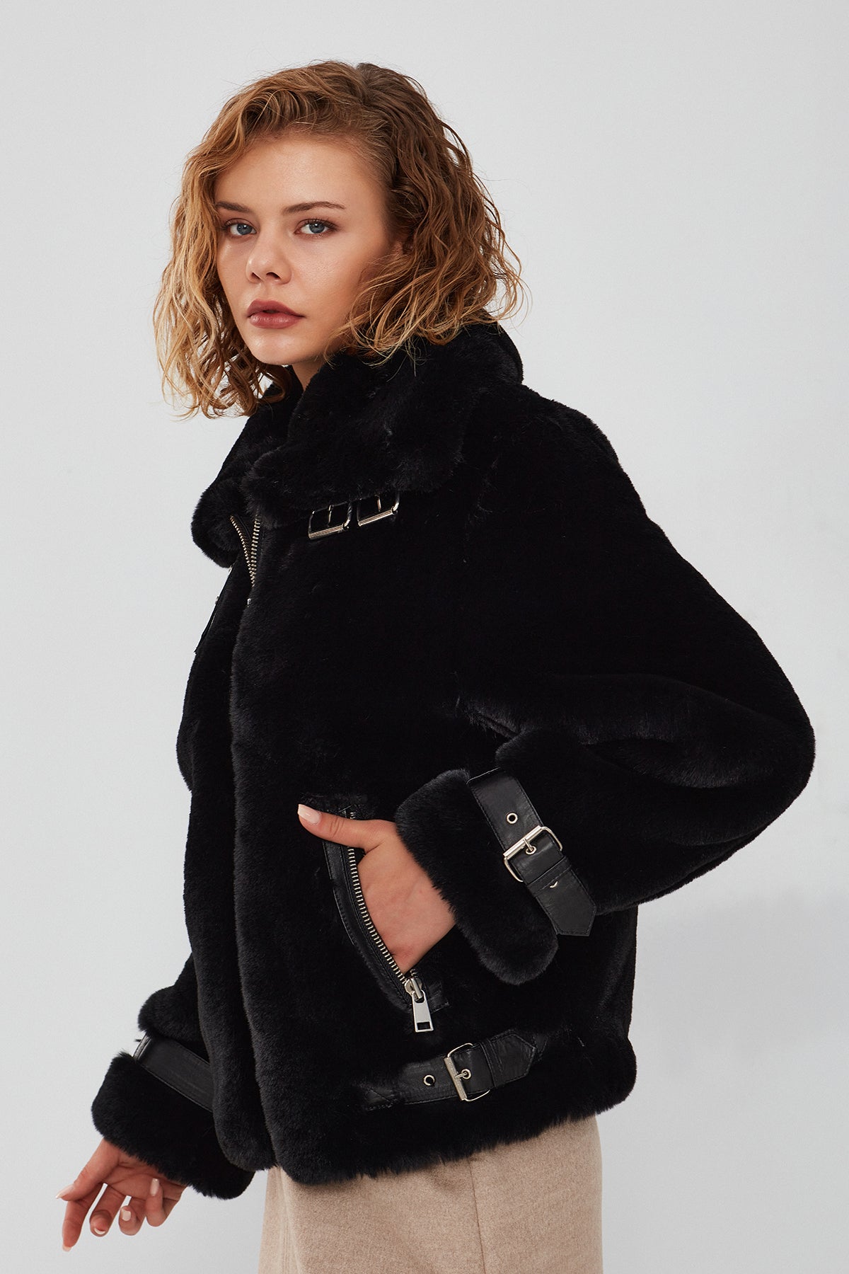Derimod’un Zarif ve Şıklığı bir arada sunan Anabel Kadın Siyah Peluş Deri Ceket ile tarzınızı konuşturun. Ürünün kodu: 21WGD5952FF 11