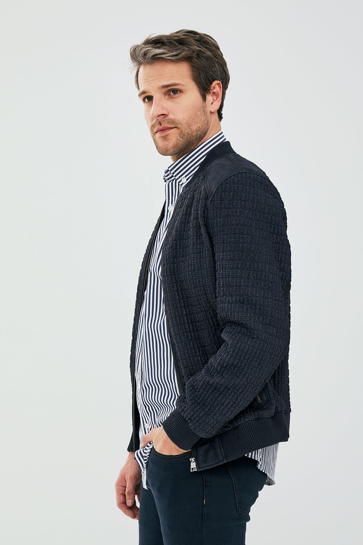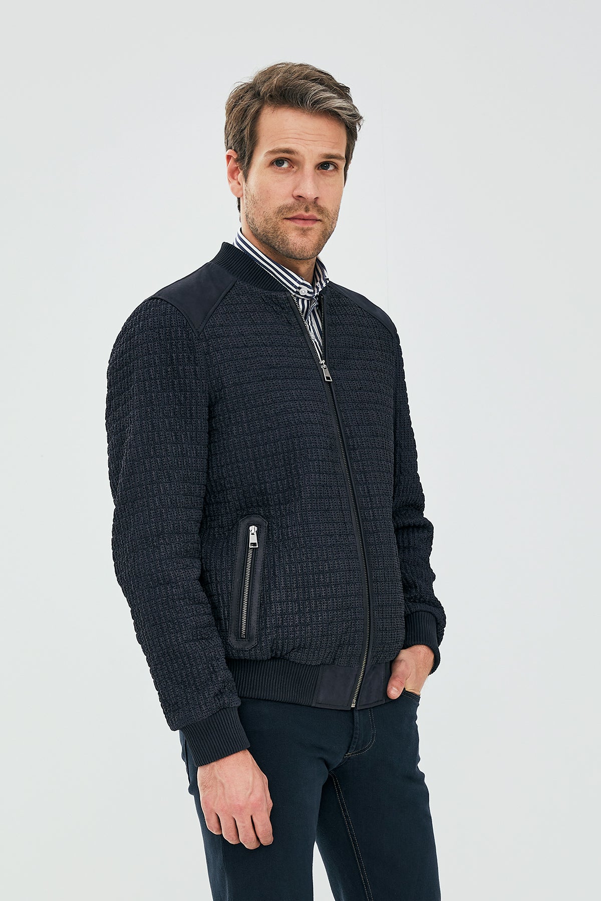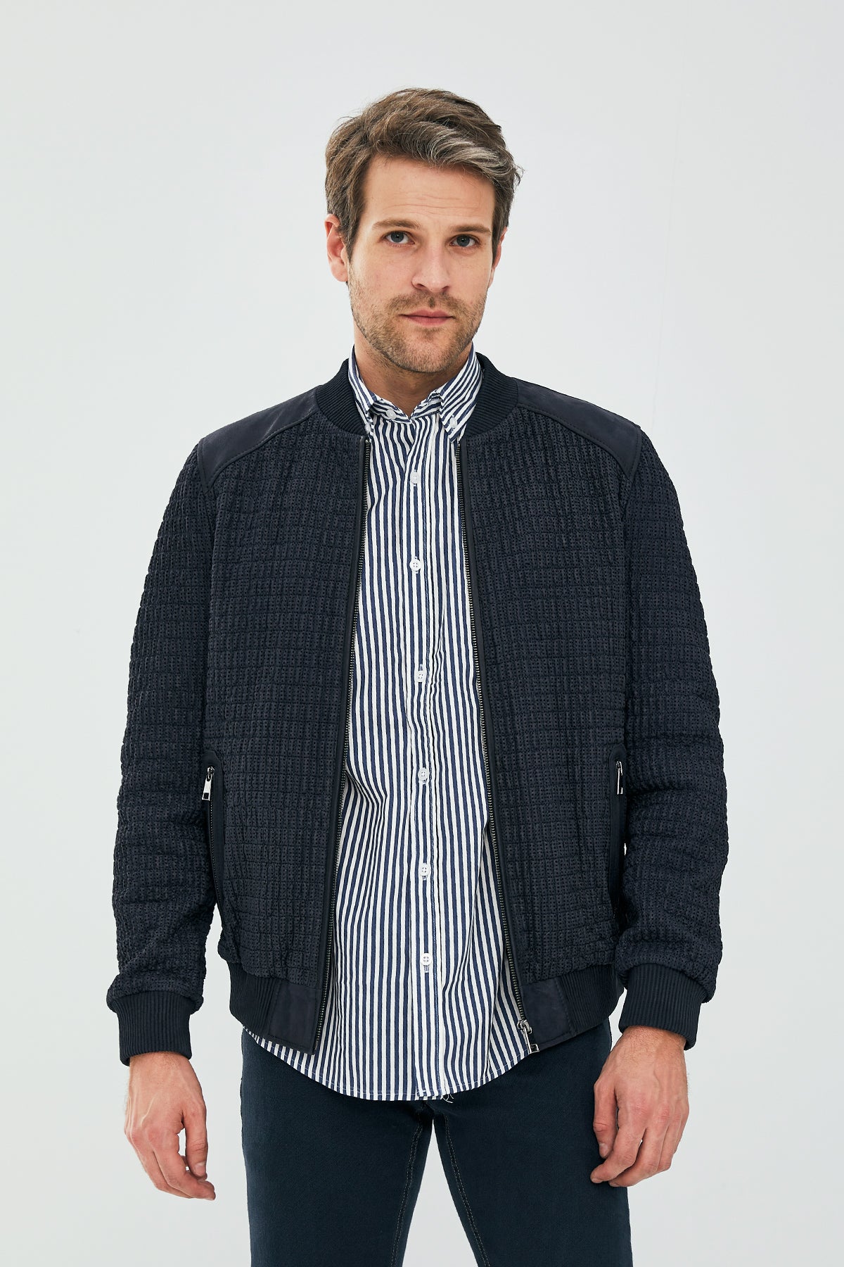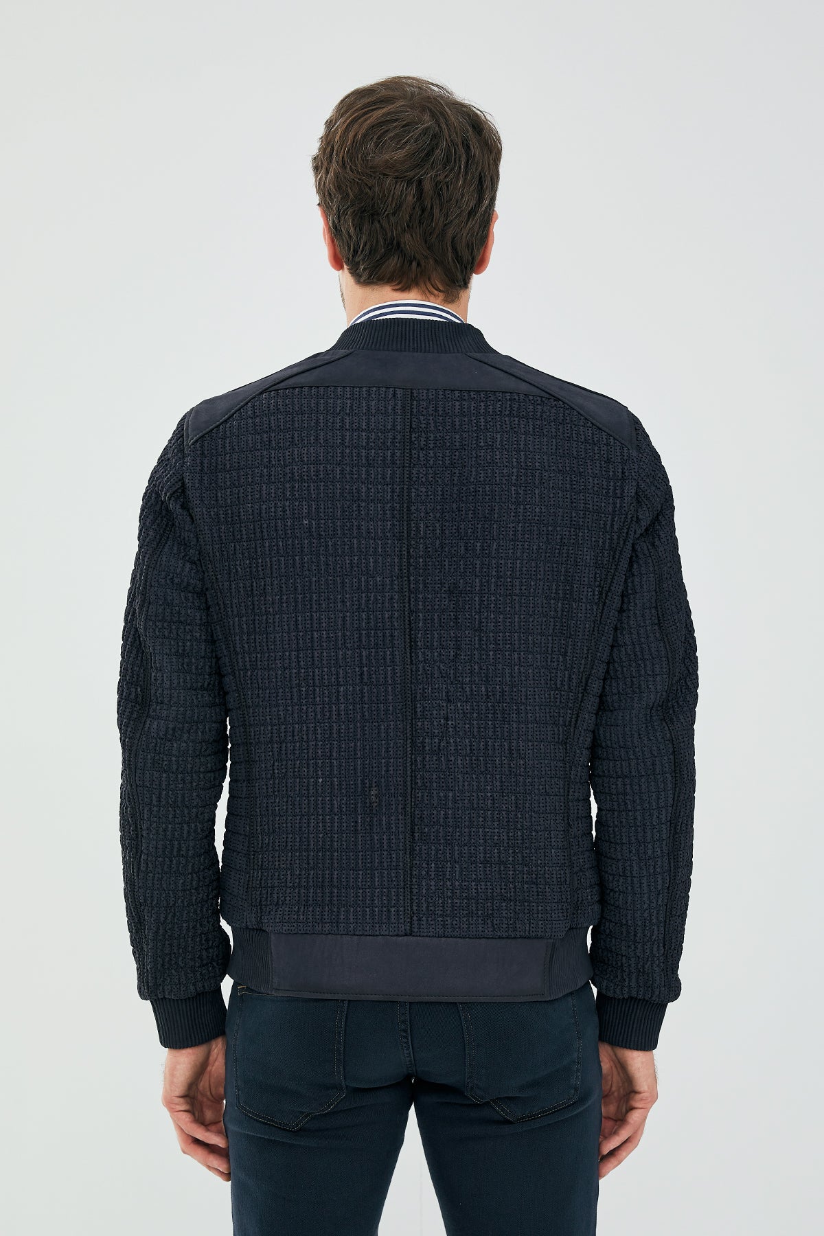 Andre Erkek Lacivert Özel Dikişli Nubuk Deri Mont