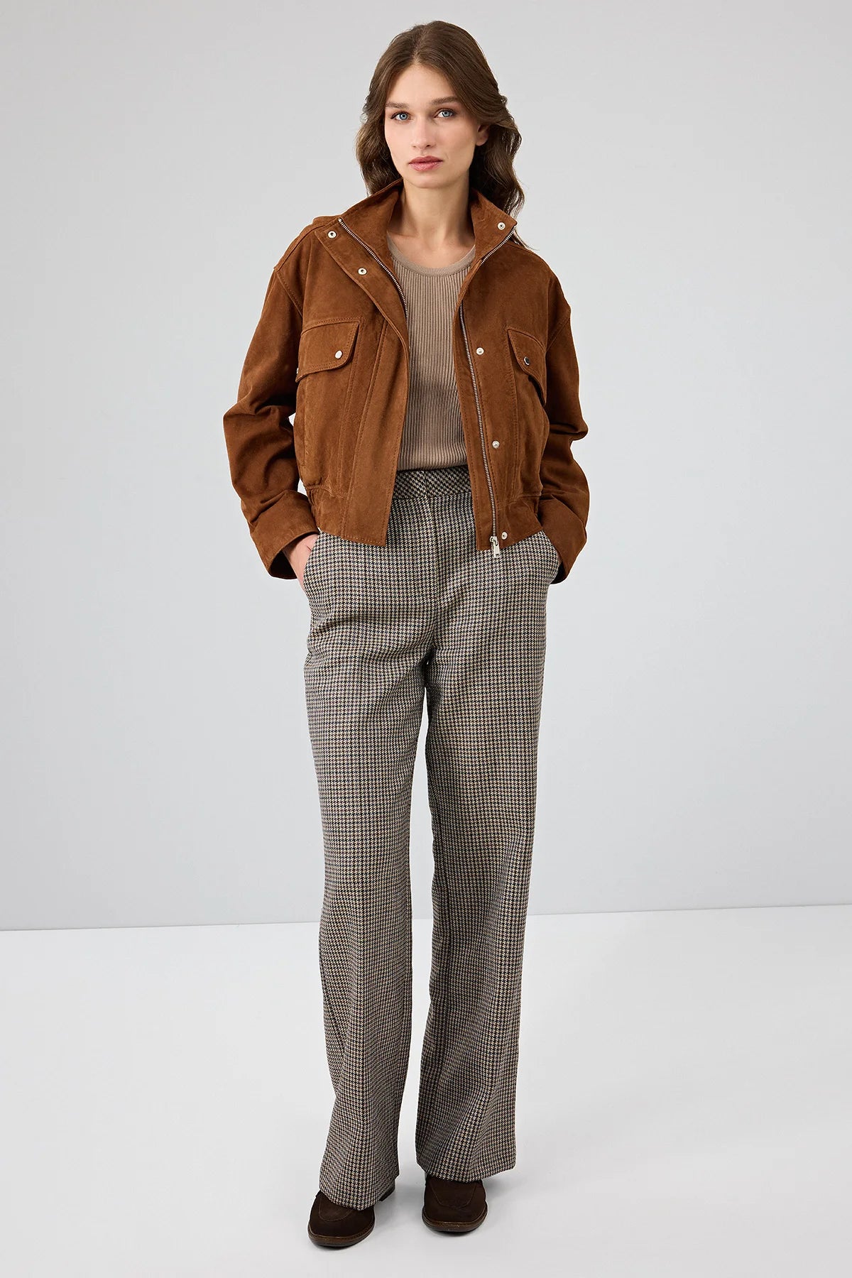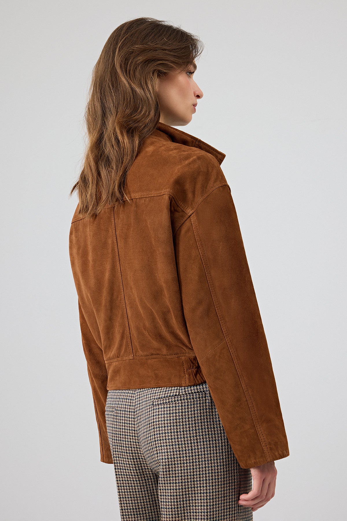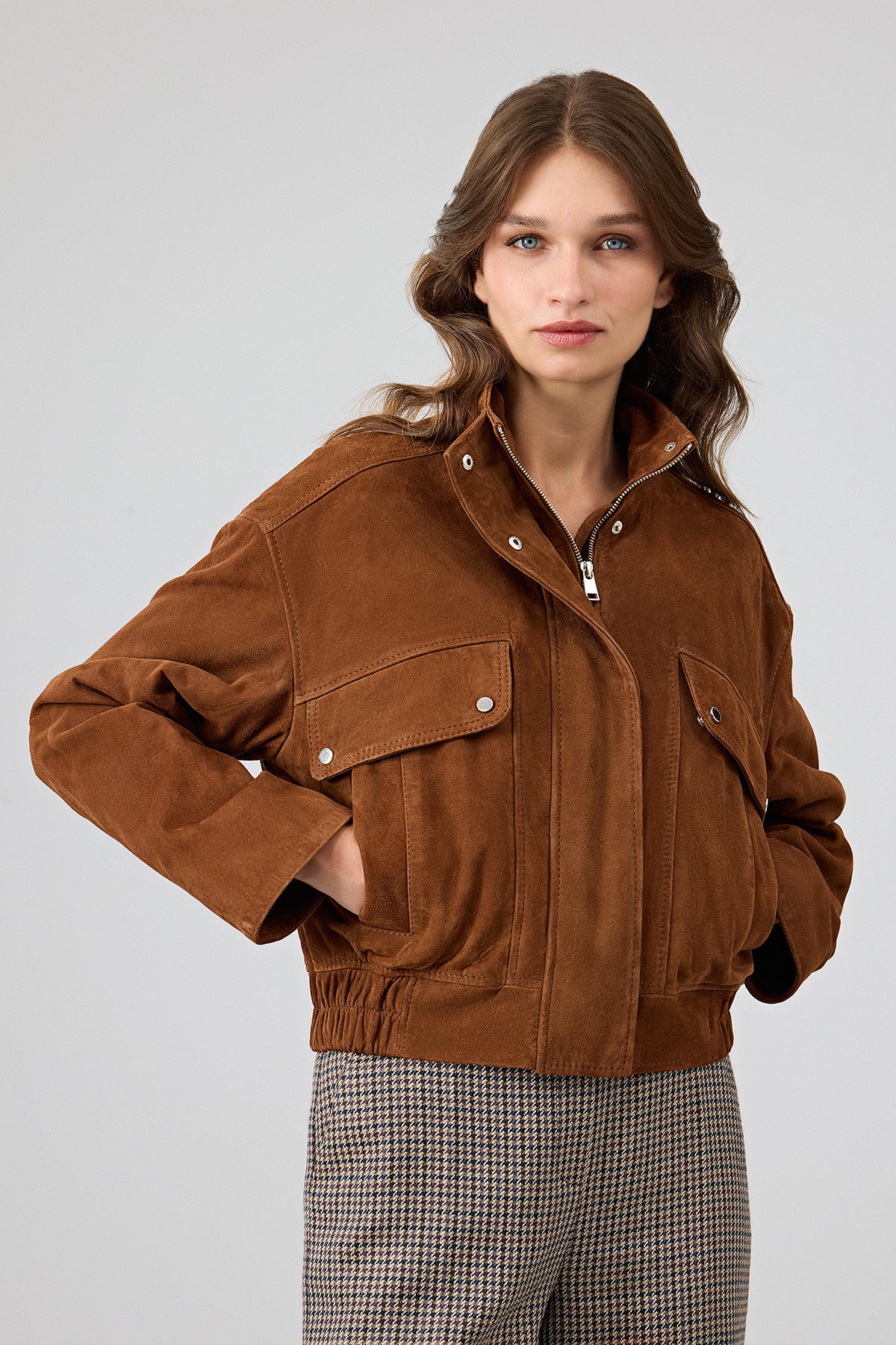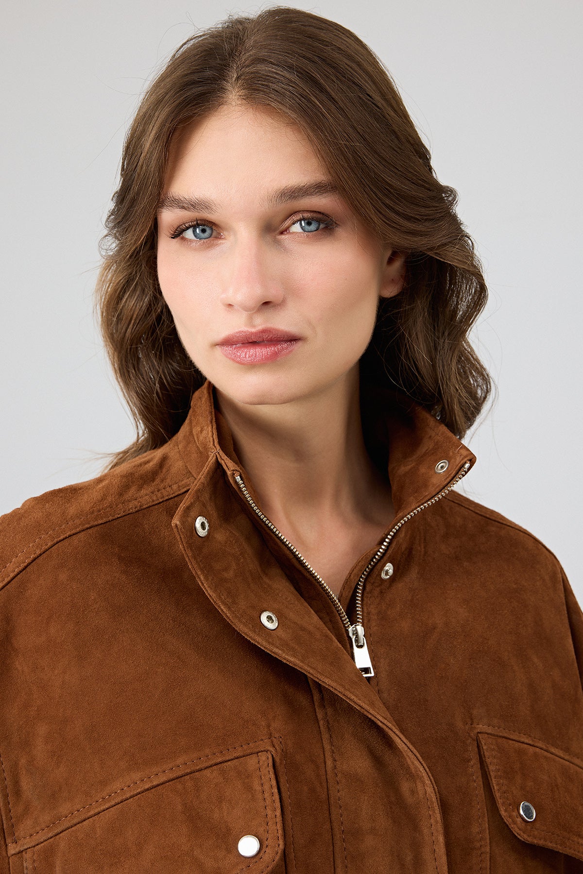 Derimod’un Zarifliği ve Şıklığı bir arada sunan Anita Kadın Kahverengi Oversize Kısa Süet Deri Mont ile tarzınızı konuşturun. Ürünün kodu: 25WGD53301B BR