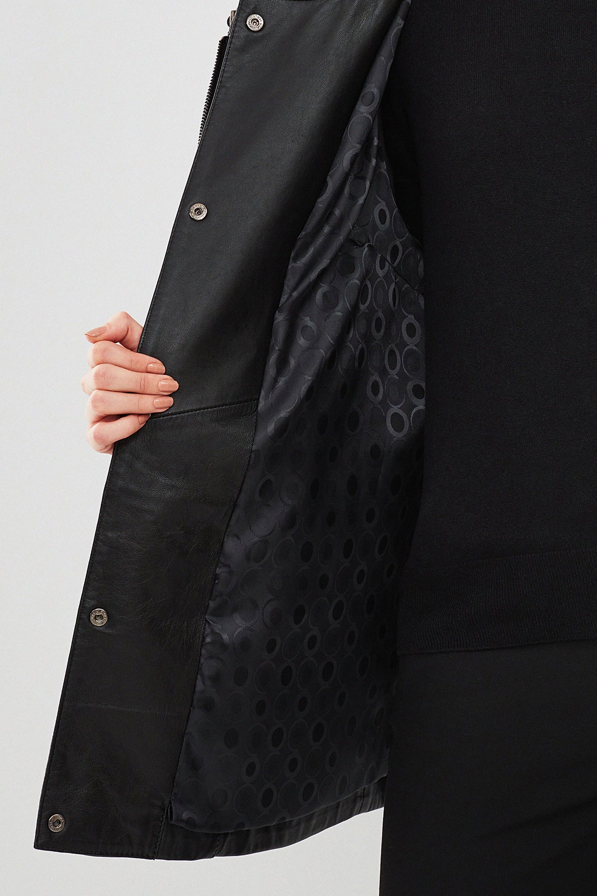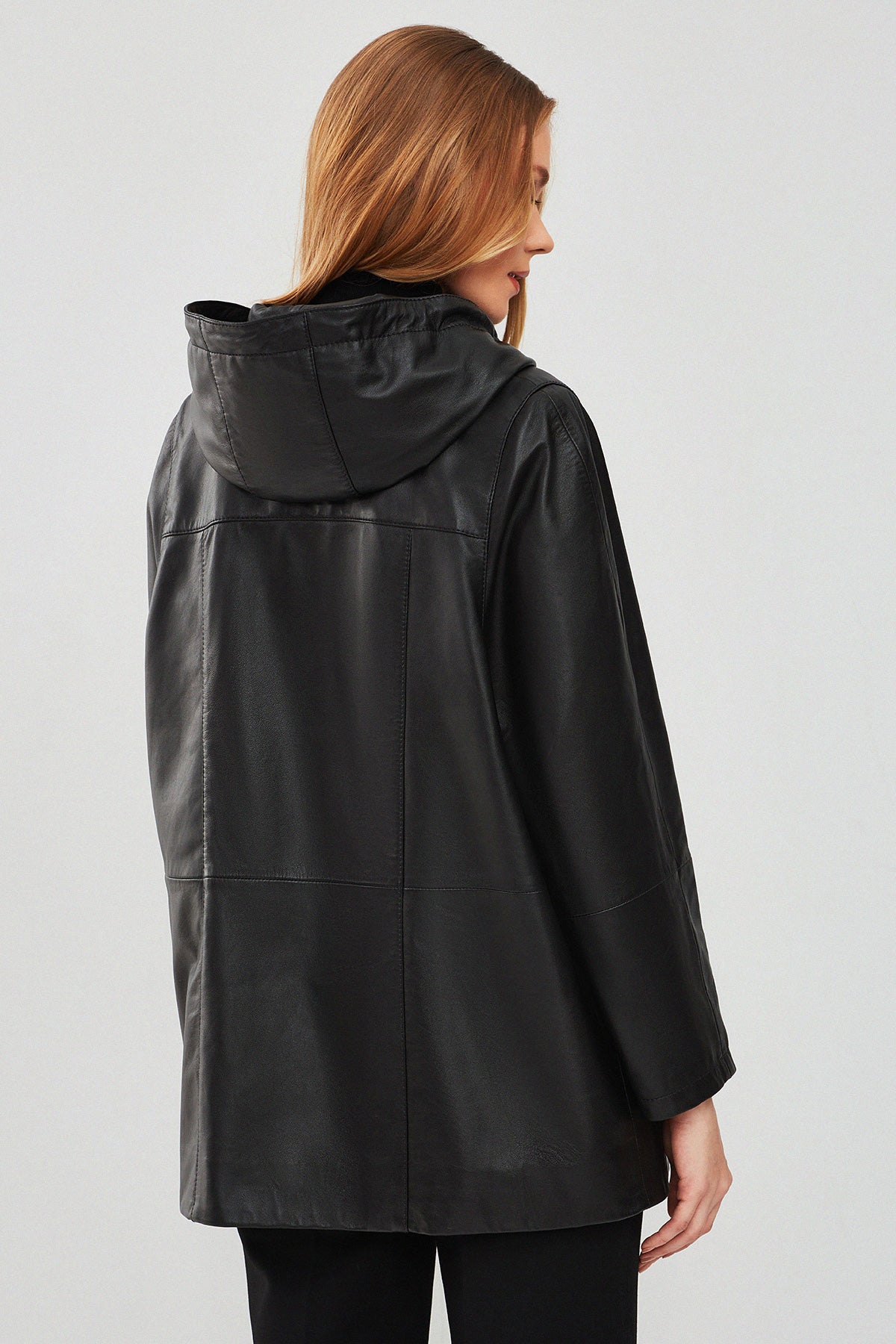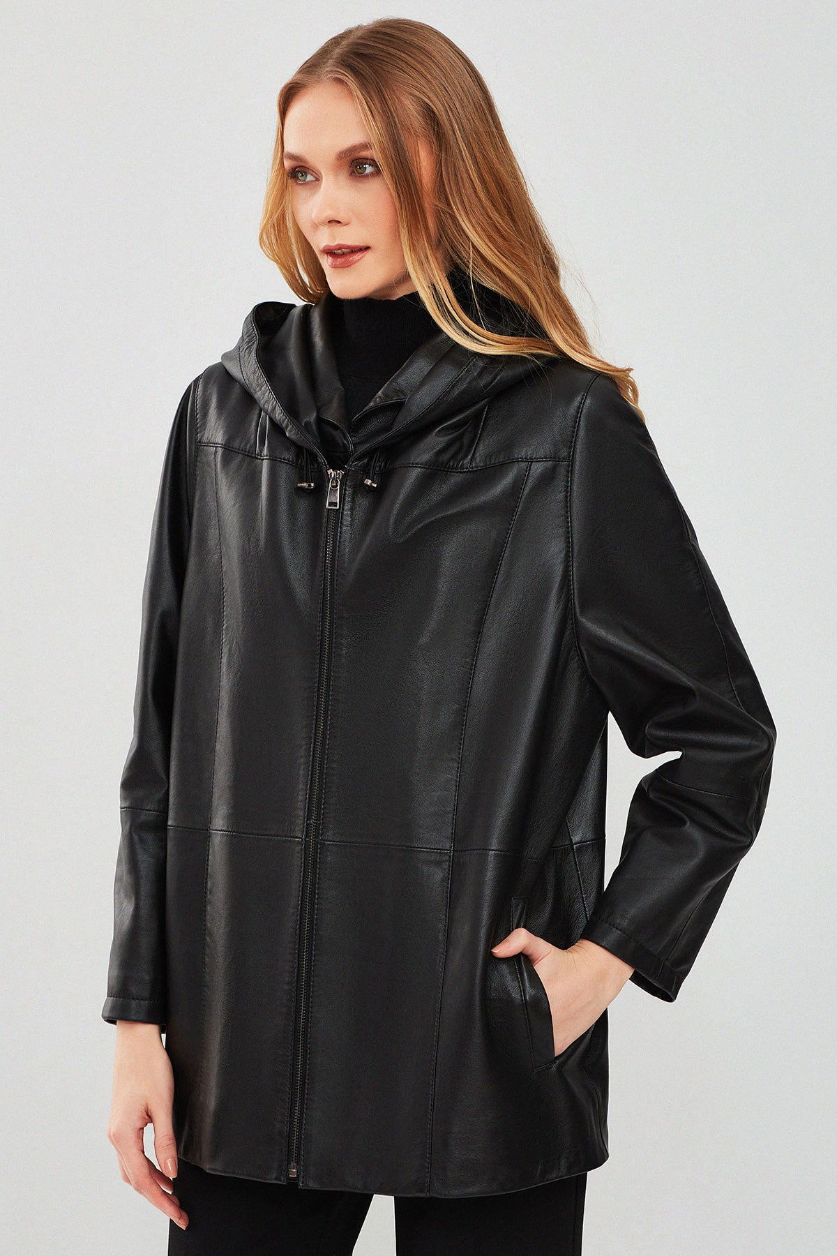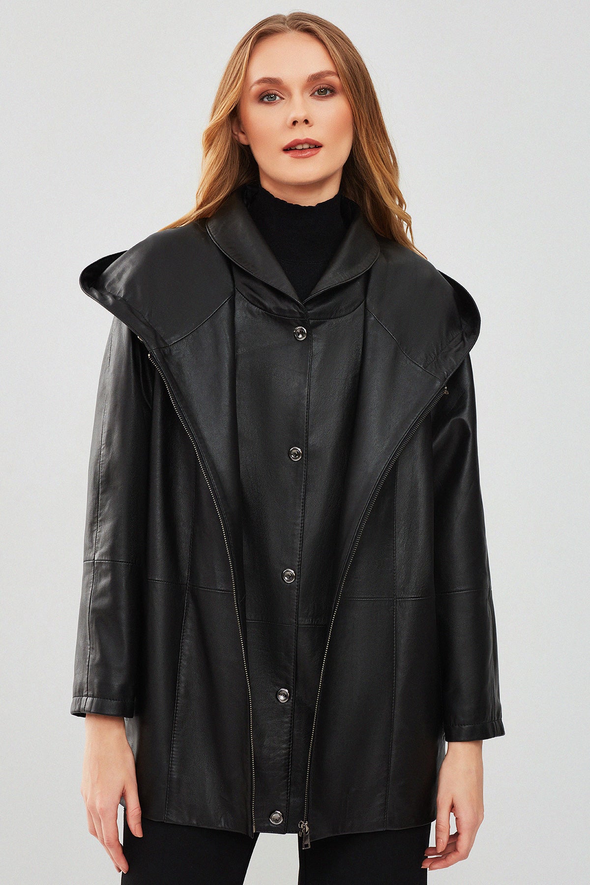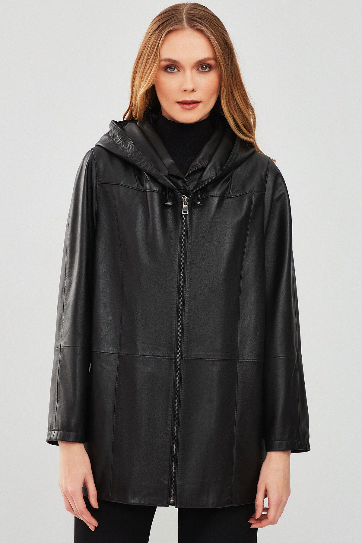Anya Kadın Siyah Kapüşonlu Deri Mont