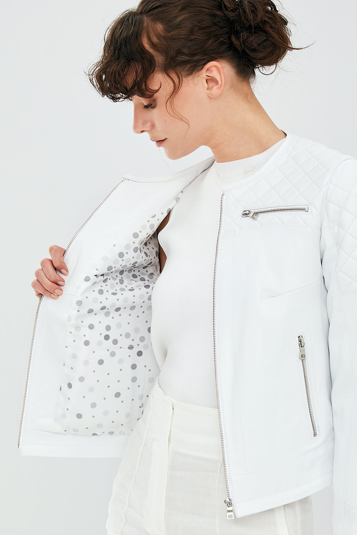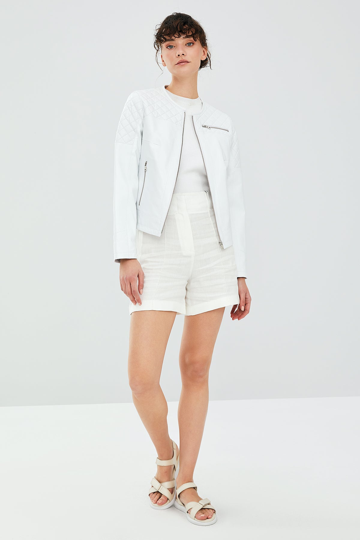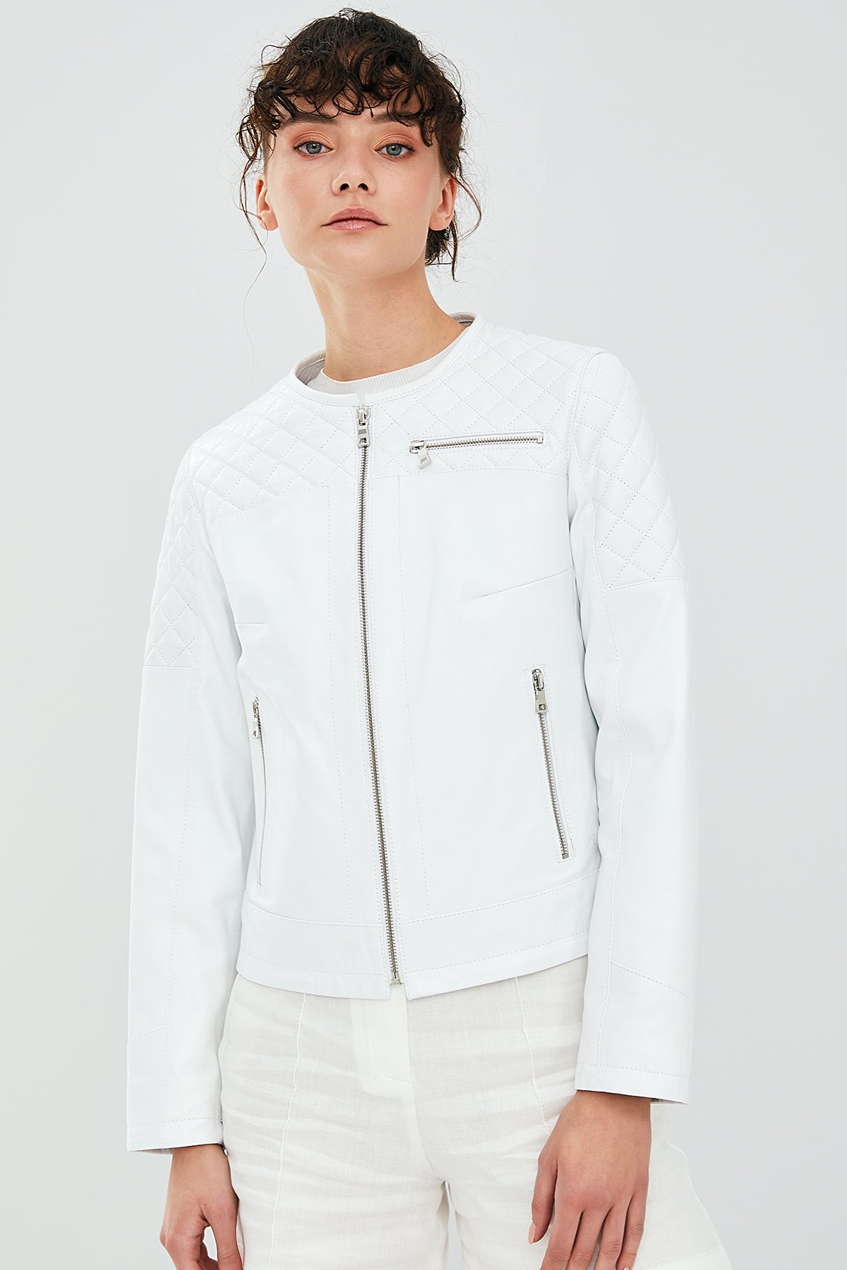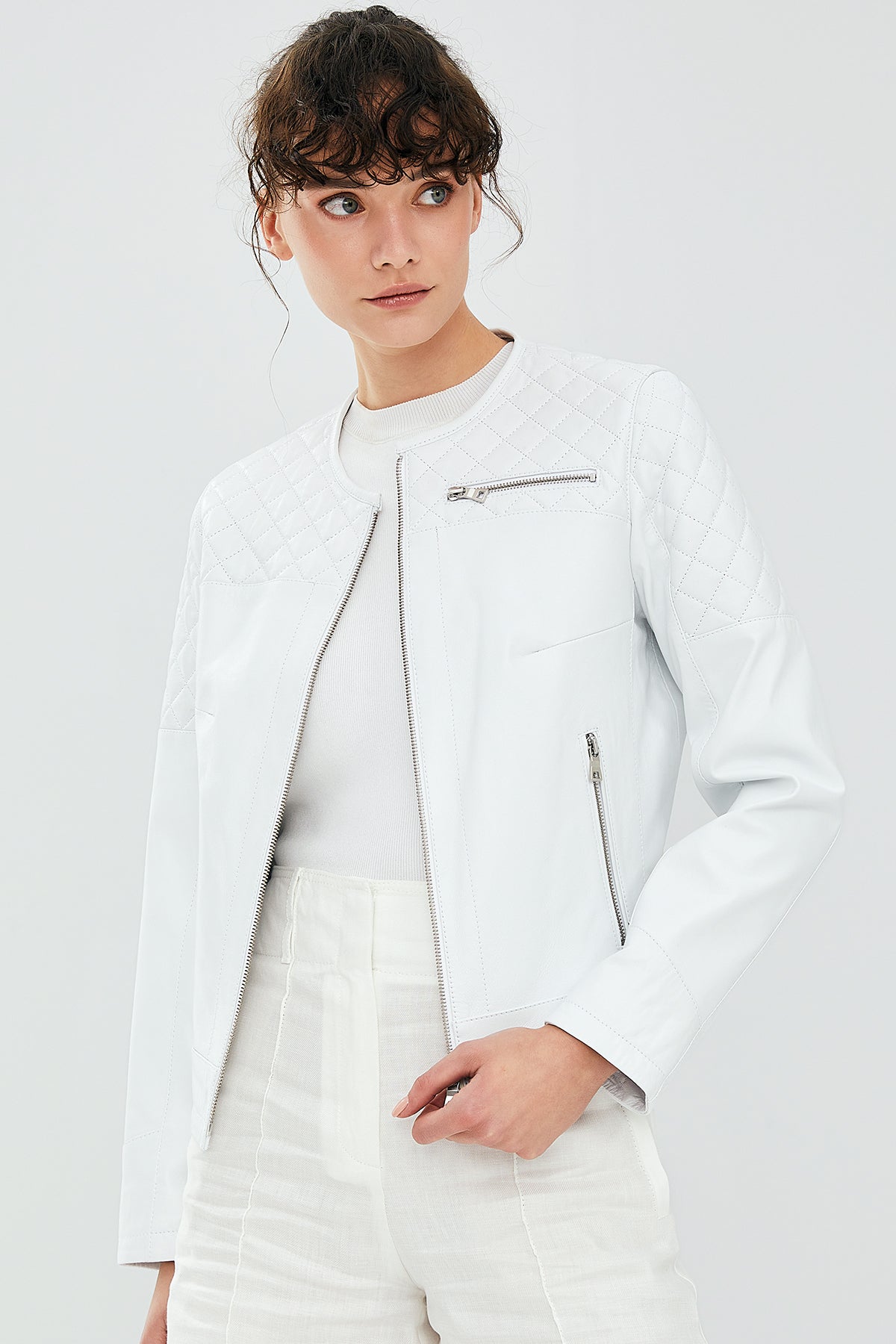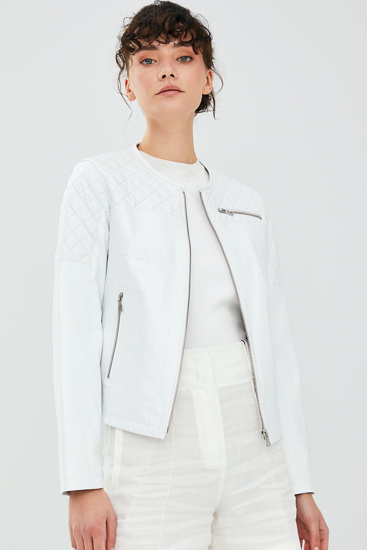 April Kadın Beyaz Deri Ceket