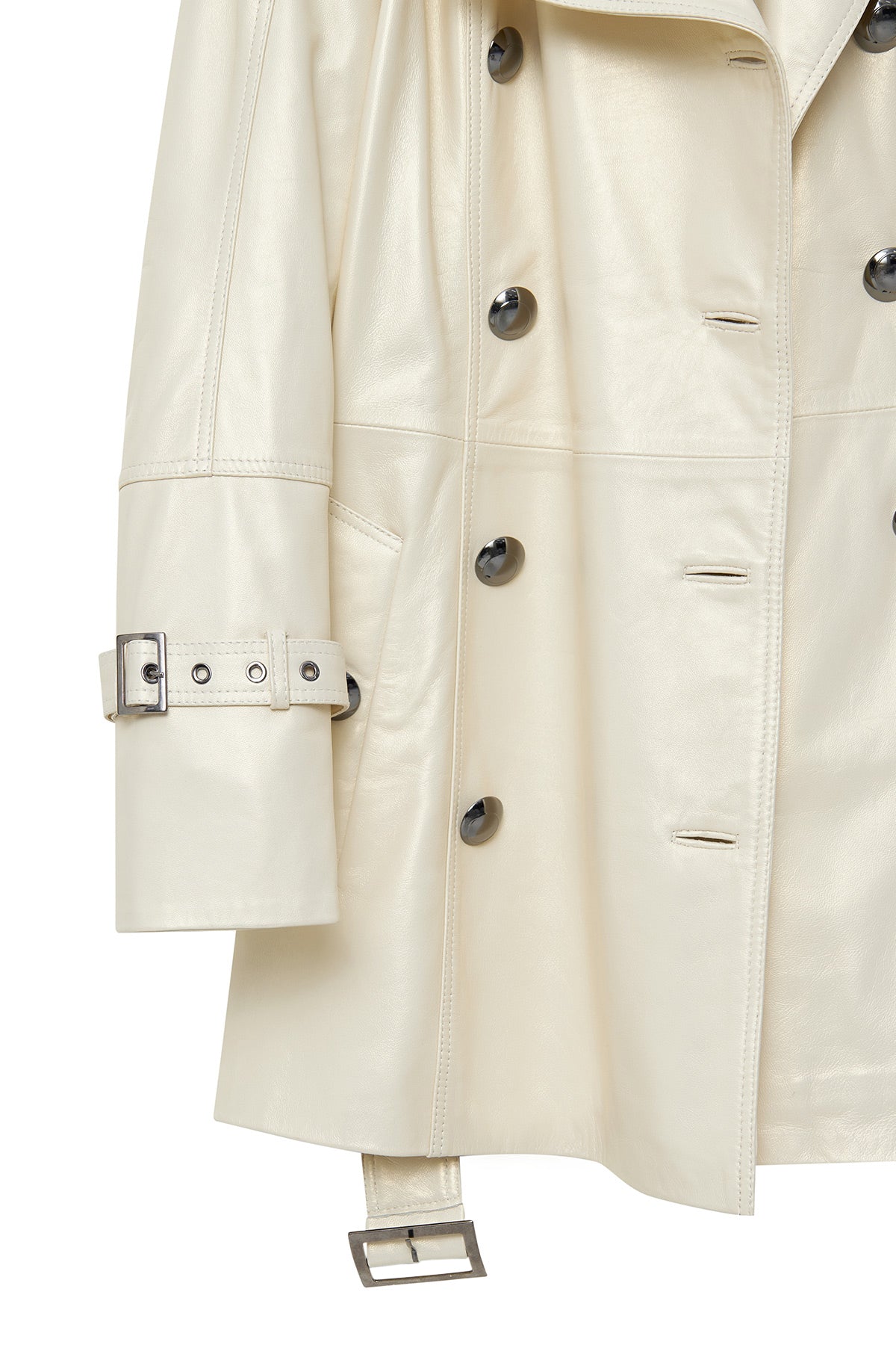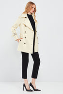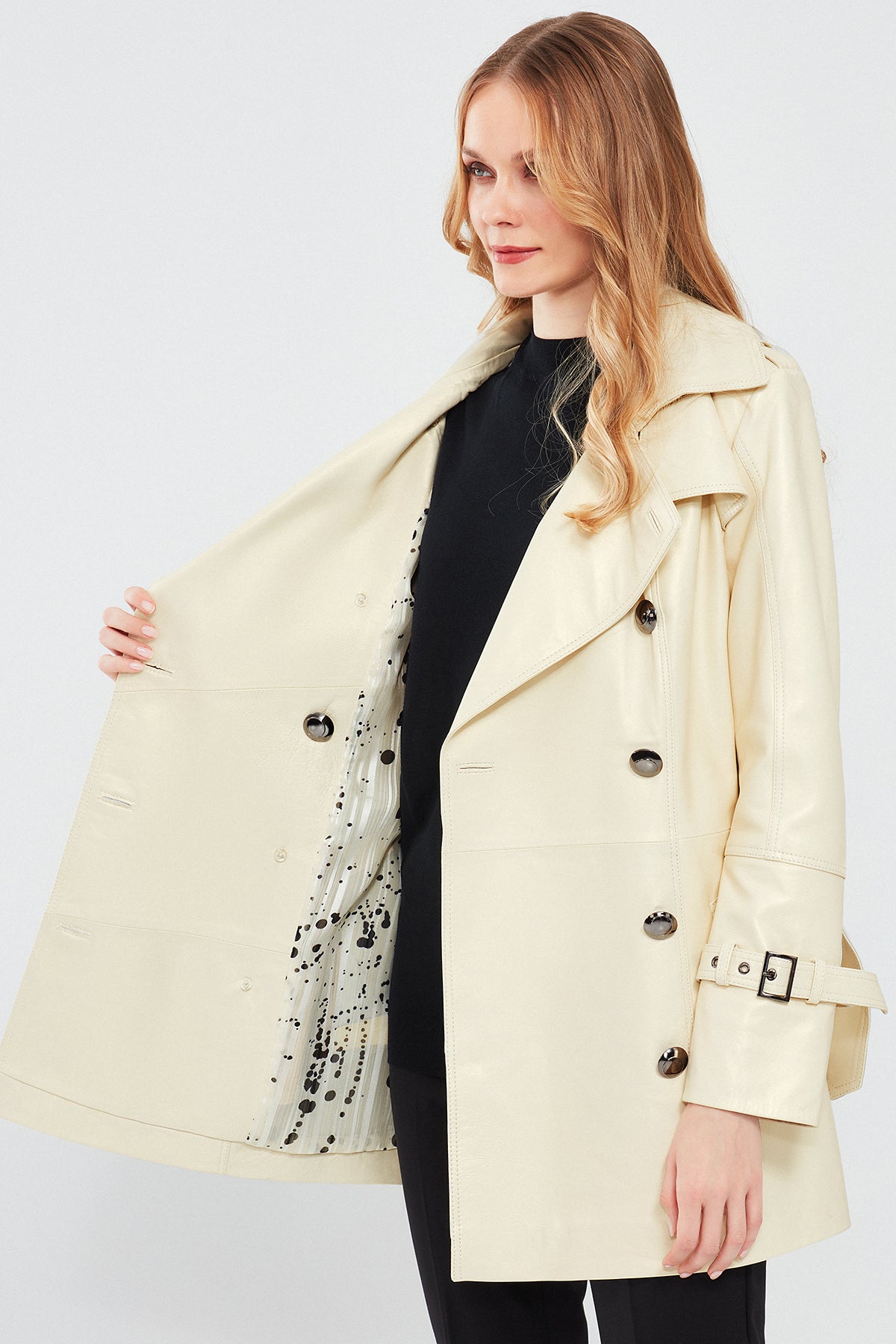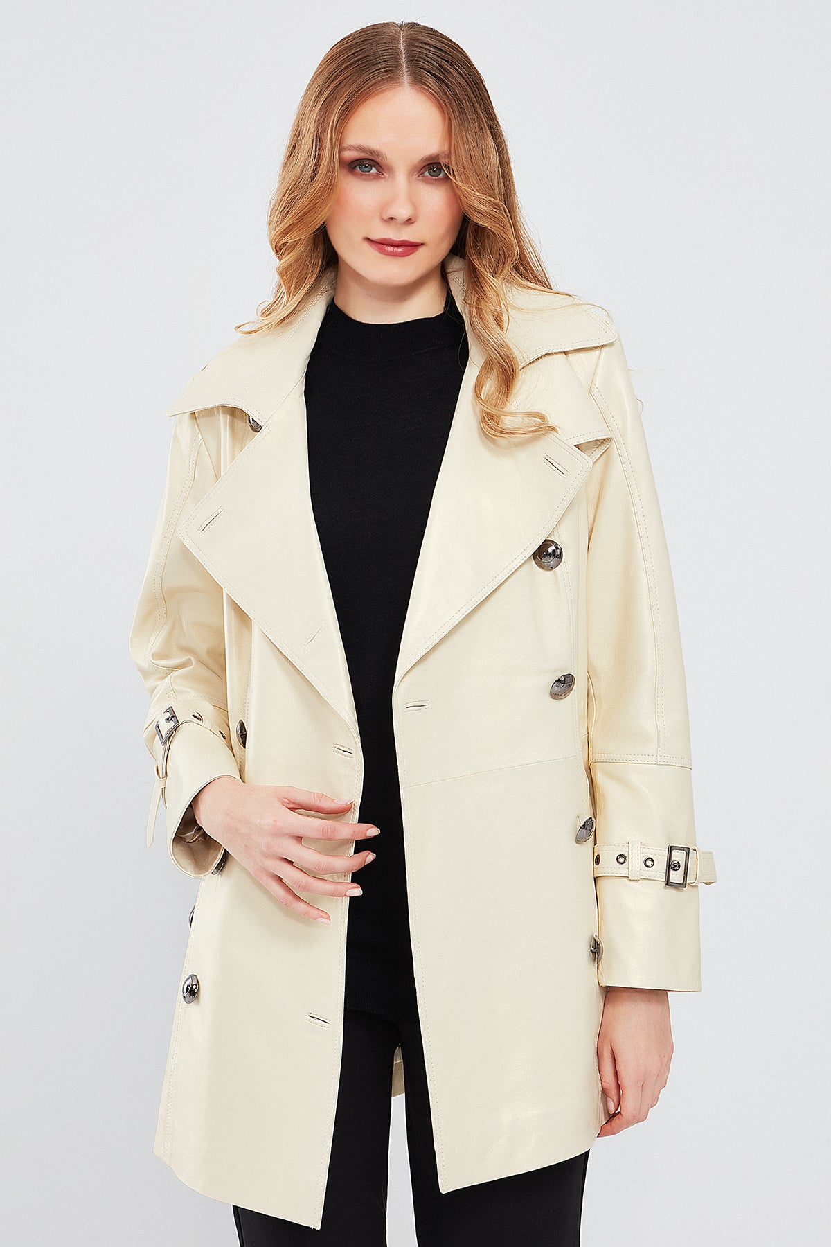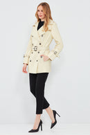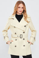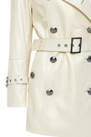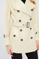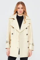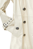 Barbara Kadın Bej Kruvaze Yaka Regular Deri Trençkot