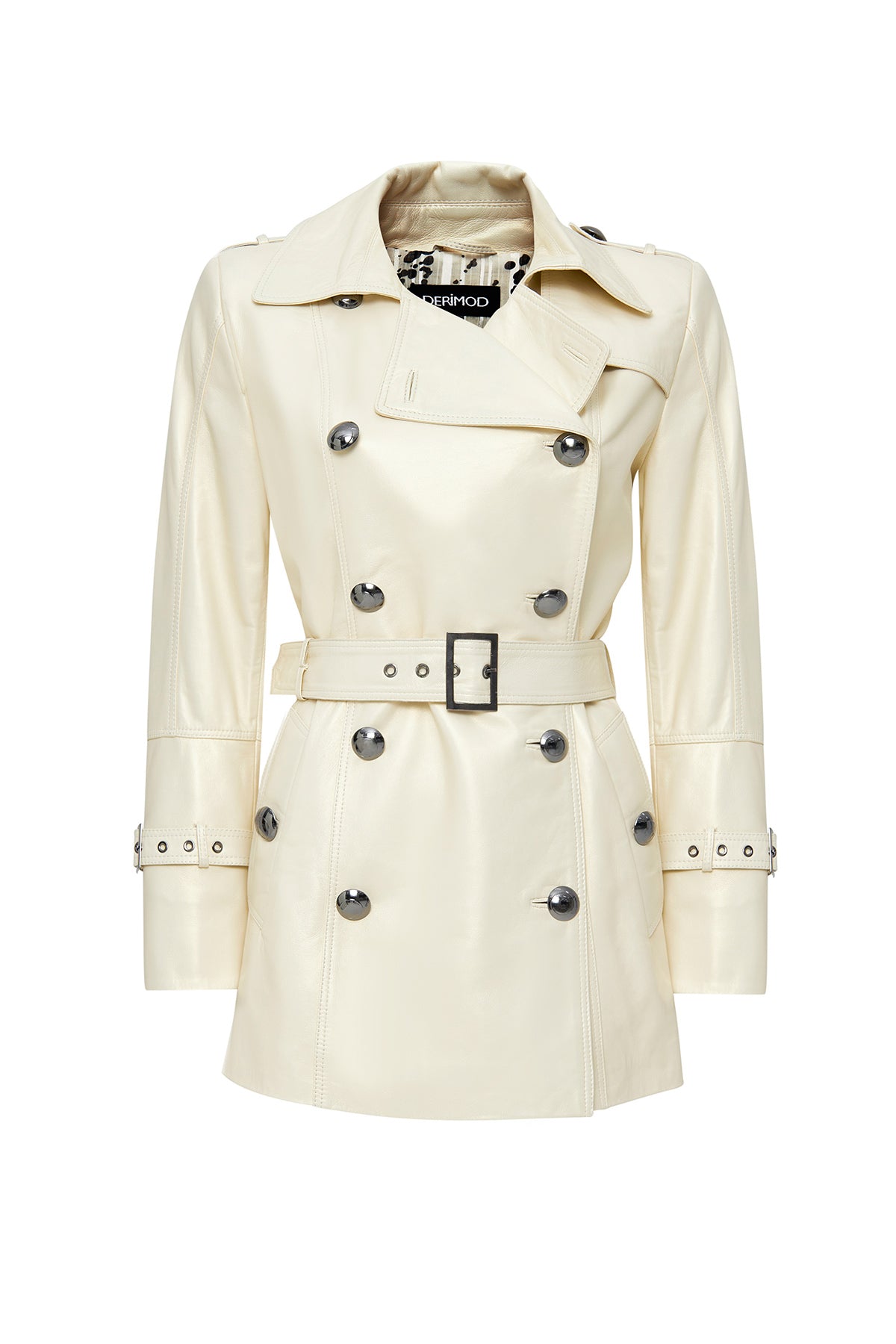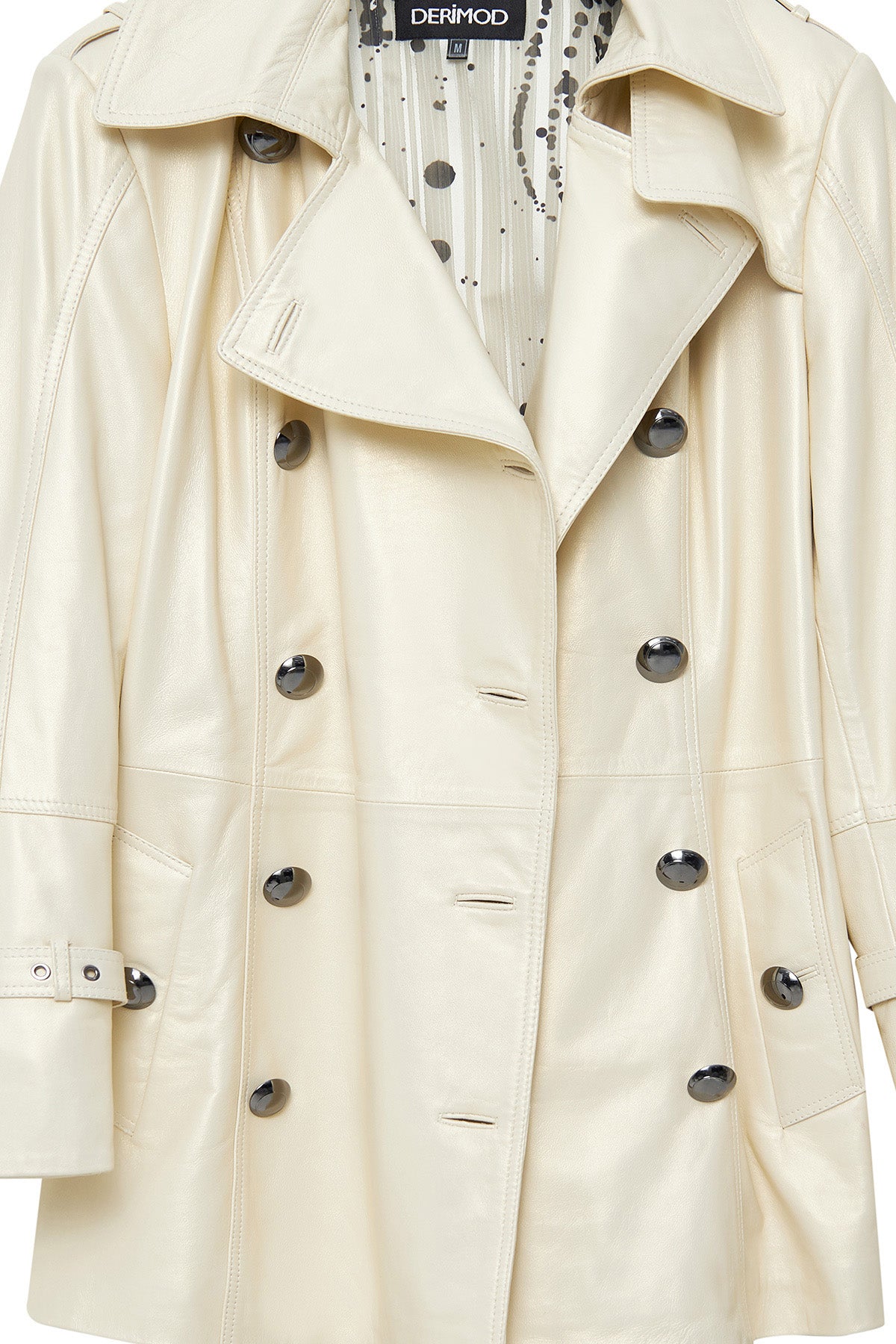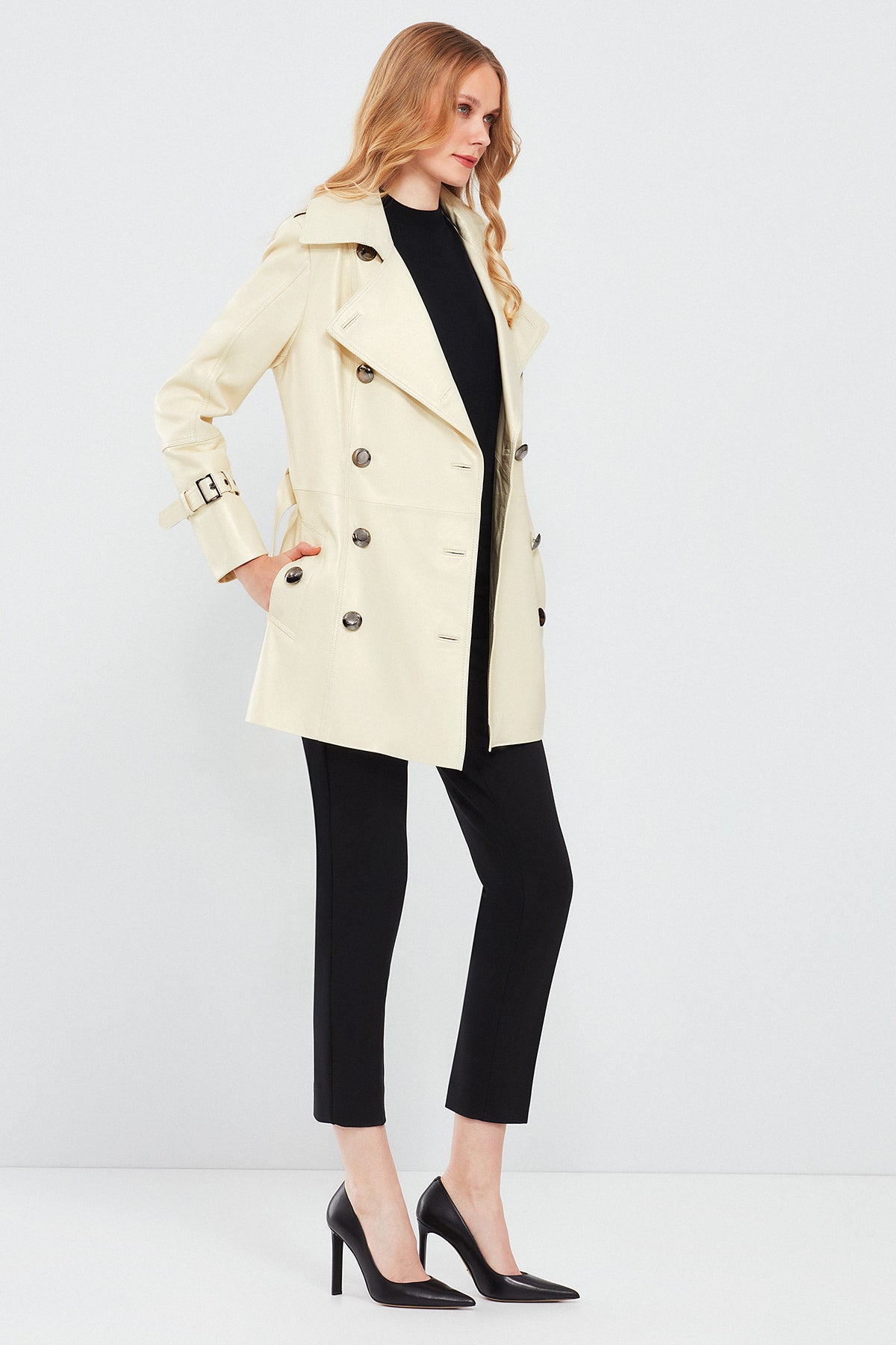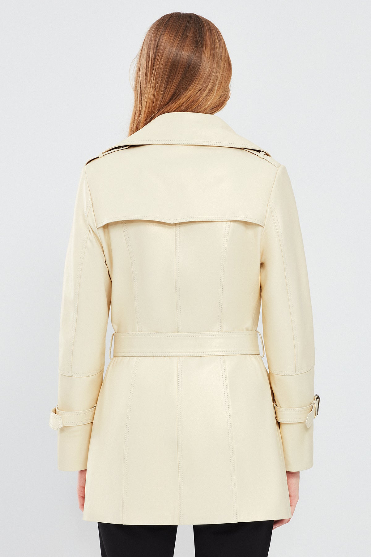 Barbara Kadın Bej Kruvaze Yaka Regular Deri Trençkot