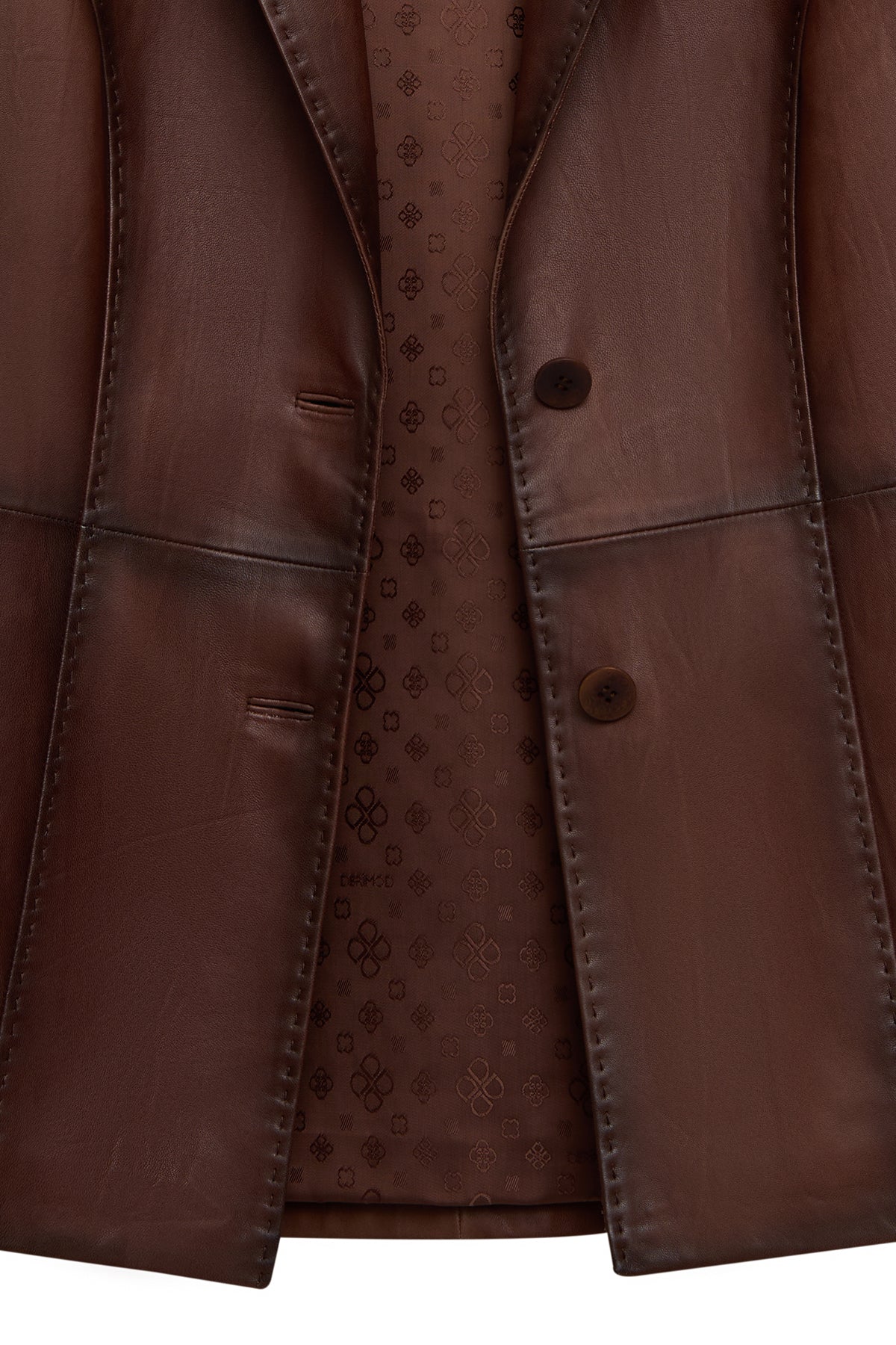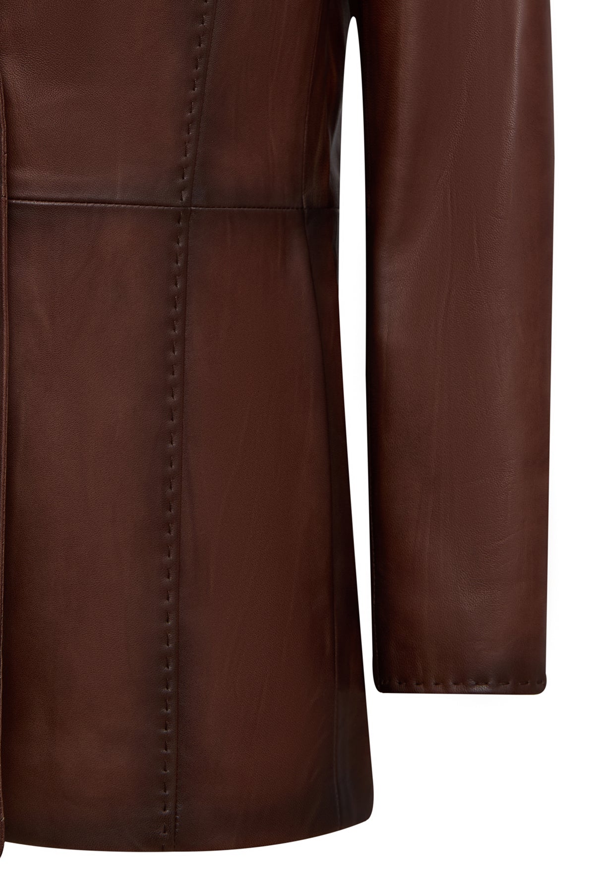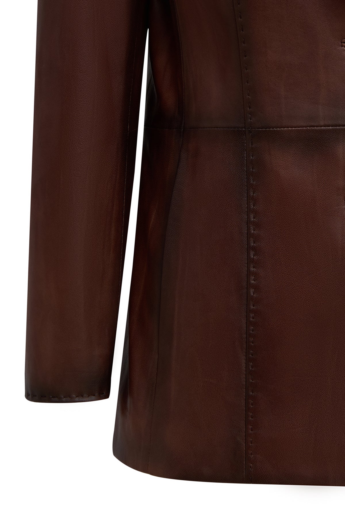 Barbara Kadın Kahverengi Blazer Deri Ceket