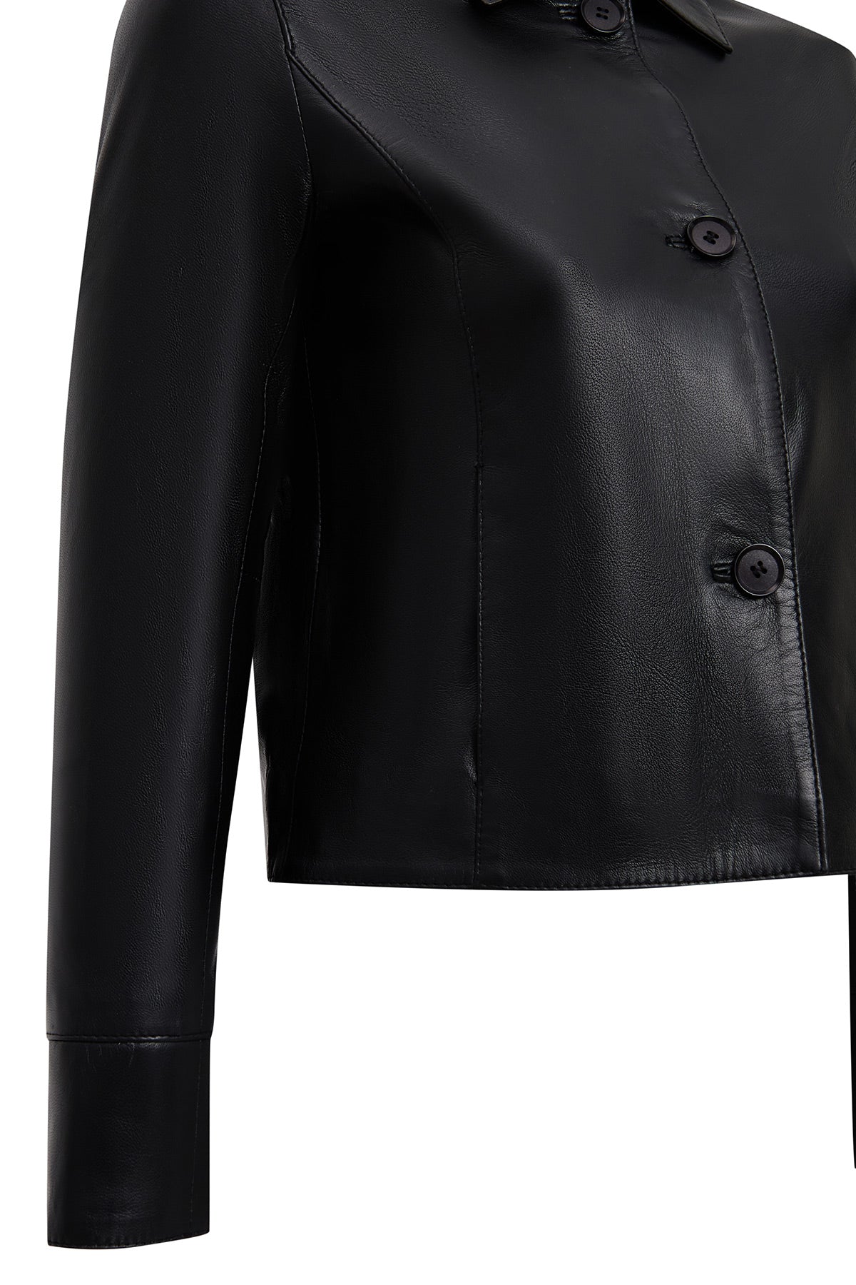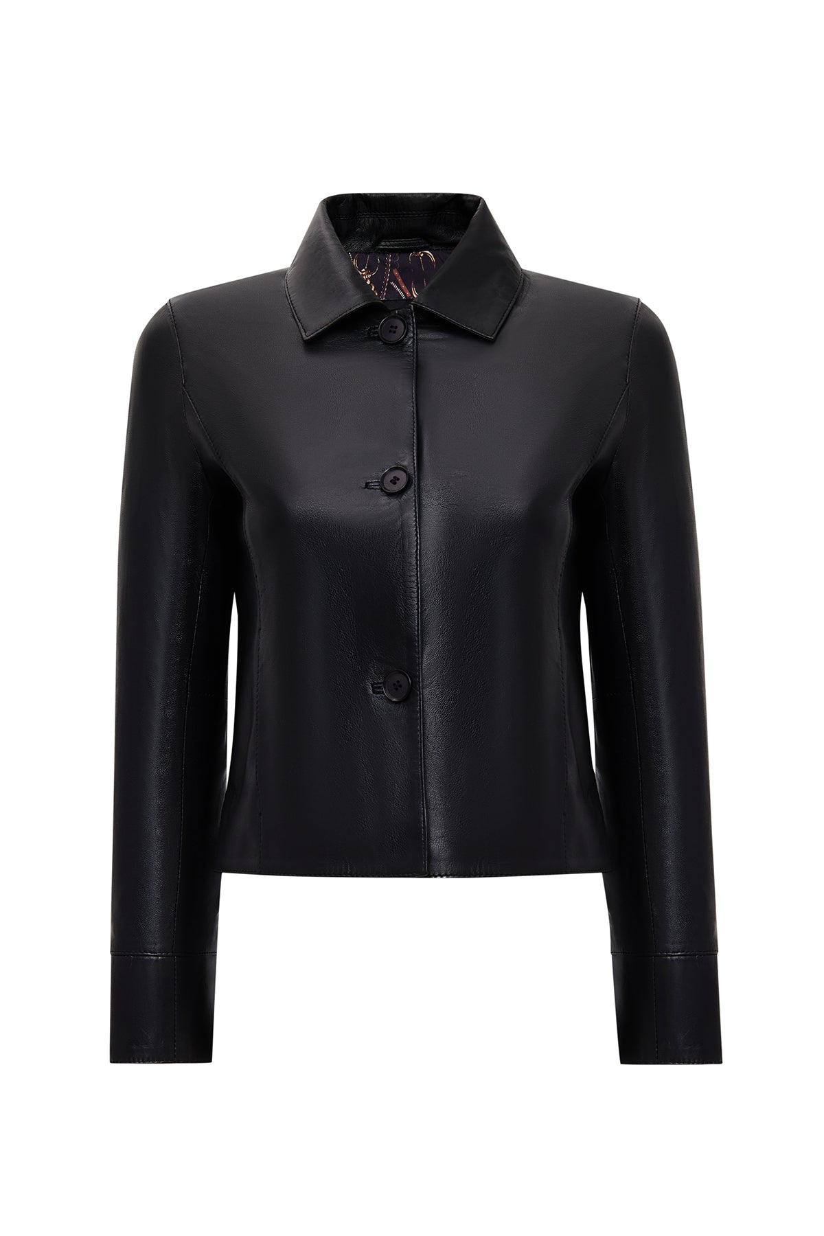 Derimod’un Zarifliği ve Şıklığı bir arada sunan Beatrix Kadın Siyah Gömlek Yaka Deri Ceket ile tarzınızı konuşturun. Ürünün kodu: 25WGE56131M 11