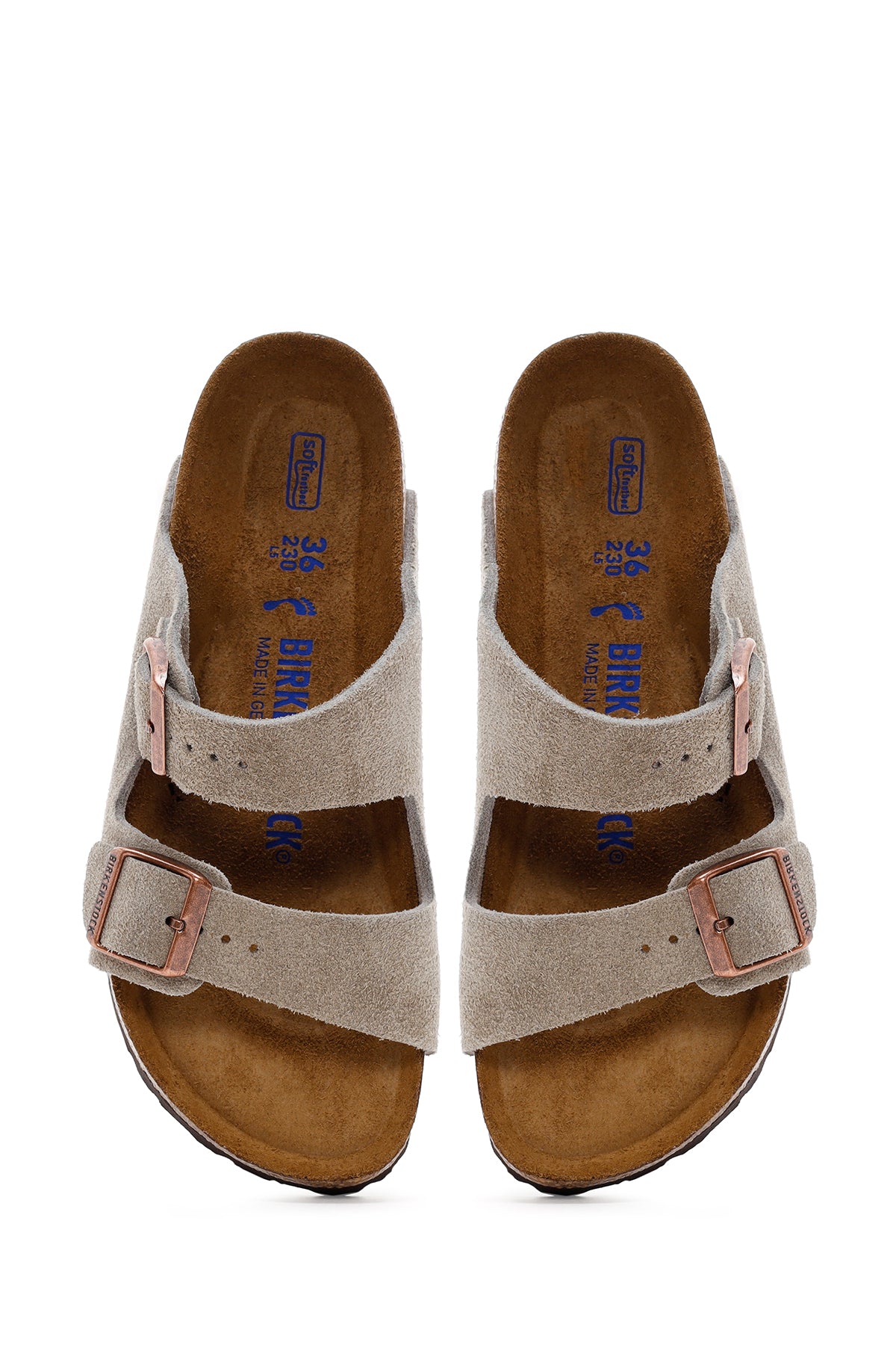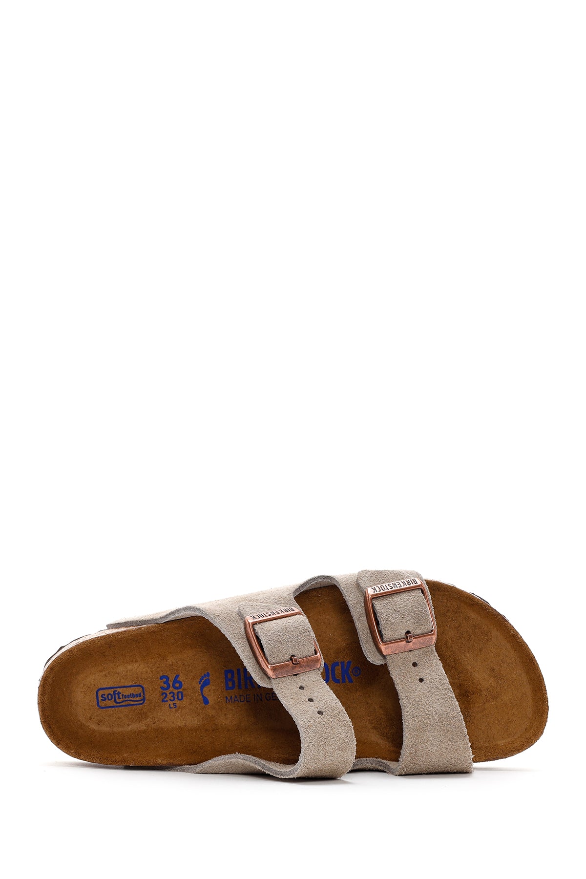 Birkenstock Kadın Vizon Süet Deri Çift Tokalı Arizona Sfb Düz Terlik