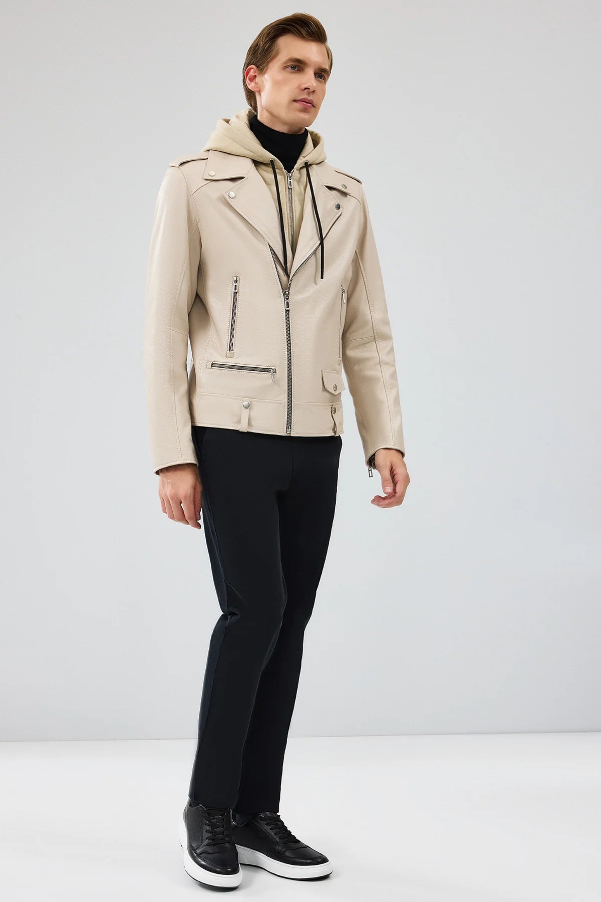 Derimod’un Zarifliği ve Şıklığı bir arada sunan Butler Bej Siyah Kapüşonlu Biker Deri Ceket ile tarzınızı konuşturun. Ürünün kodu: 24WGF6527FT C5
